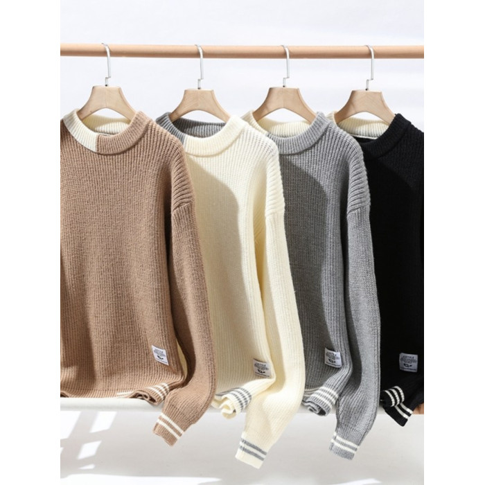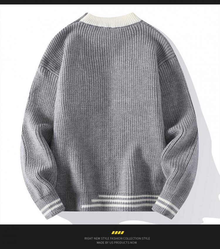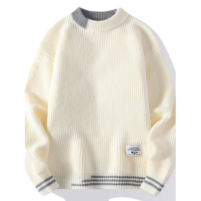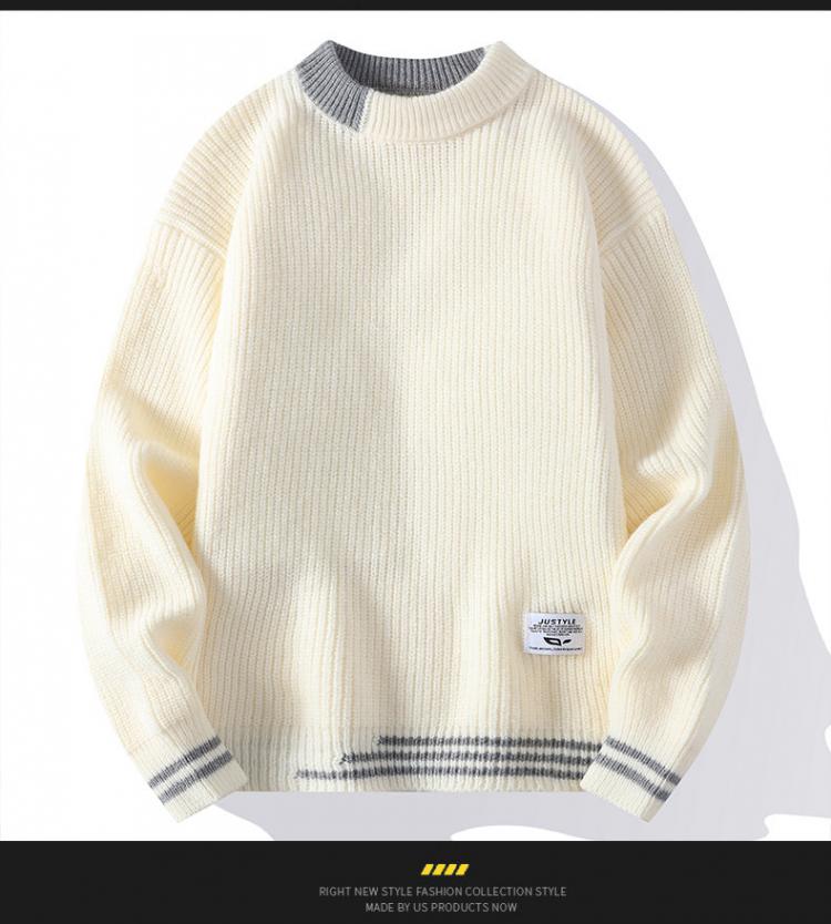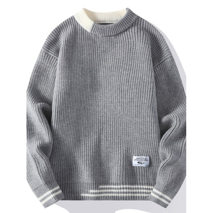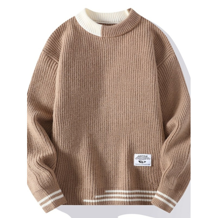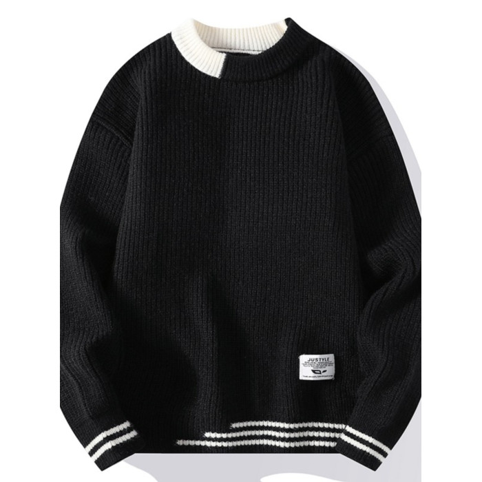 春秋季圓領毛衣男冬季新款假兩件長袖打底衫男士加絨厚保暖針織衫