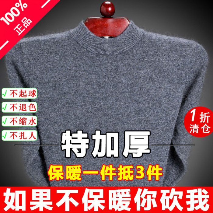 鄂爾多市産2025羊毛衫男士半高領秋冬加厚打底羊毛衫中年毛衣