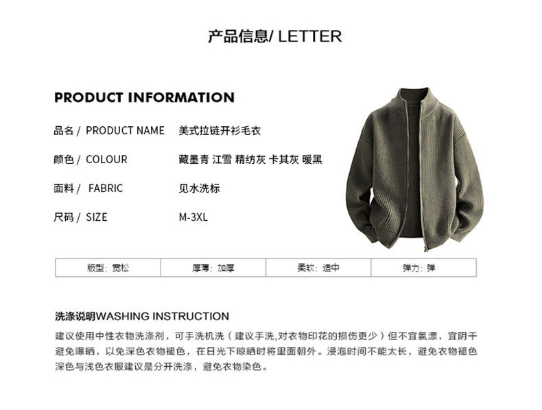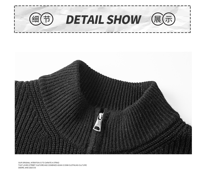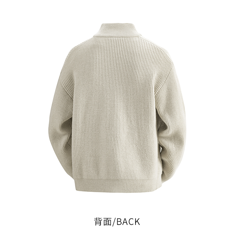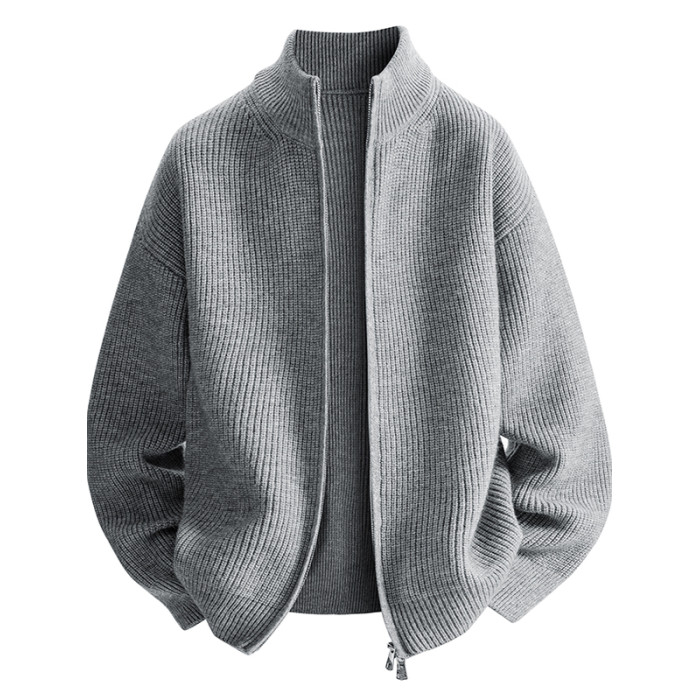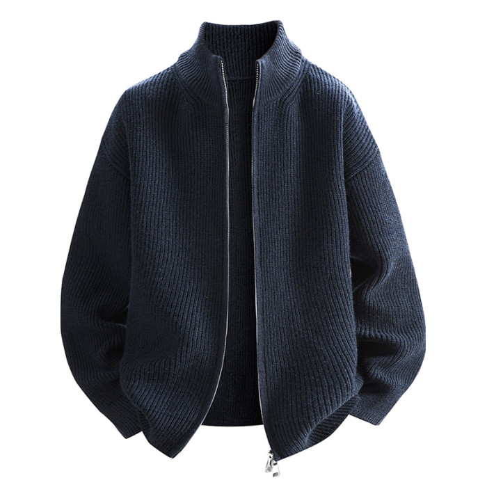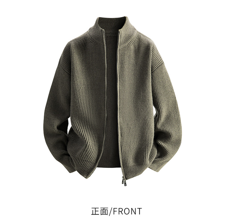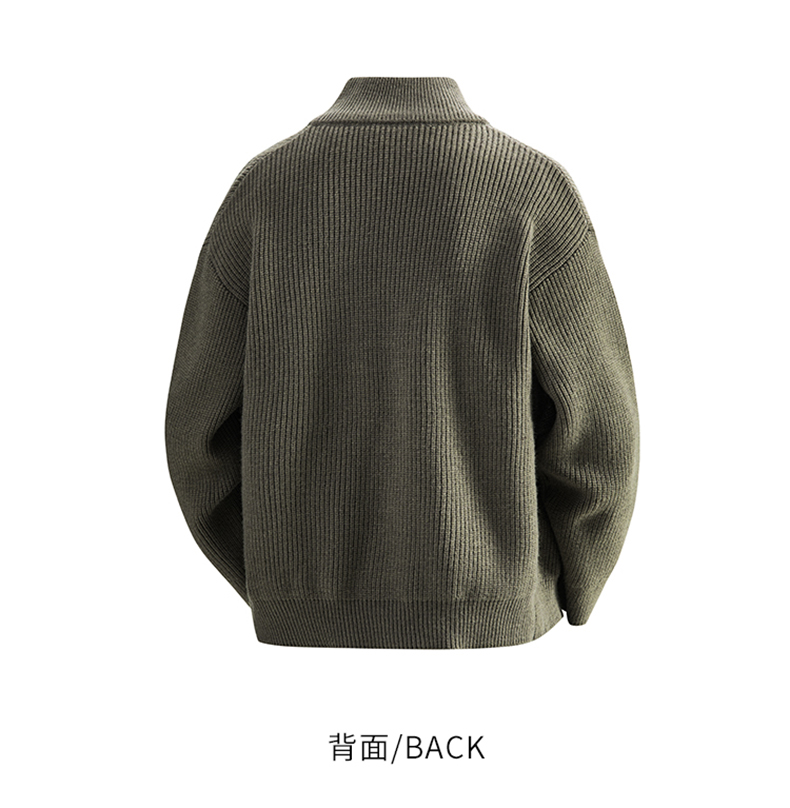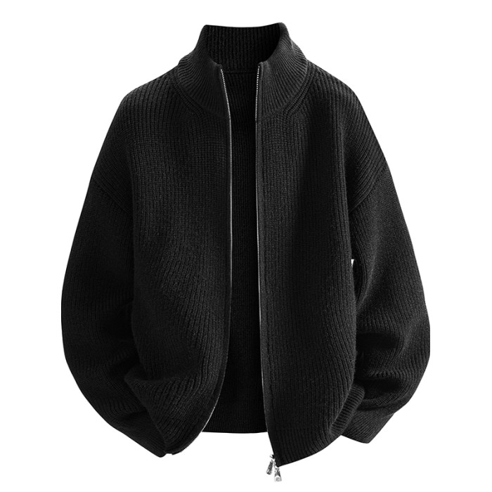 立領針織開衫男士秋季休閒毛衣外套粗線高級感品質毛衫夾克純色款