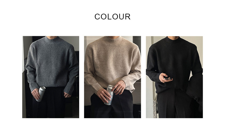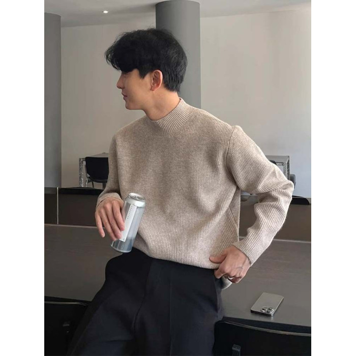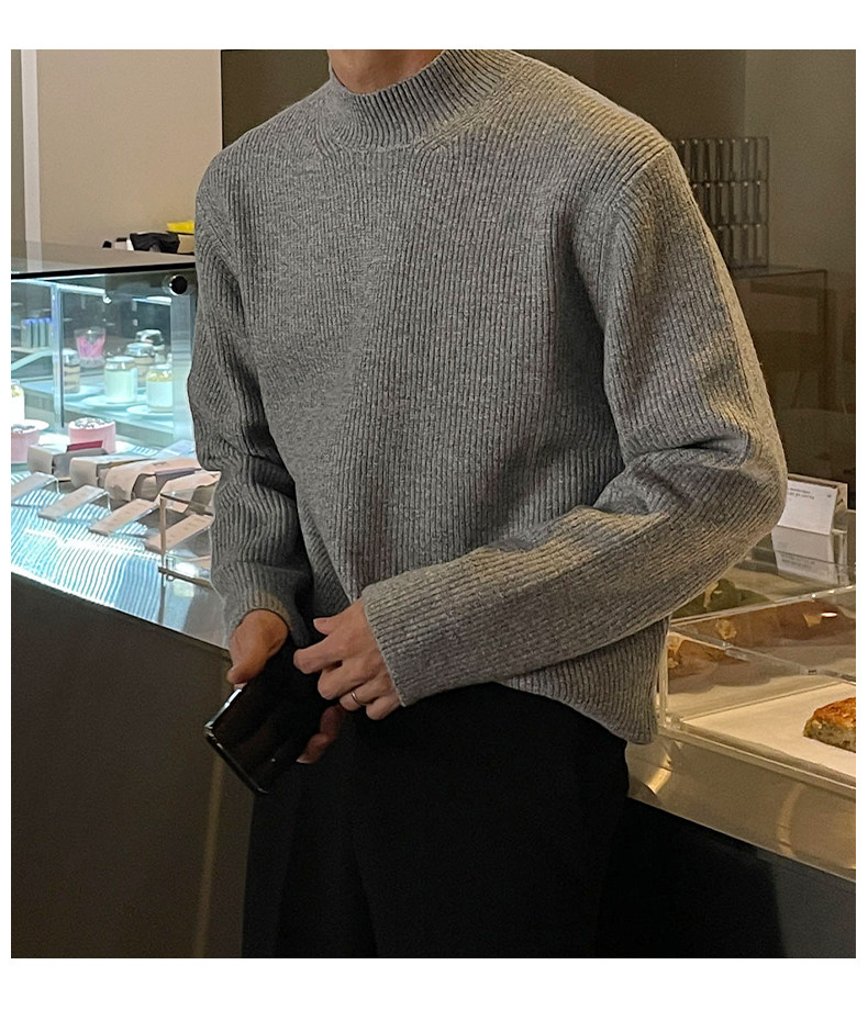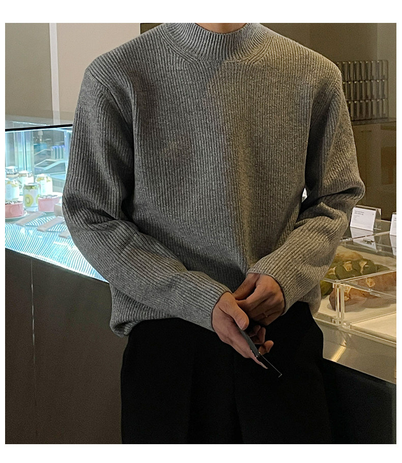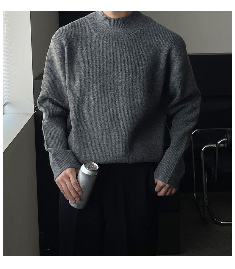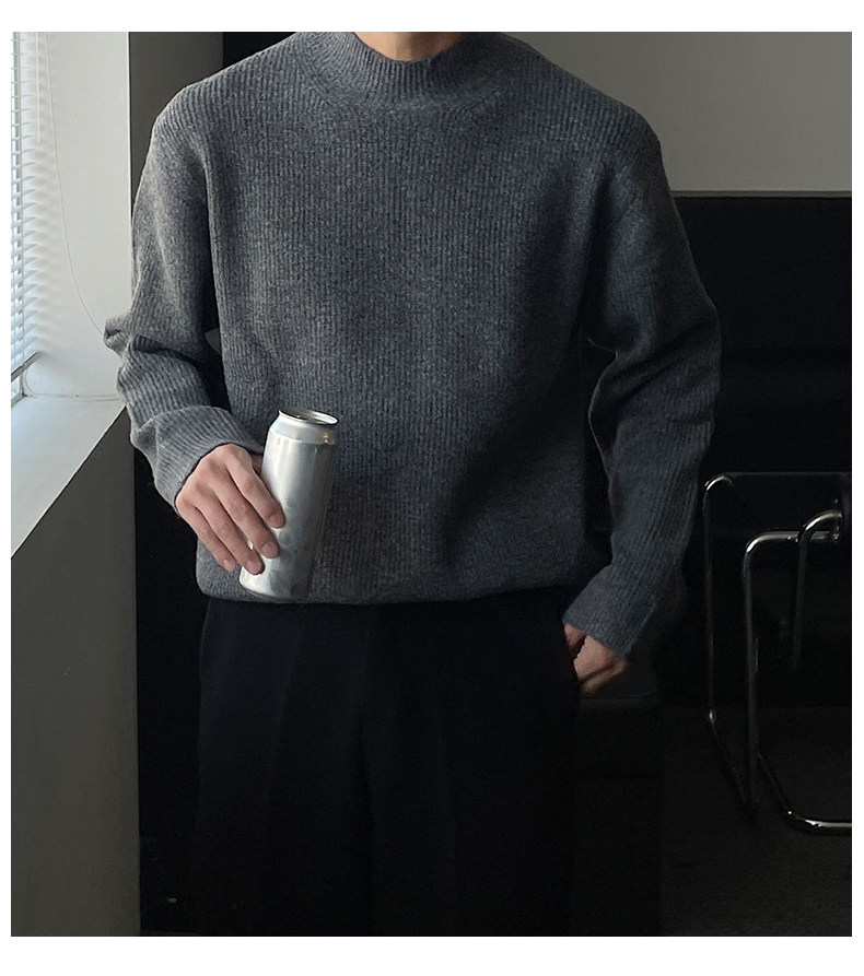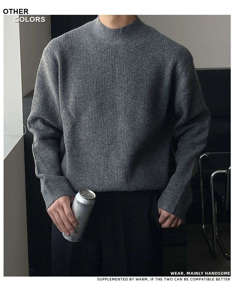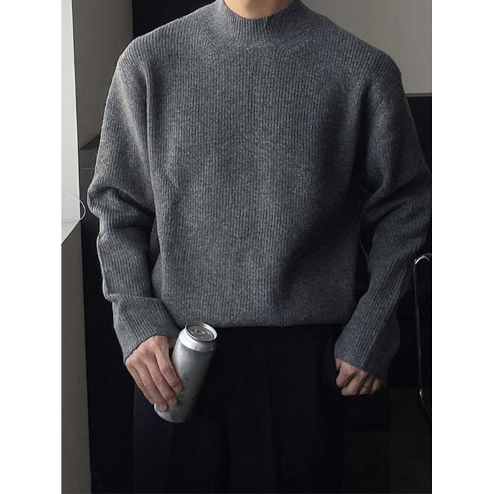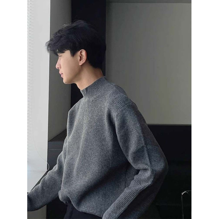 深灰色半高領毛衣男冬季高級感毛衫針織衫寬鬆中領內搭打底衫上衣