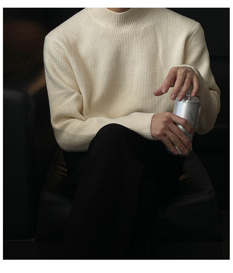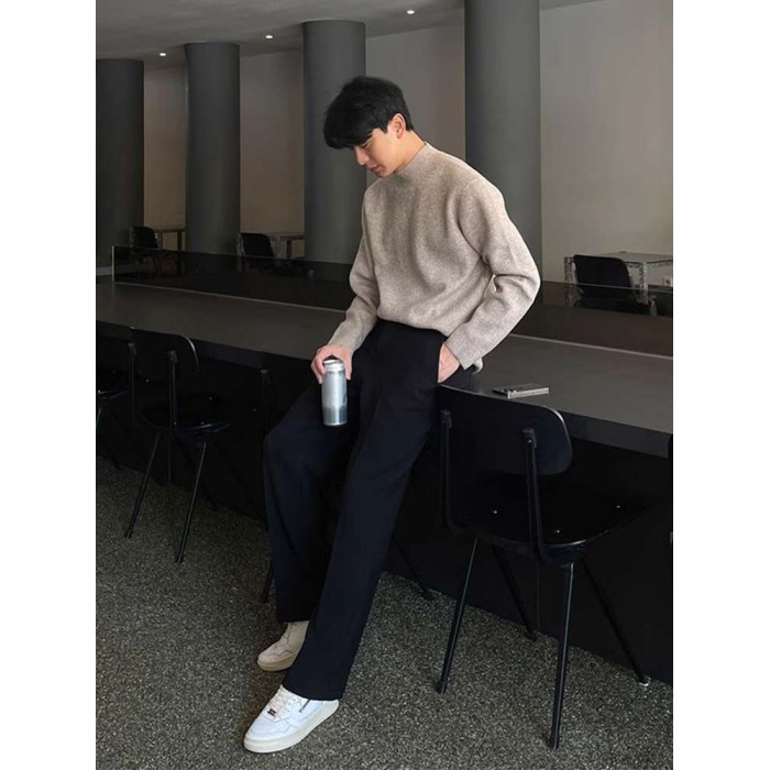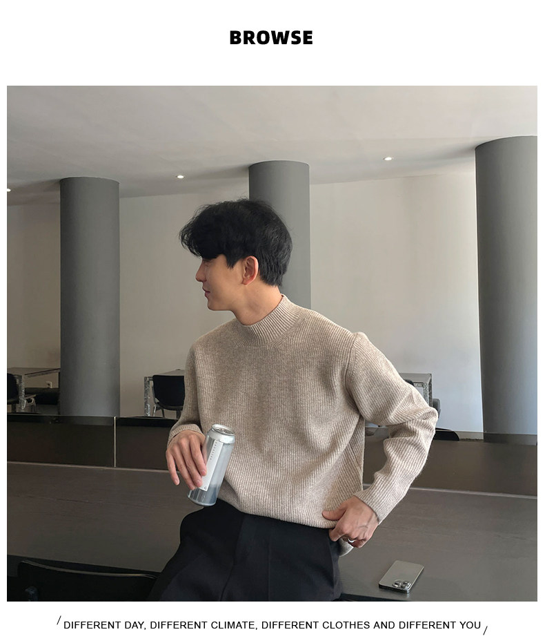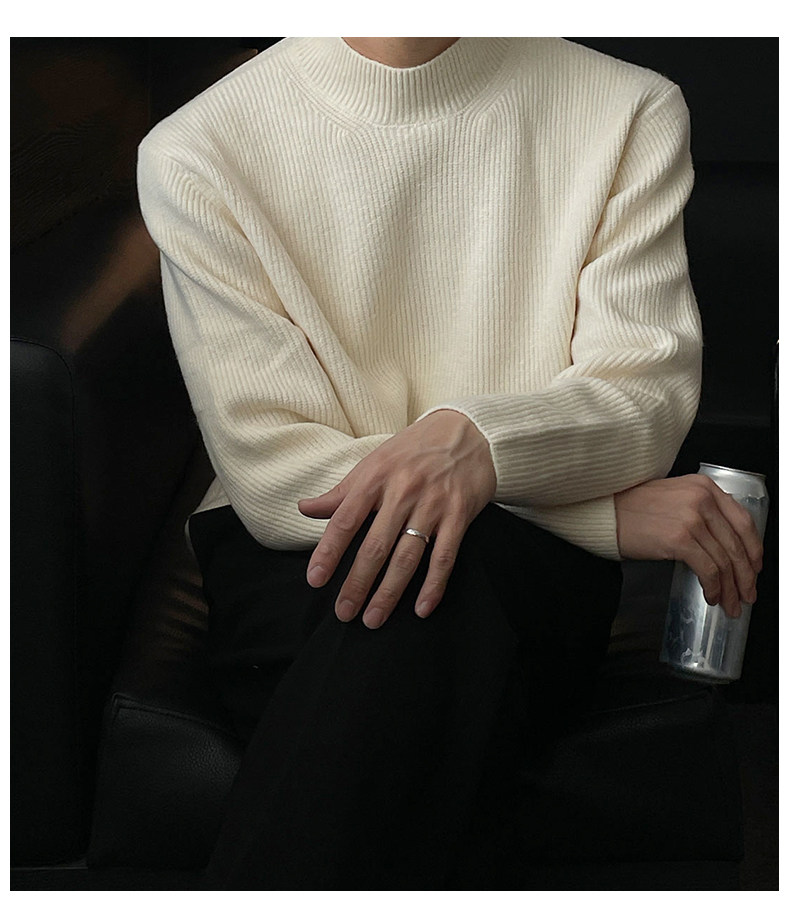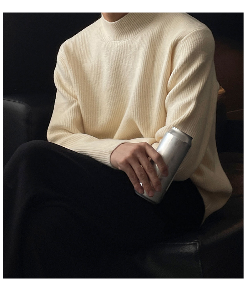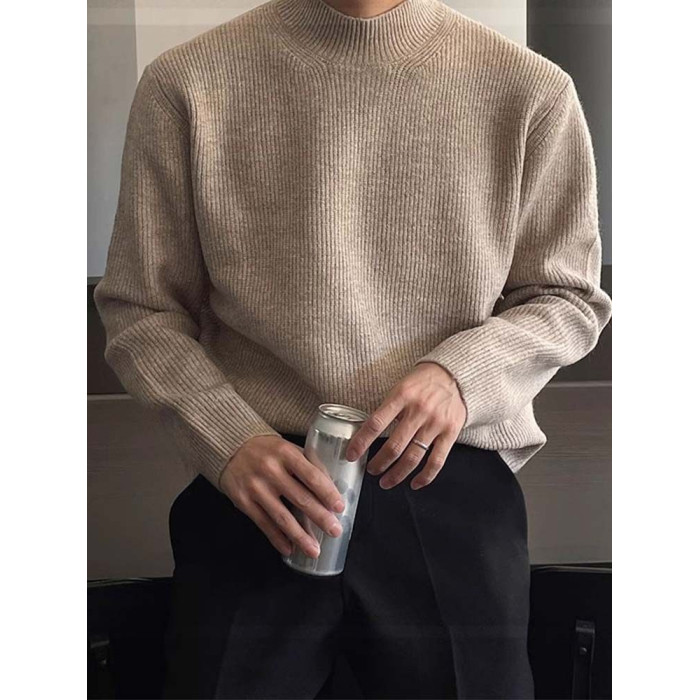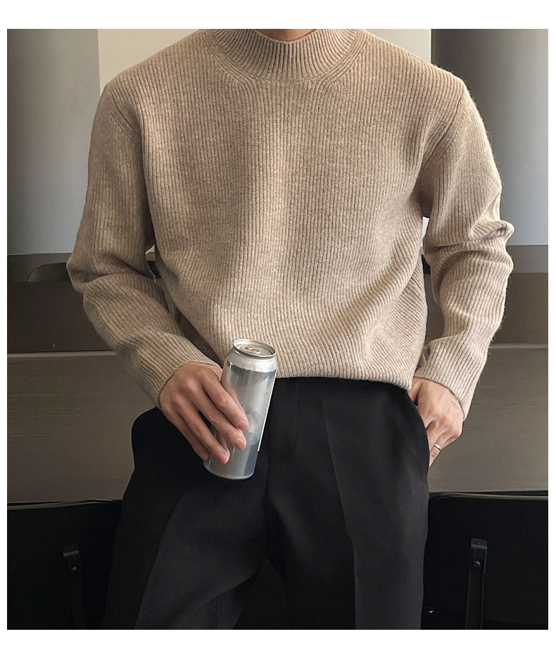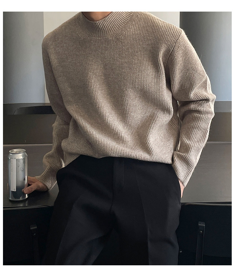 深灰色半高領毛衣男冬季高級感毛衫針織衫寬鬆中領內搭打底衫上衣
