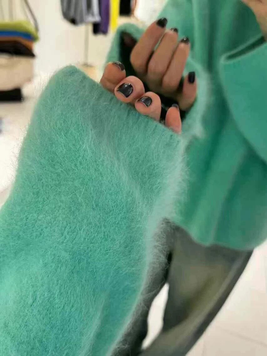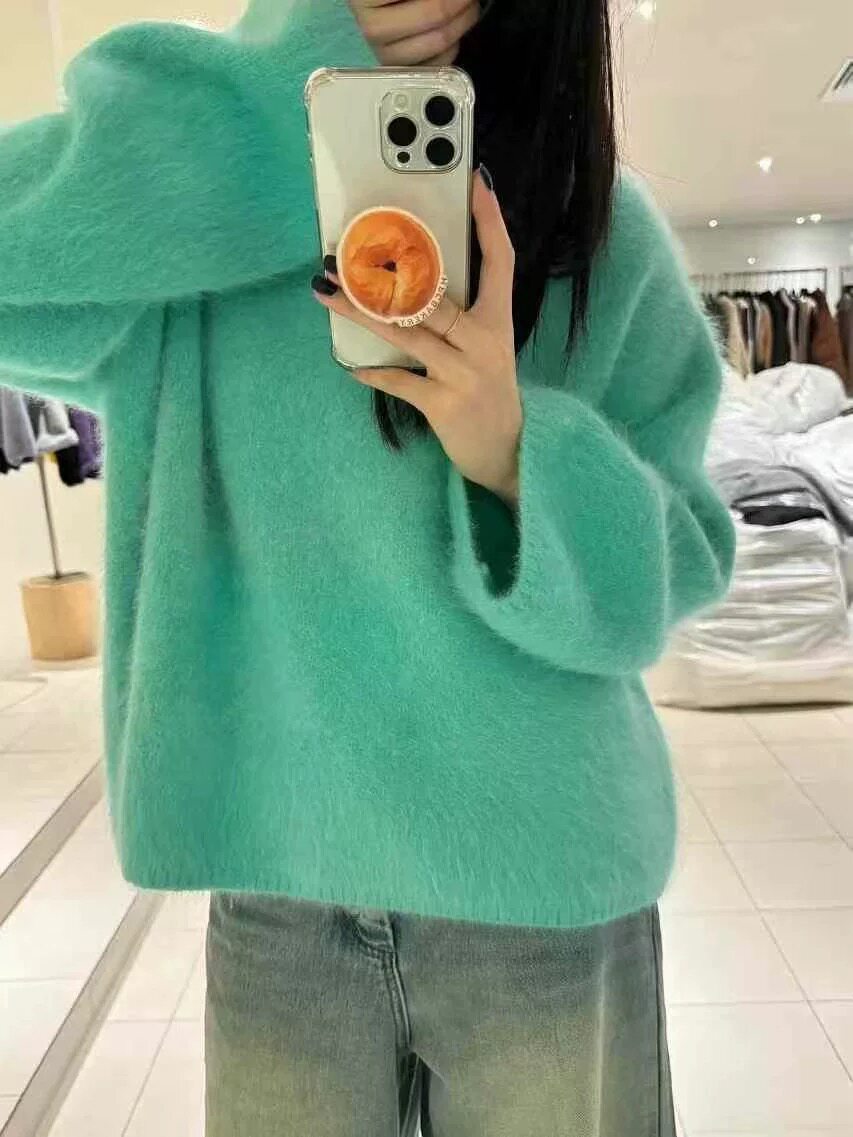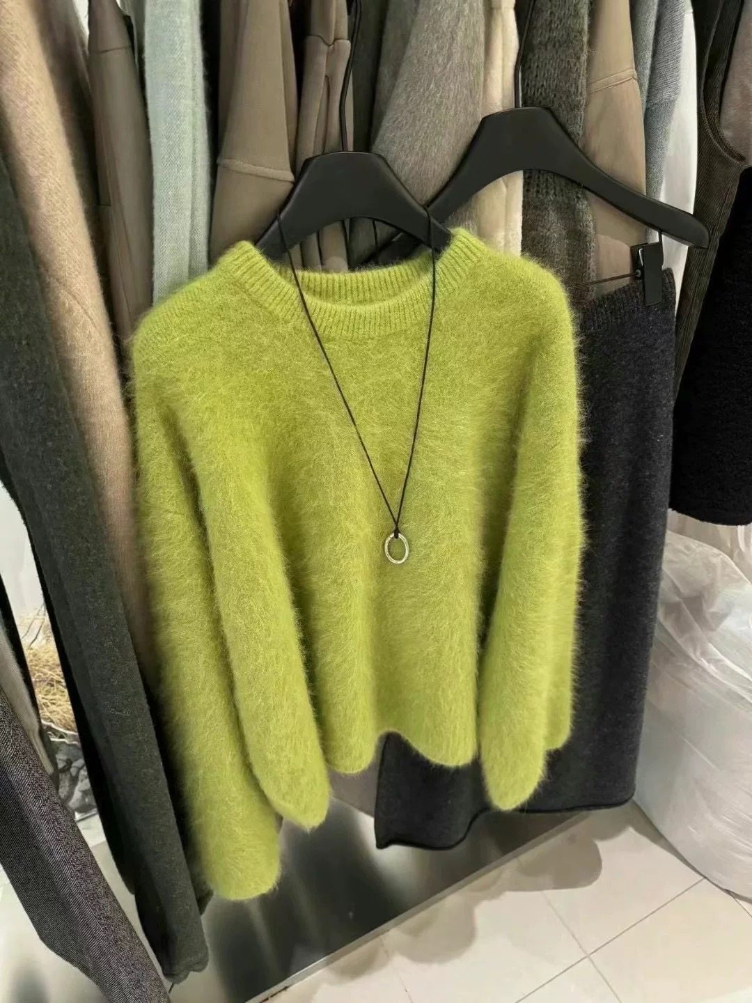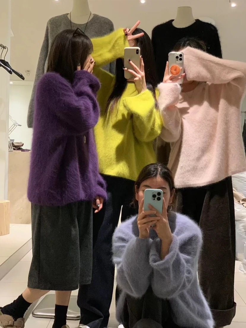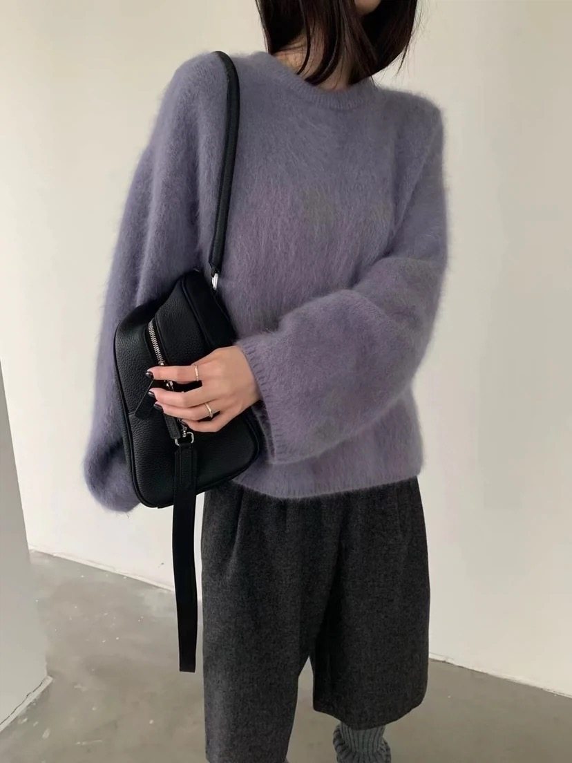 軟糯嬭fufu紫色水貂絨套頭毛衣女秋冬外穿寬鬆慵嬾毛茸茸針織上衣
