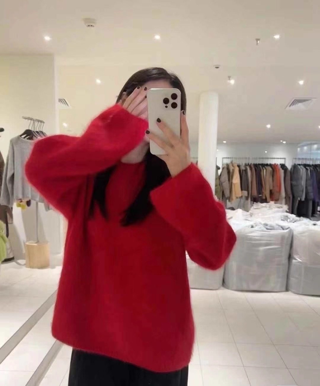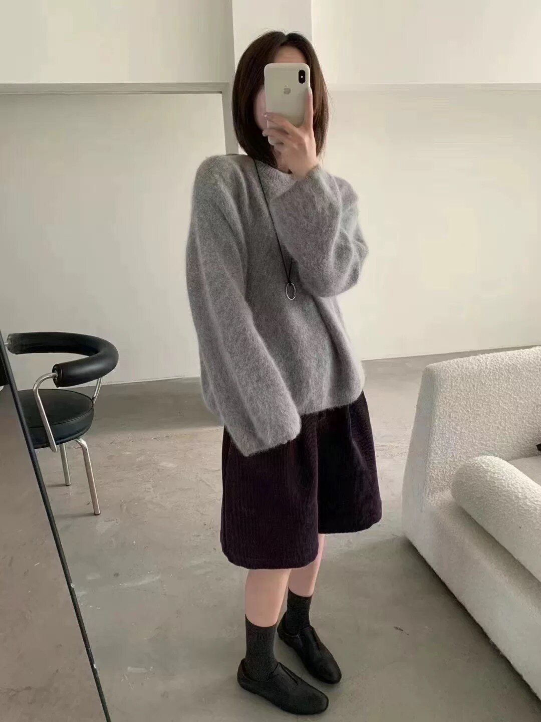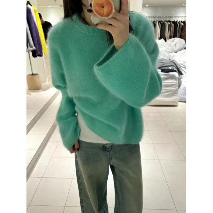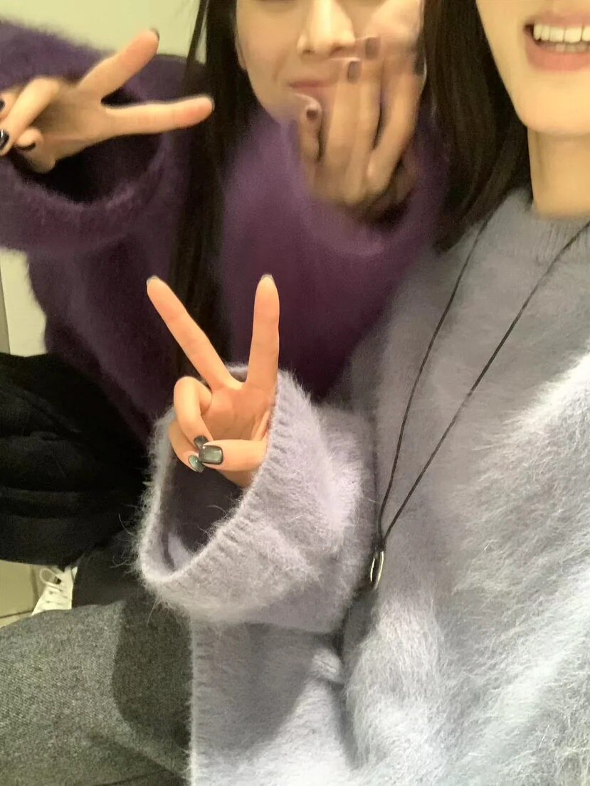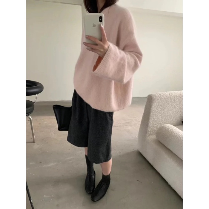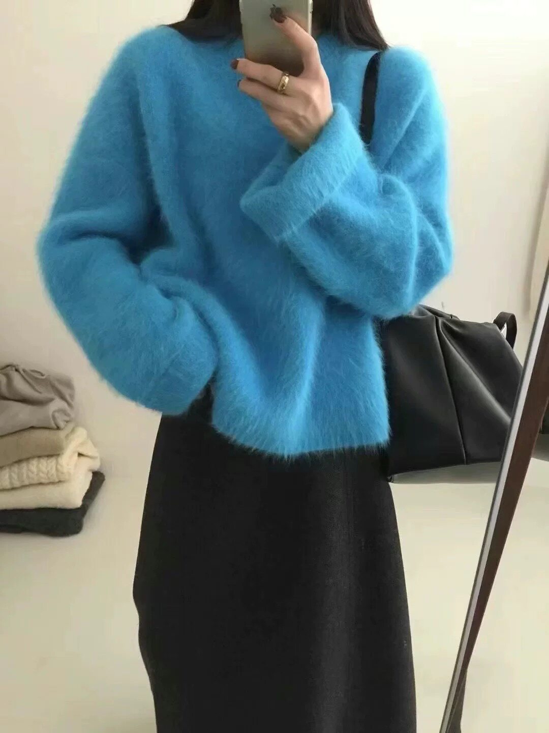 軟糯嬭fufu紫色水貂絨套頭毛衣女秋冬外穿寬鬆慵嬾毛茸茸針織上衣