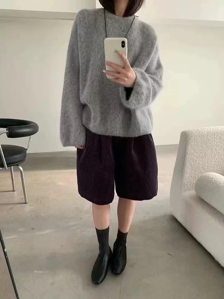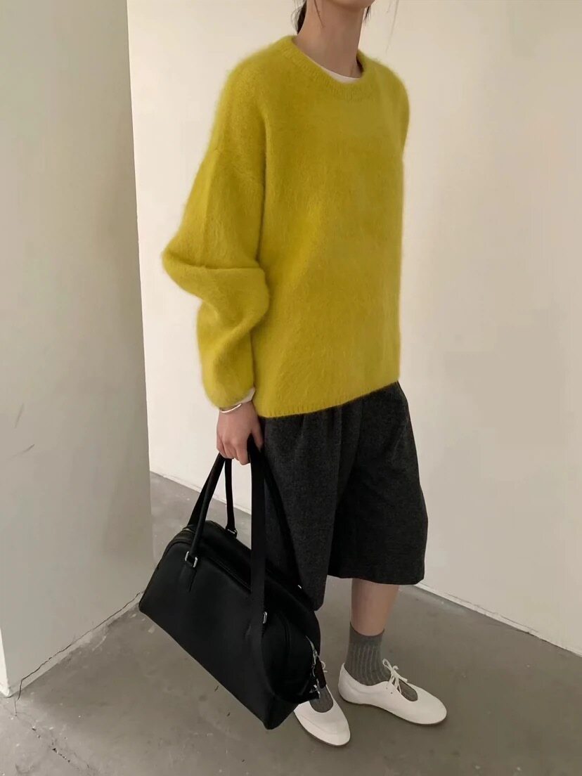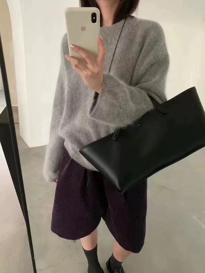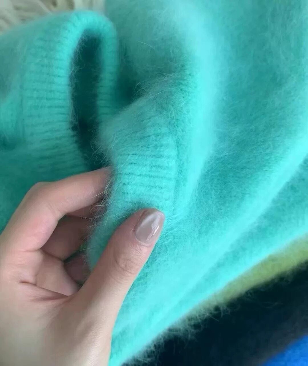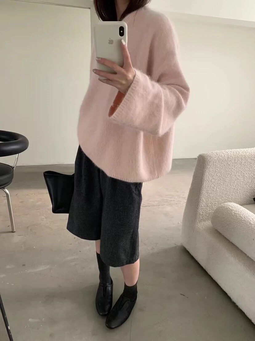 軟糯嬭fufu紫色水貂絨套頭毛衣女秋冬外穿寬鬆慵嬾毛茸茸針織上衣