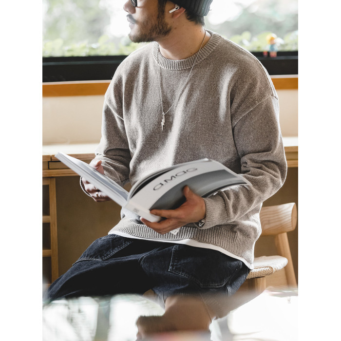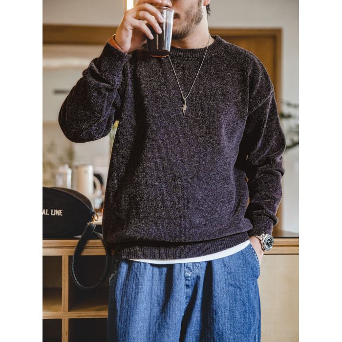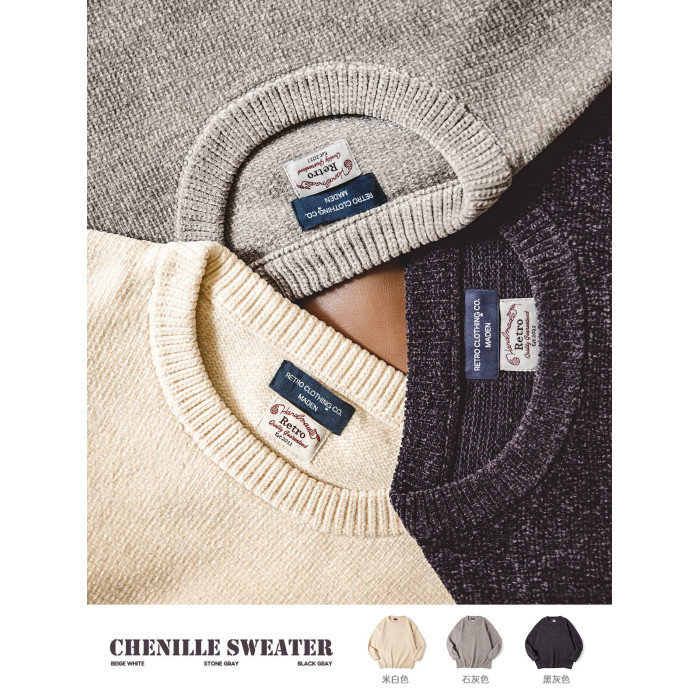 馬登工裝美式復古雪尼爾圓領毛衣保暖慵嬾內搭打底針織衫男秋冬季