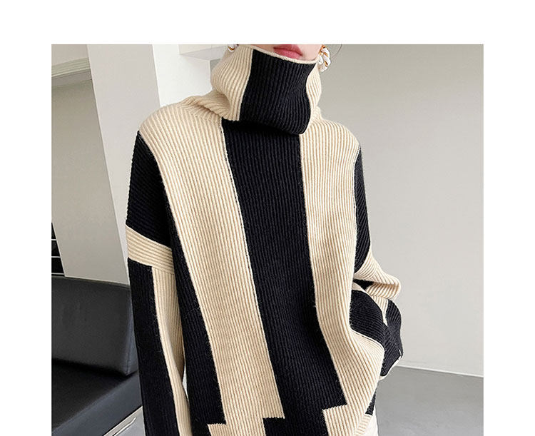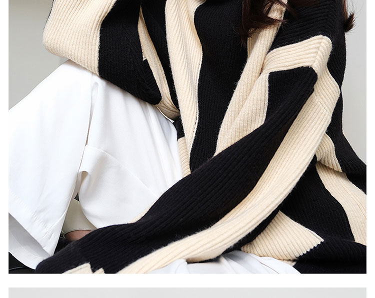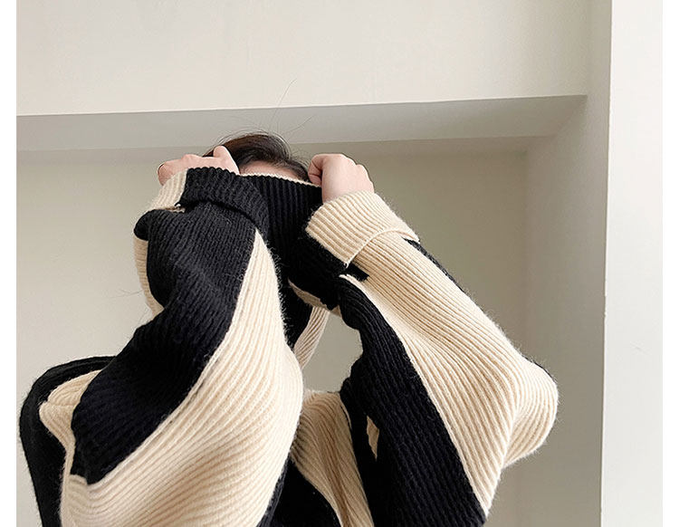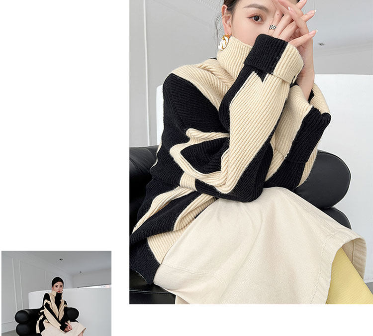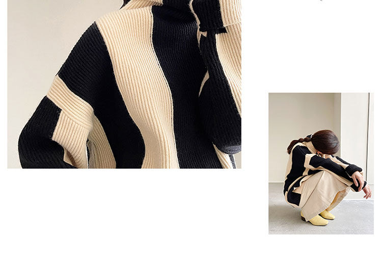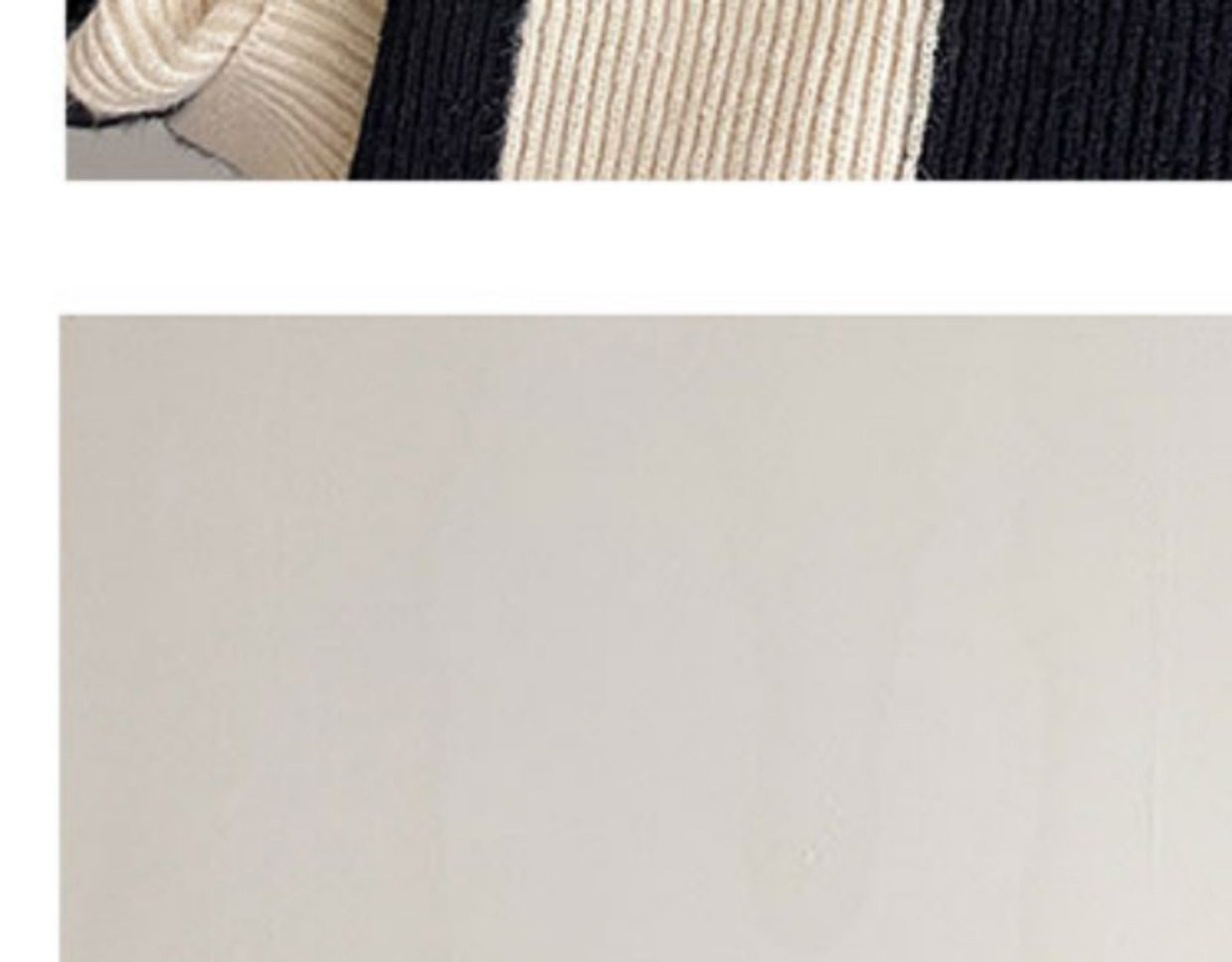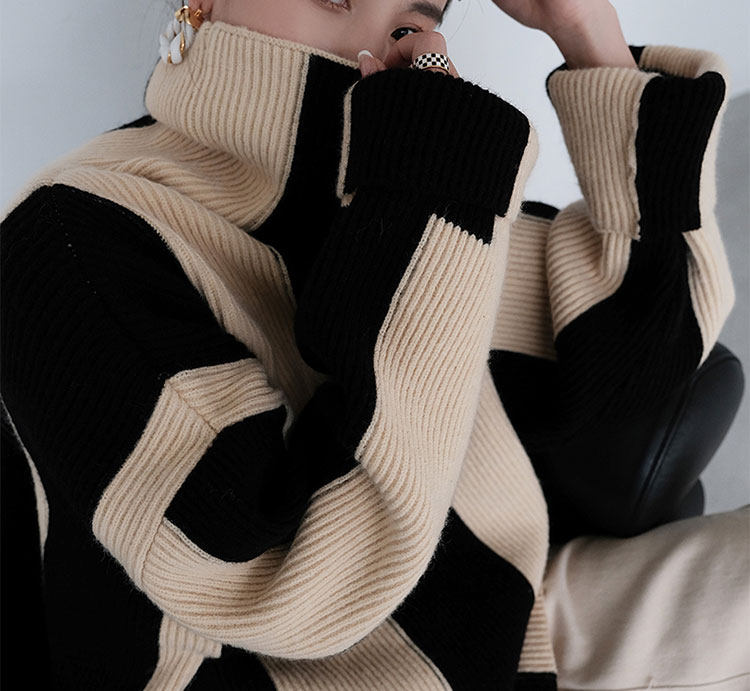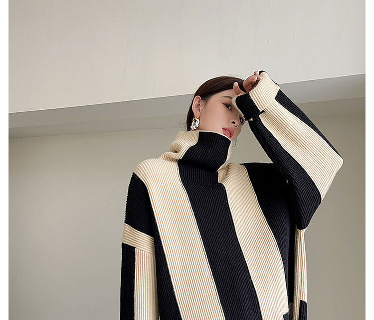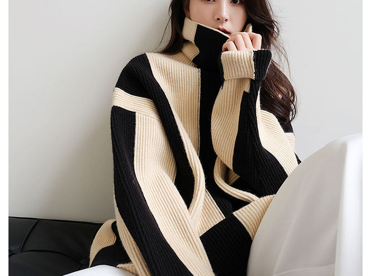 慵嬾風高領套頭黑白條紋毛衣女款秋冬外穿溫柔軟糯外套針織上衣厚