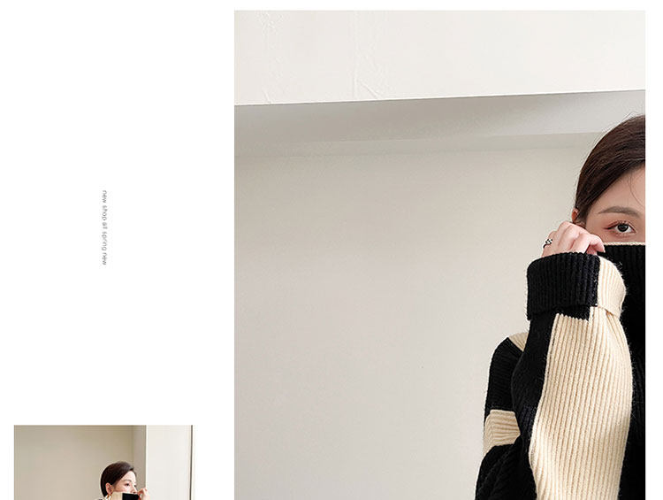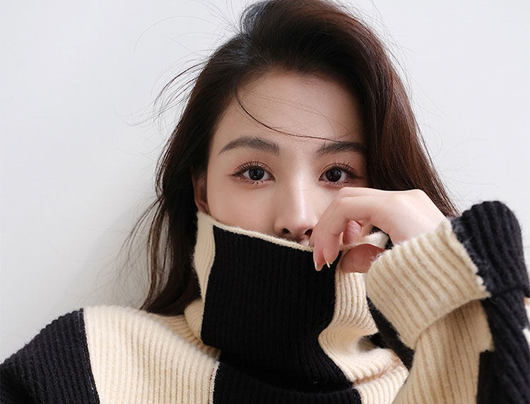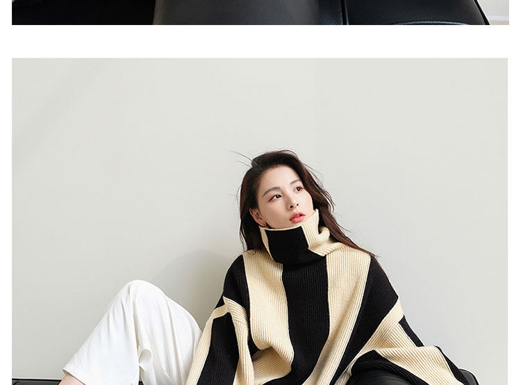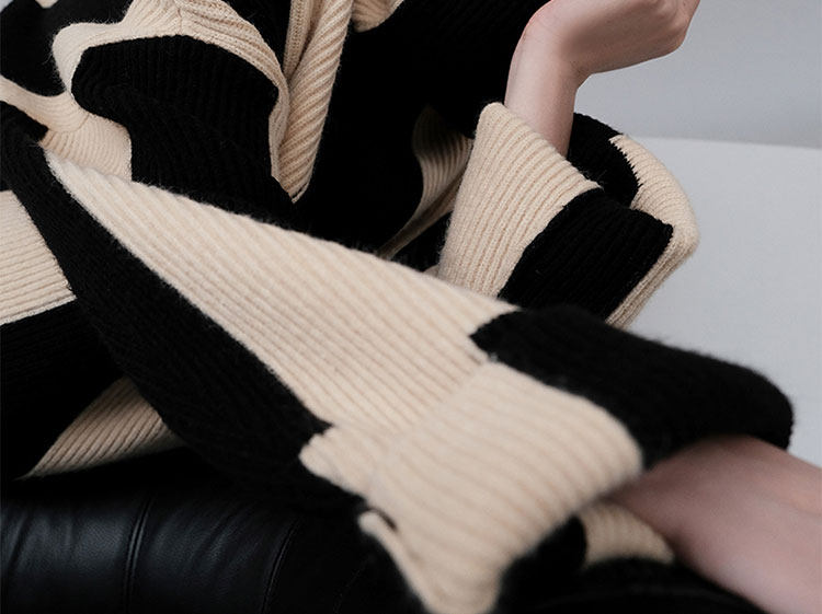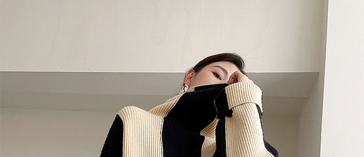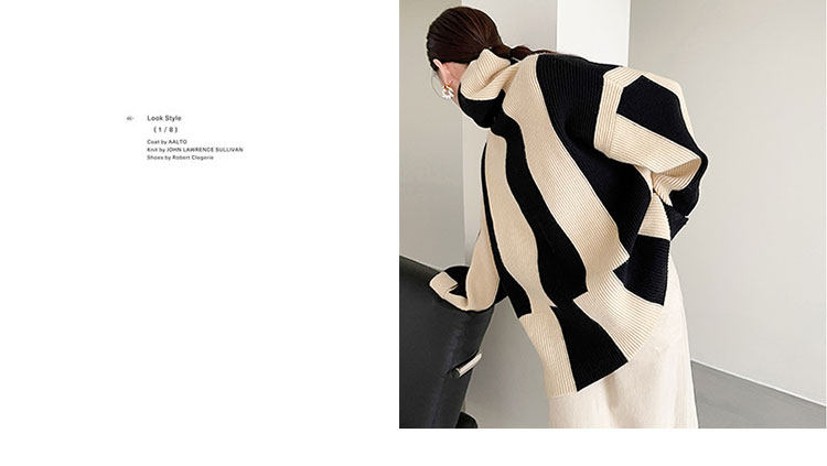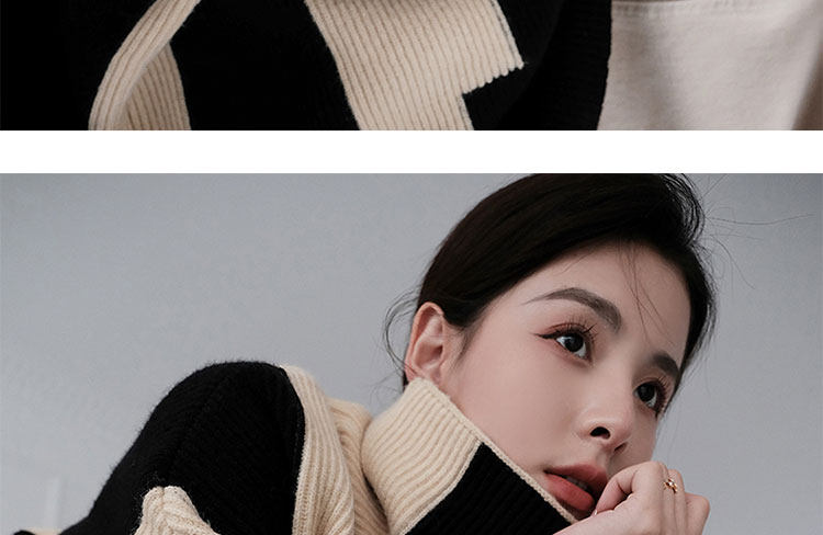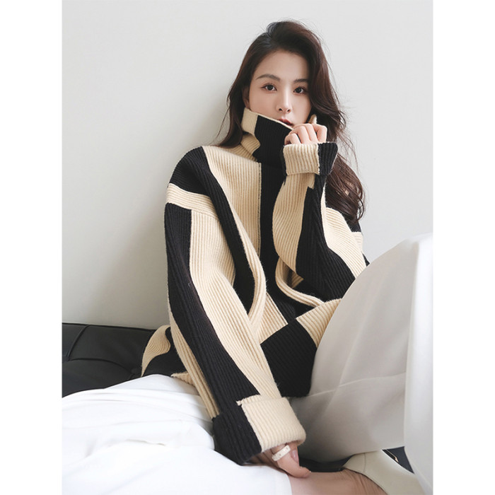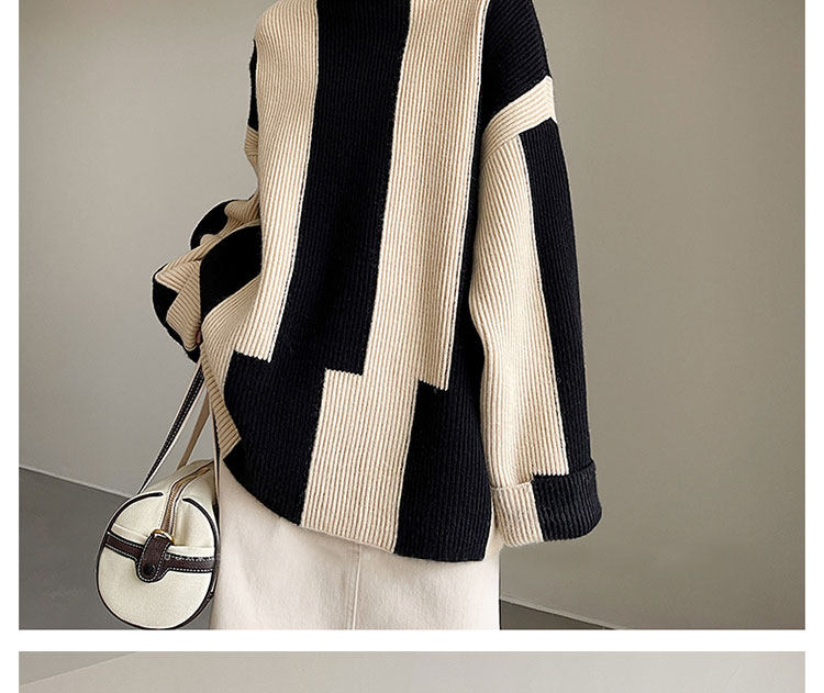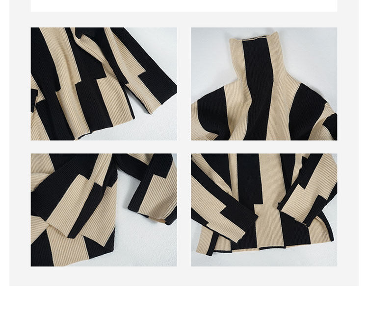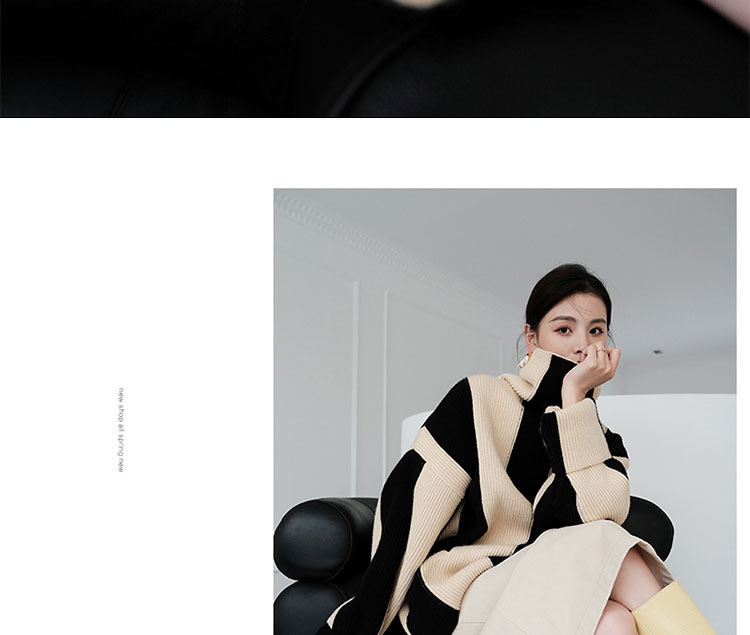 慵嬾風高領套頭黑白條紋毛衣女款秋冬外穿溫柔軟糯外套針織上衣厚