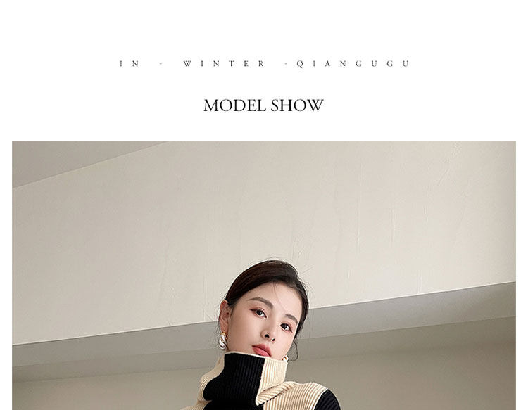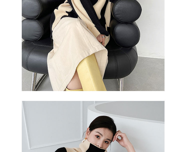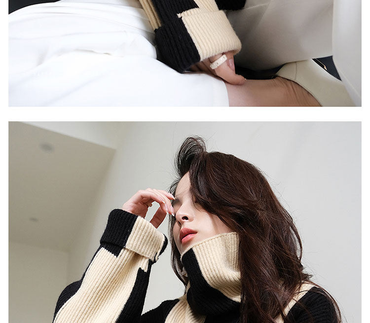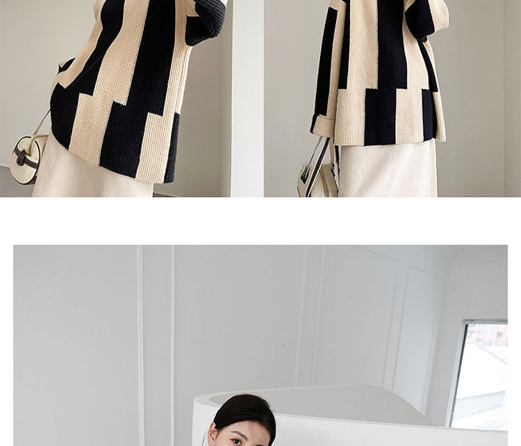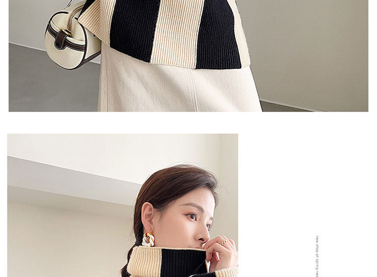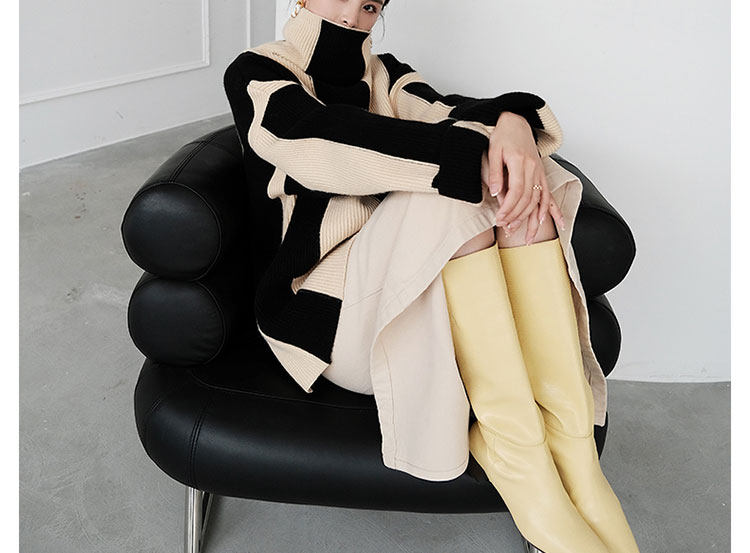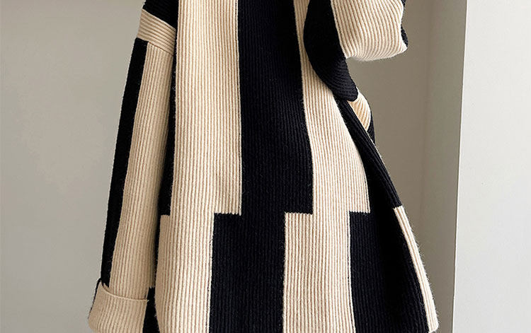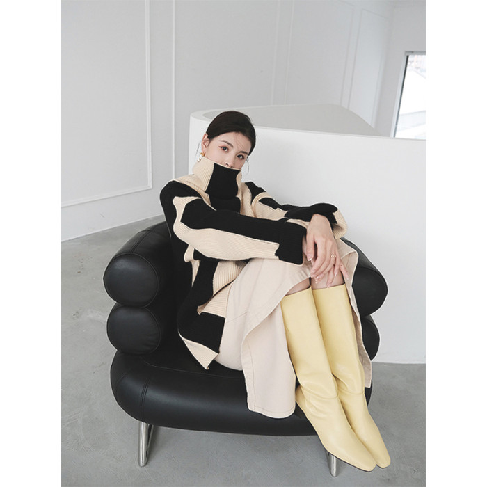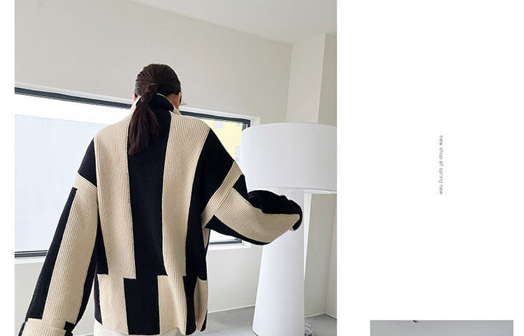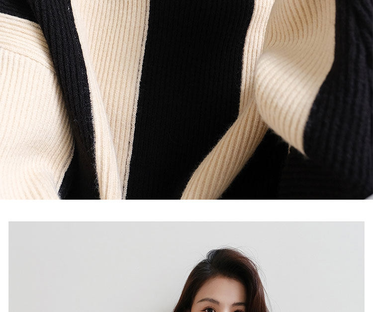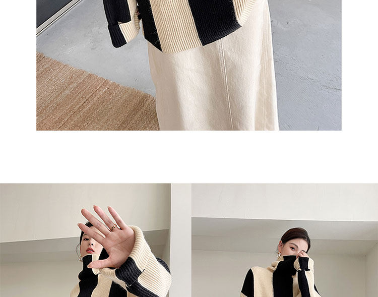 慵嬾風高領套頭黑白條紋毛衣女款秋冬外穿溫柔軟糯外套針織上衣厚