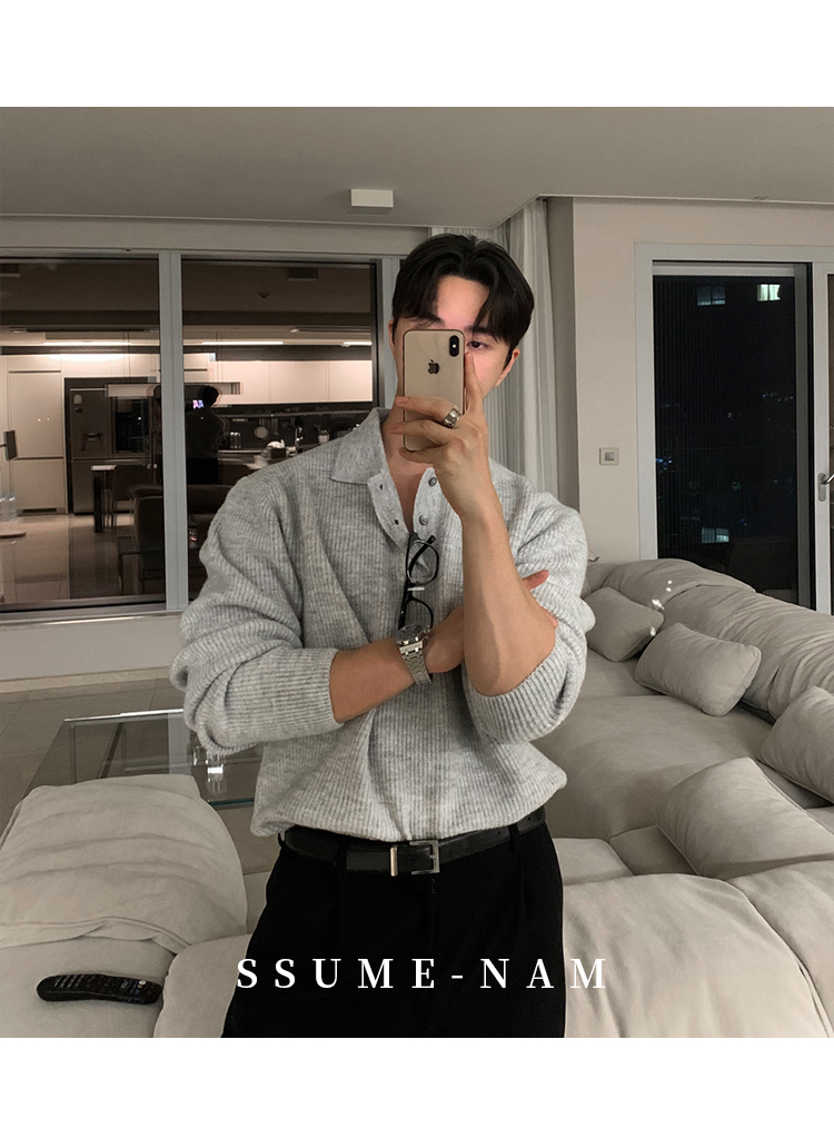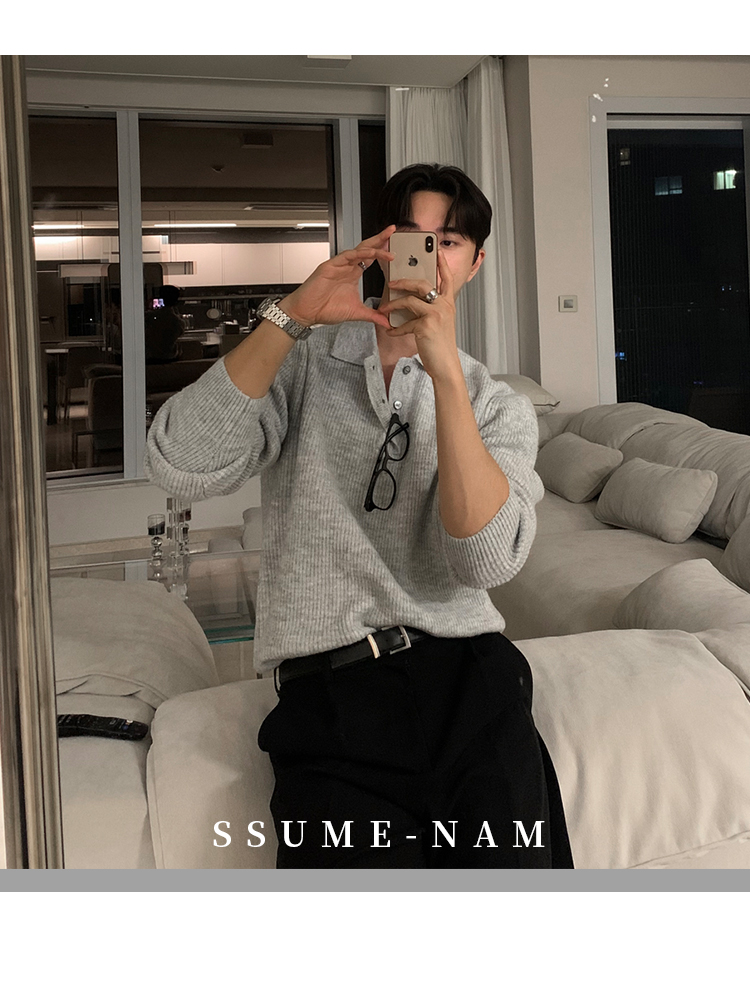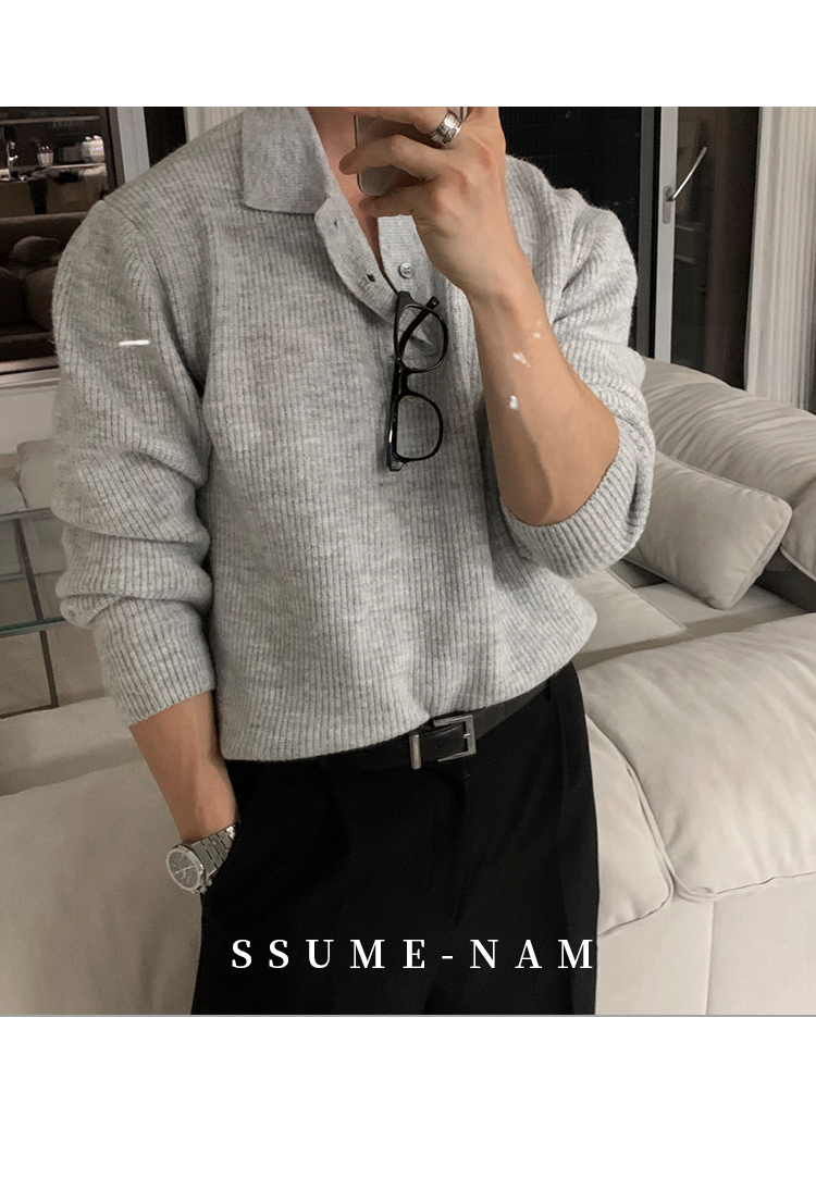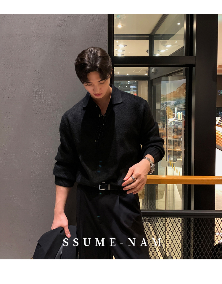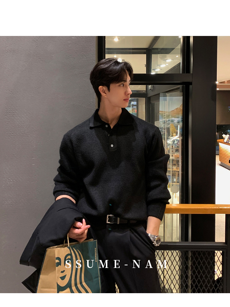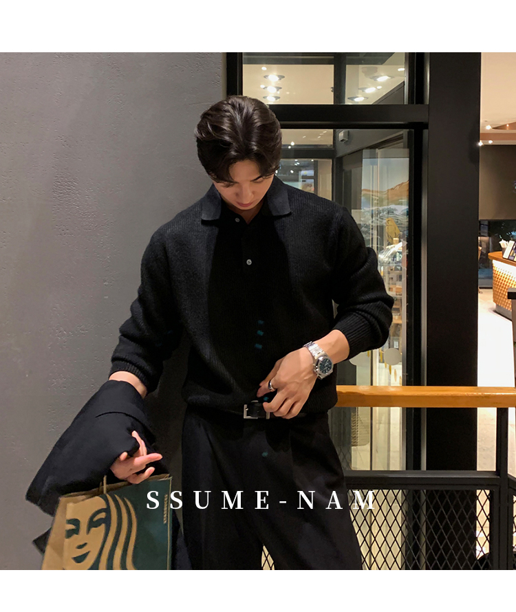 SSUMENAM「紋理感」polo領毛衣男秋冬季設計感小衆寬松翻領針織衫