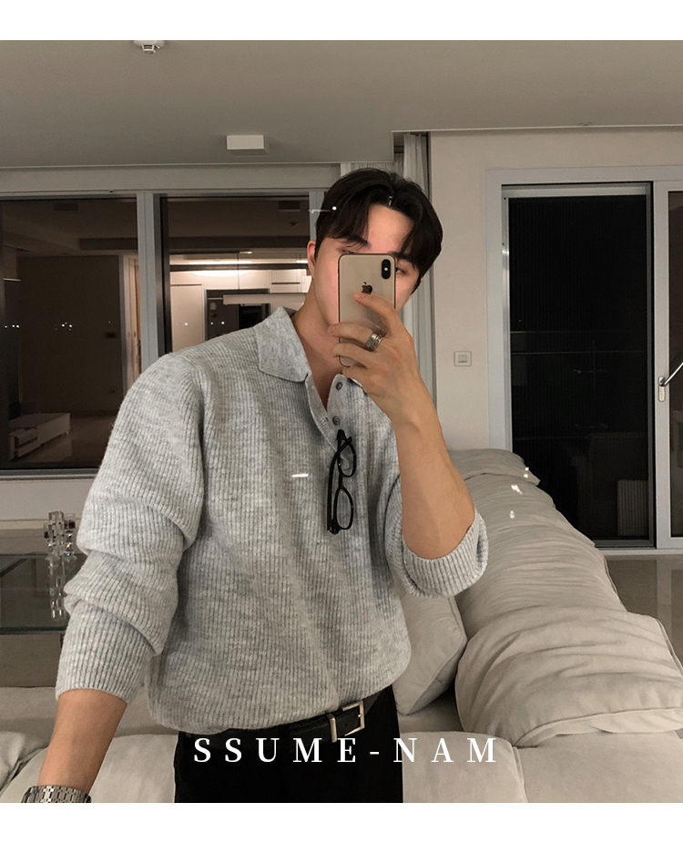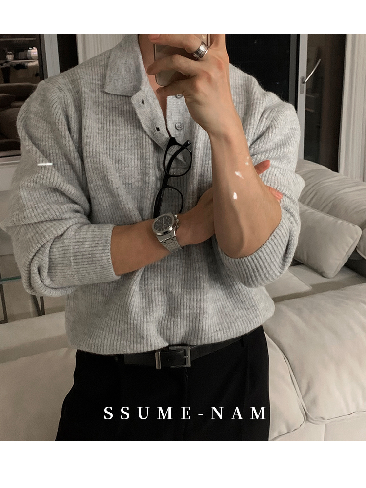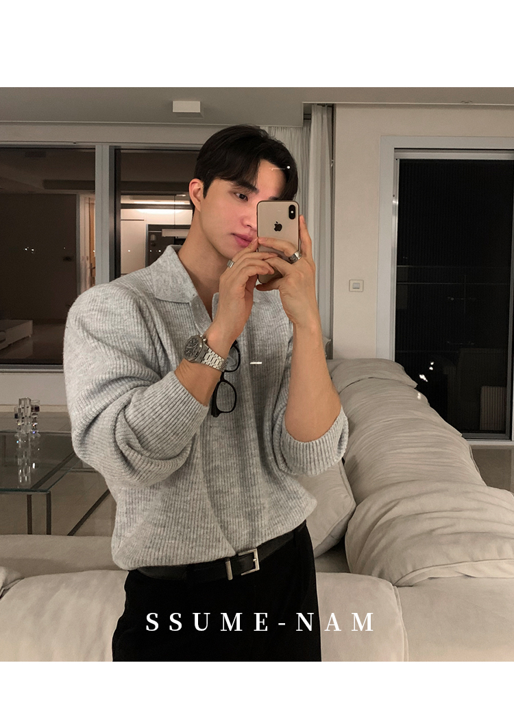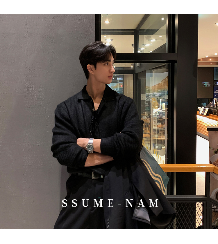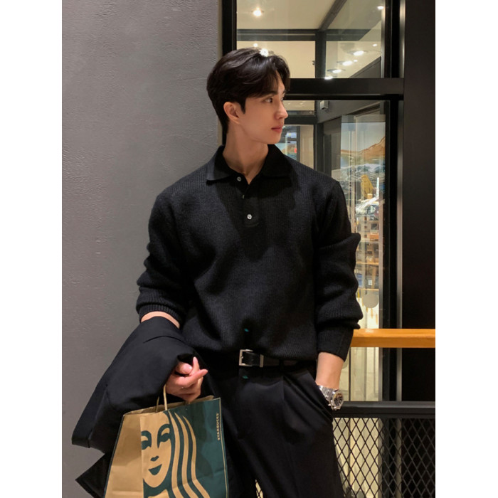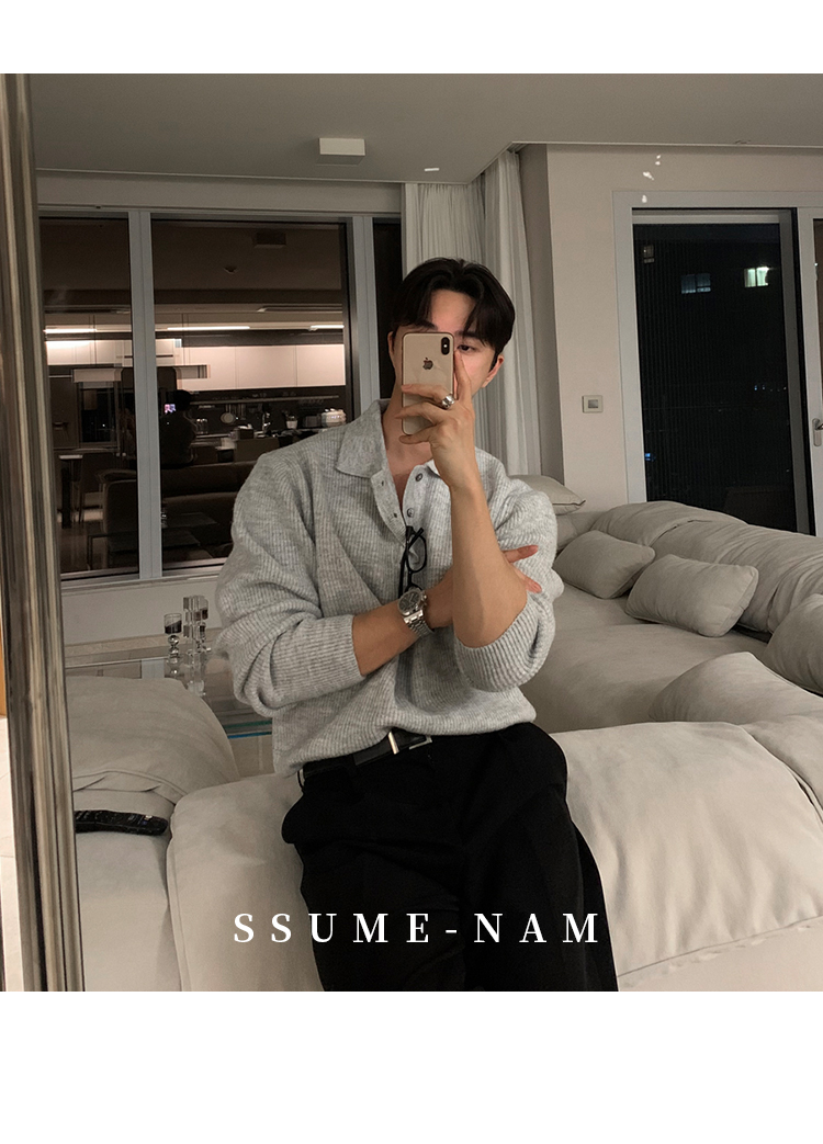 SSUMENAM「紋理感」polo領毛衣男秋冬季設計感小衆寬松翻領針織衫