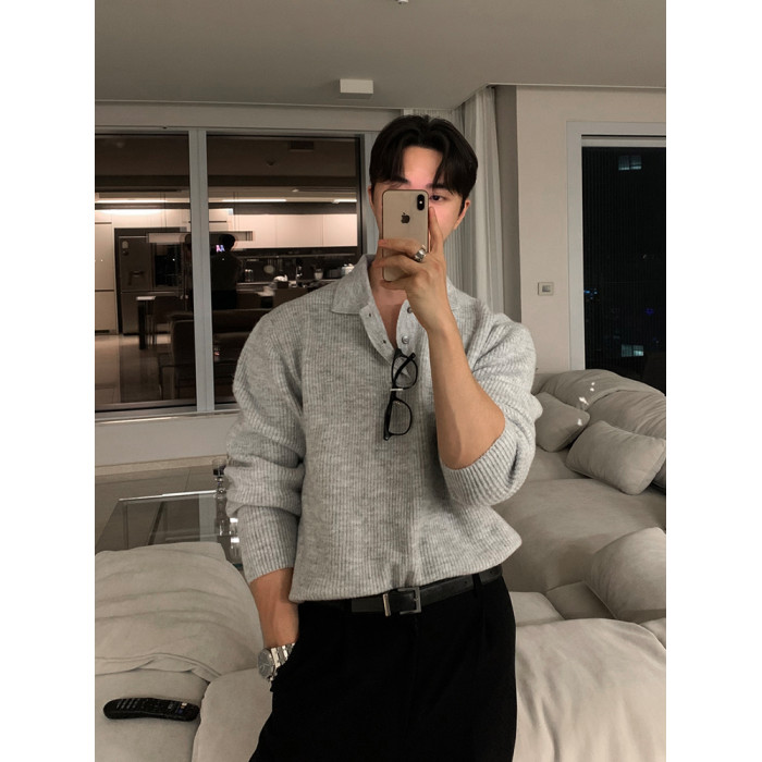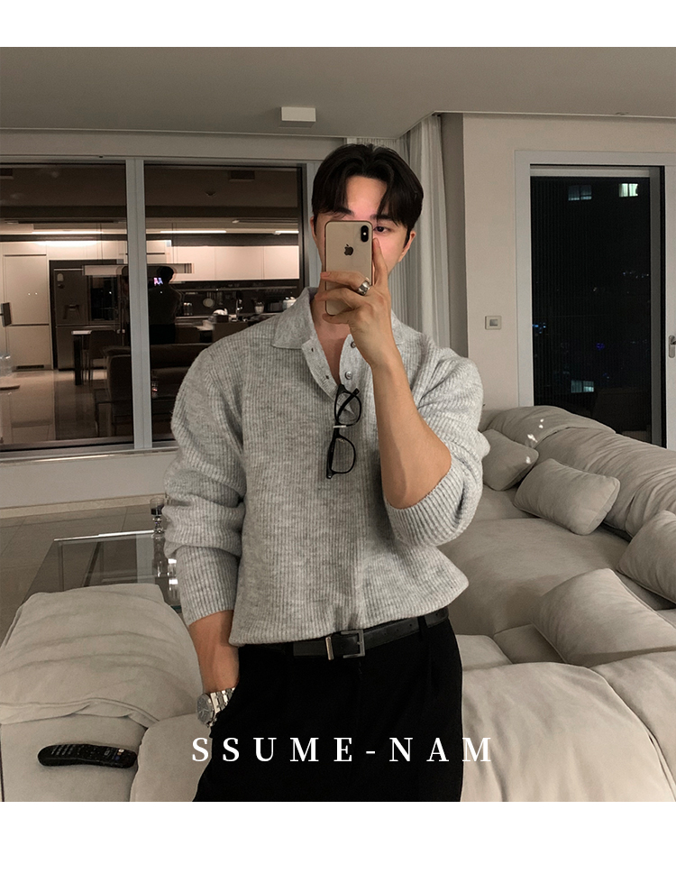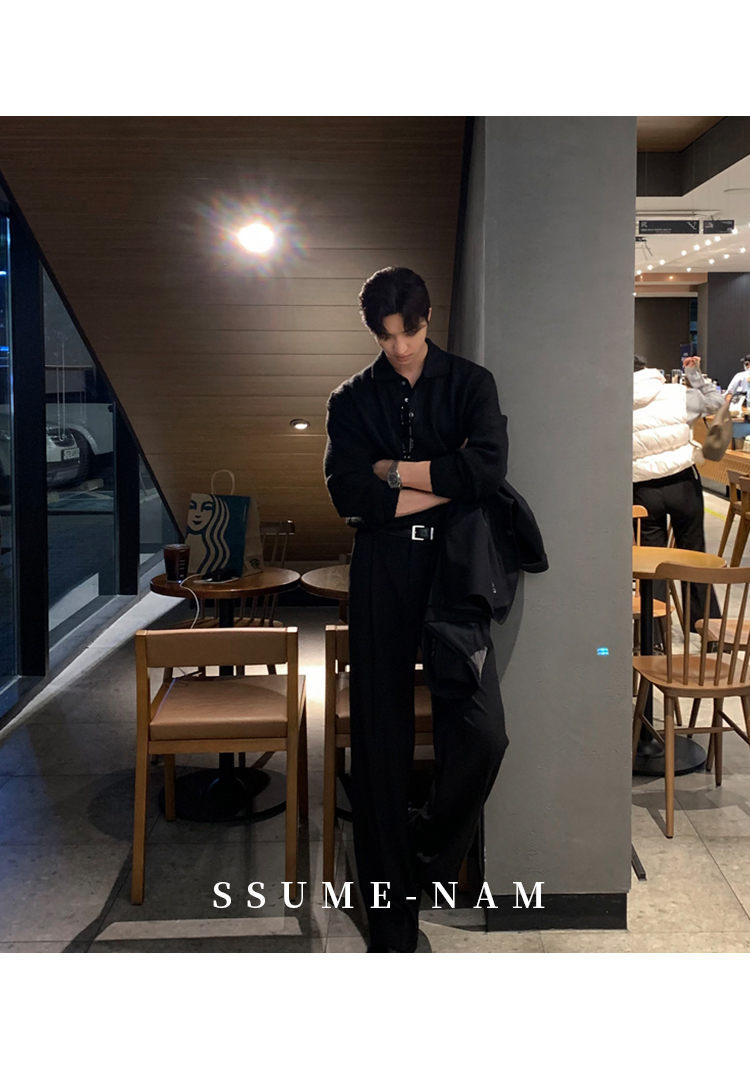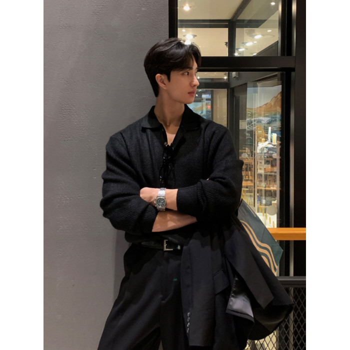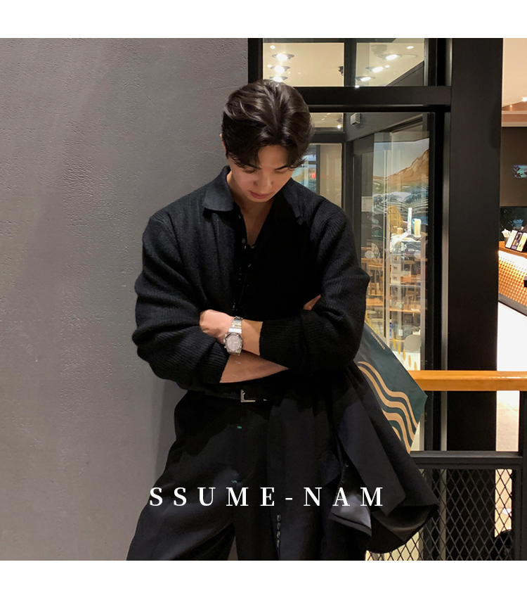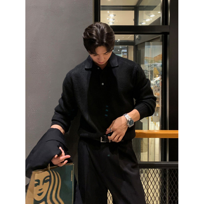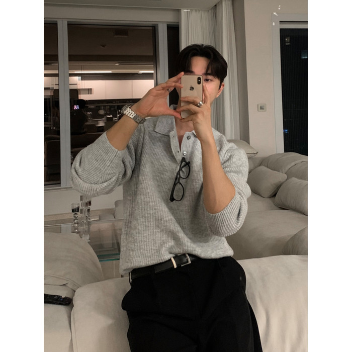 SSUMENAM「紋理感」polo領毛衣男秋冬季設計感小衆寬松翻領針織衫
