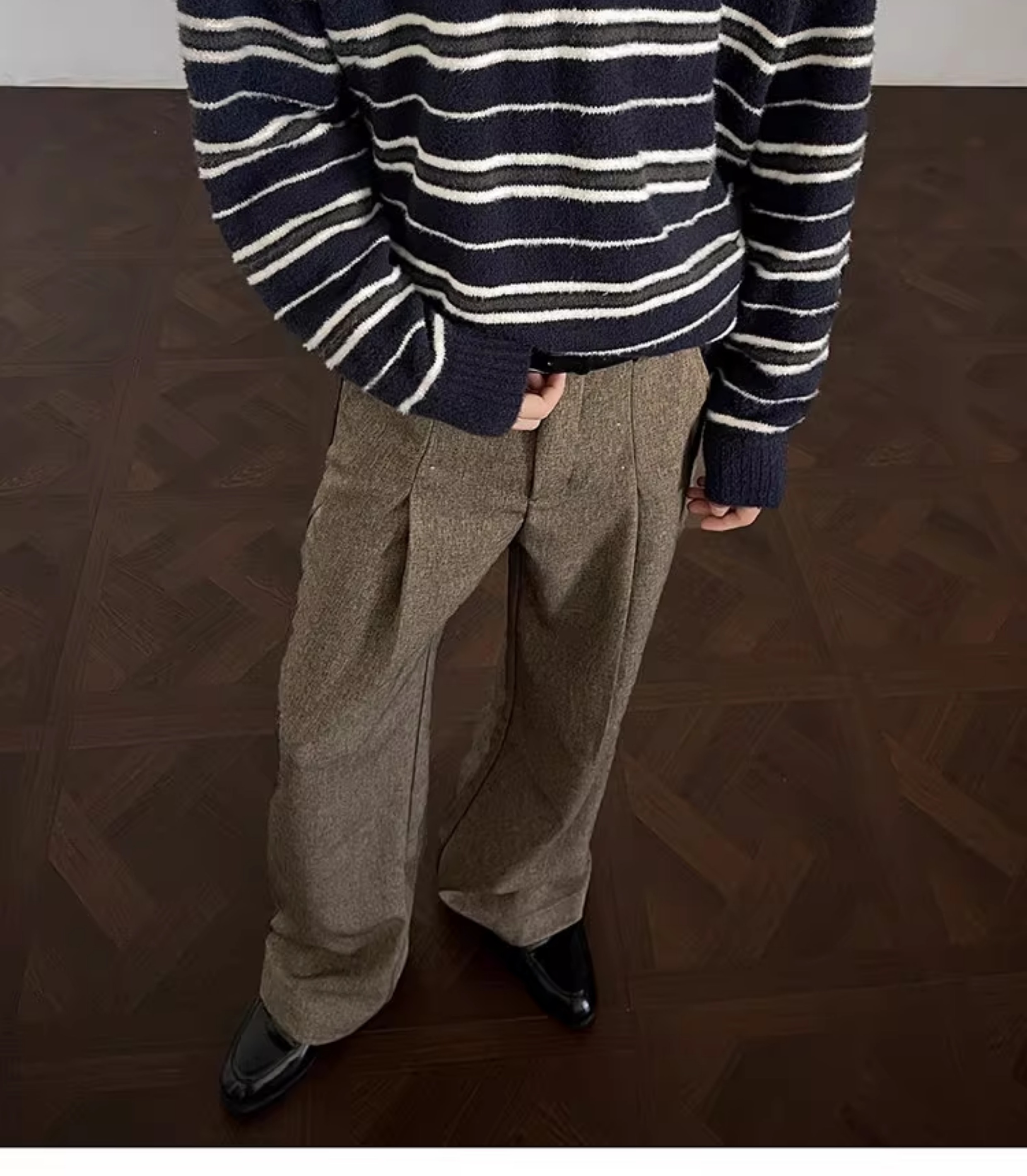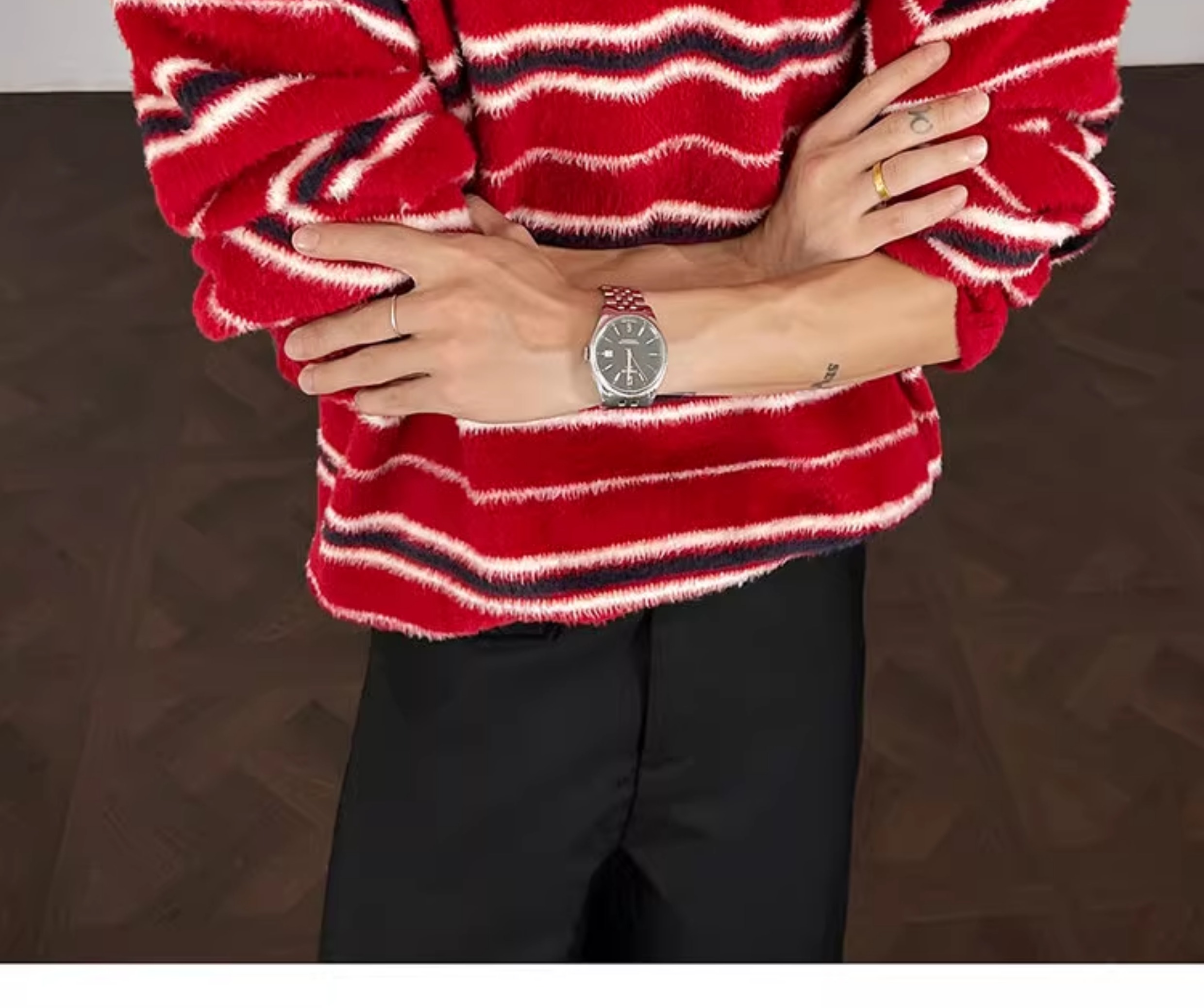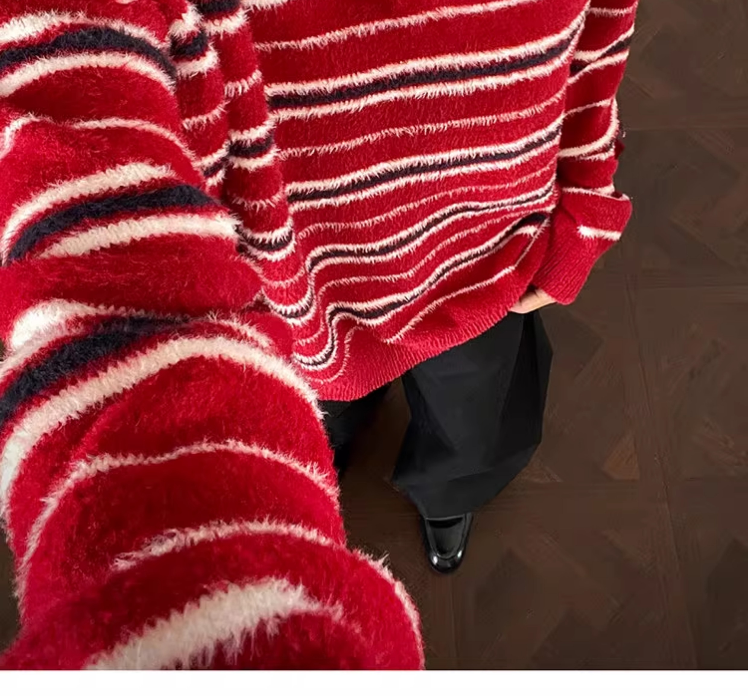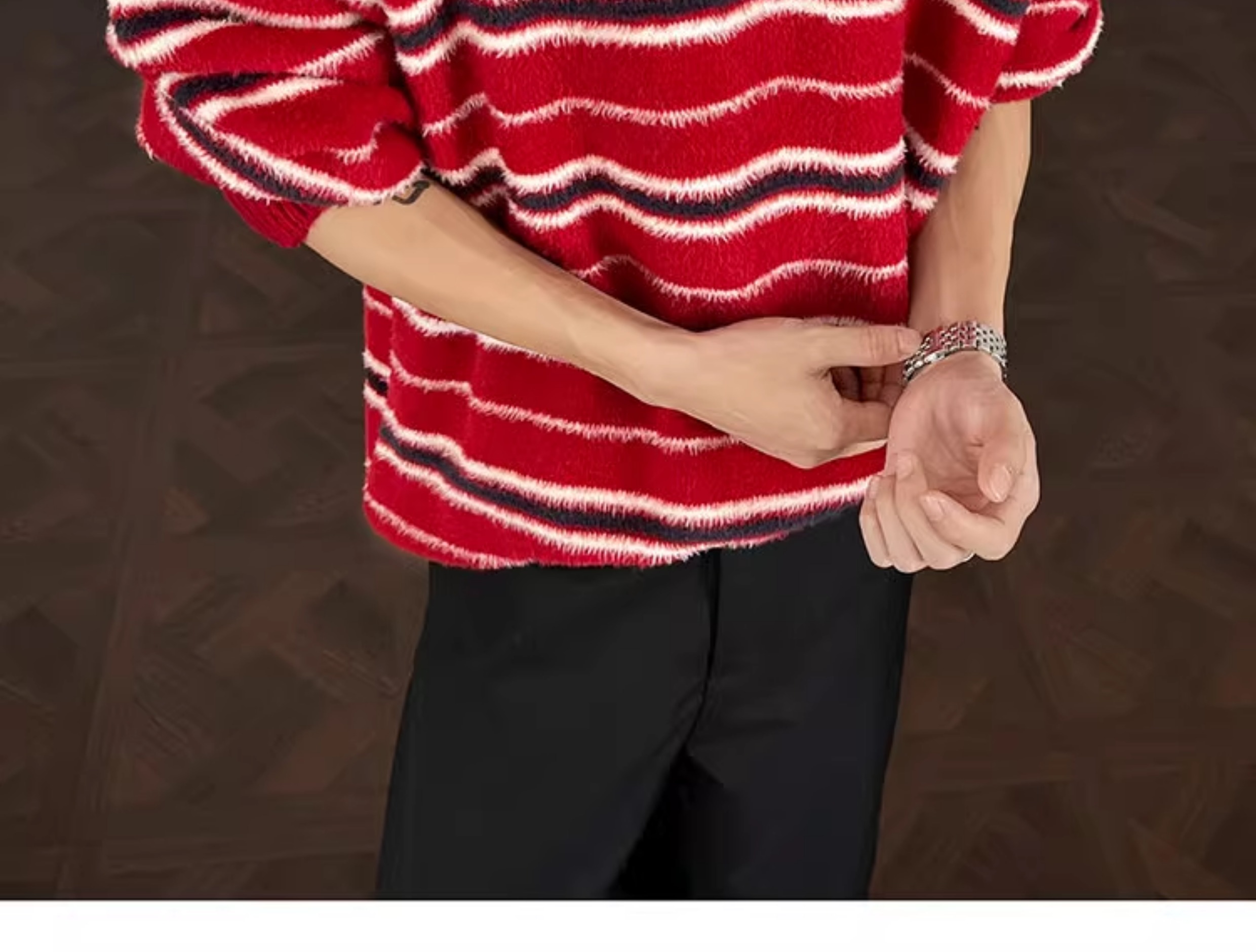 復古老錢風條紋撞色polo領毛衣男女秋冬慵懶感休閒寬松情侶針織衫
