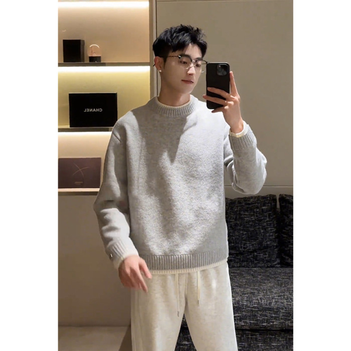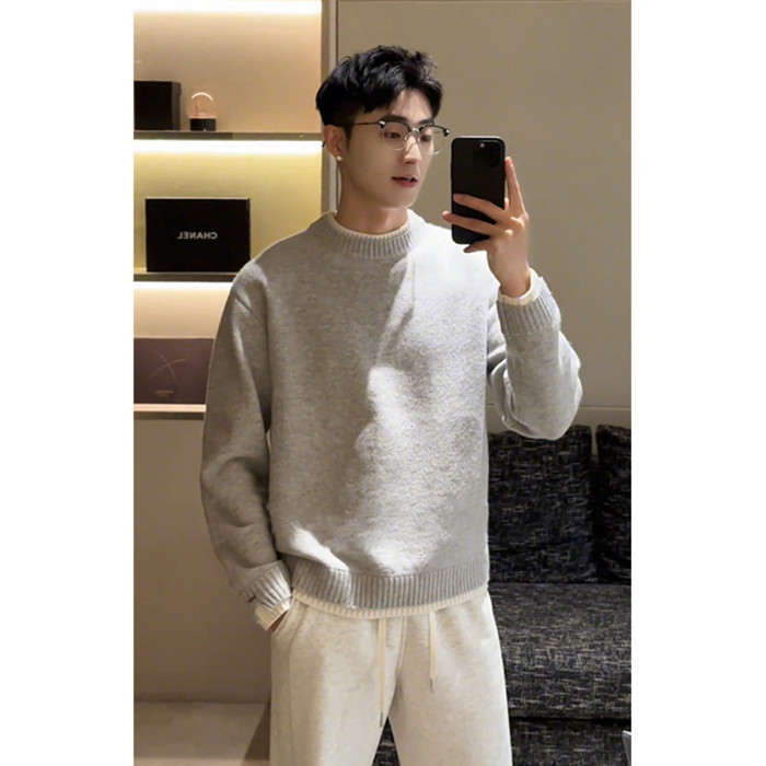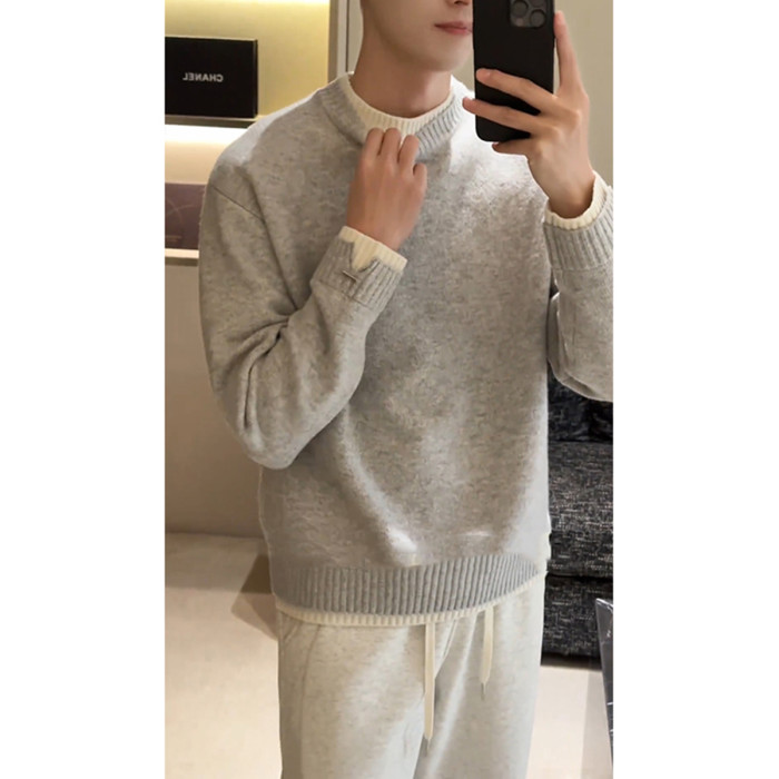 假兩件灰色毛衣男款冬季高級感韓系內搭針織衫cleanfit保暖外套
