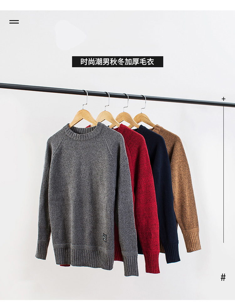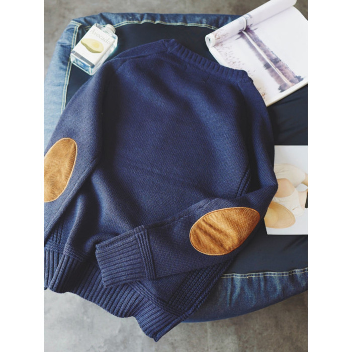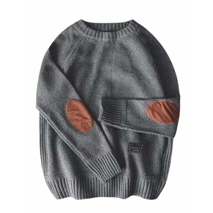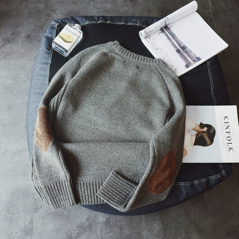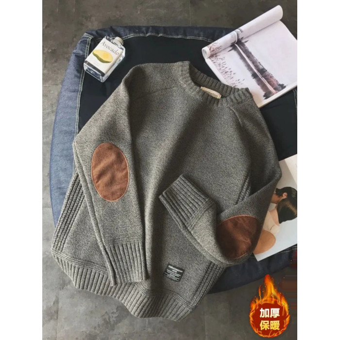 楹煦 補丁貼布毛衣男秋冬季厚款保暖大碼針織衫日系毛線衣外套潮