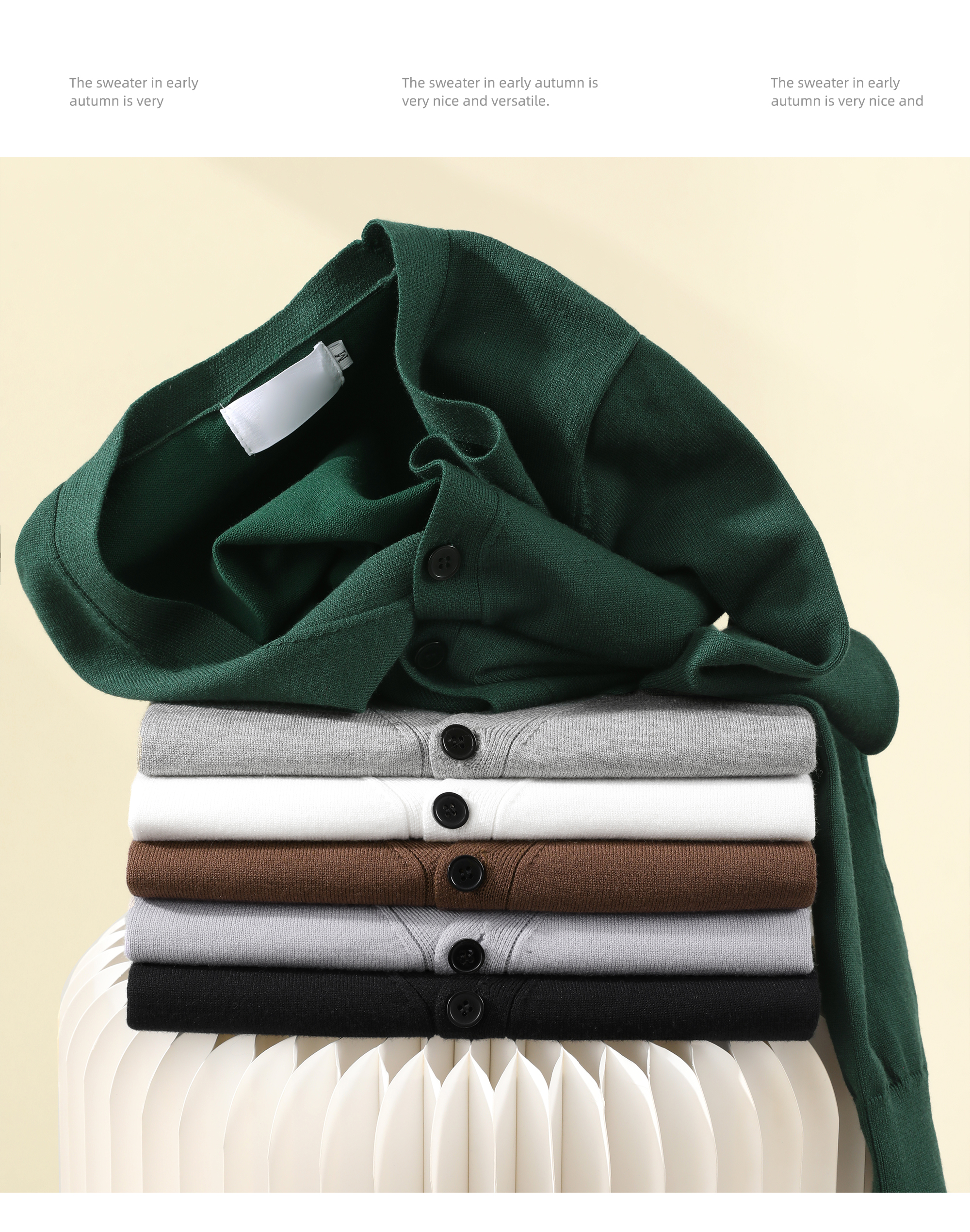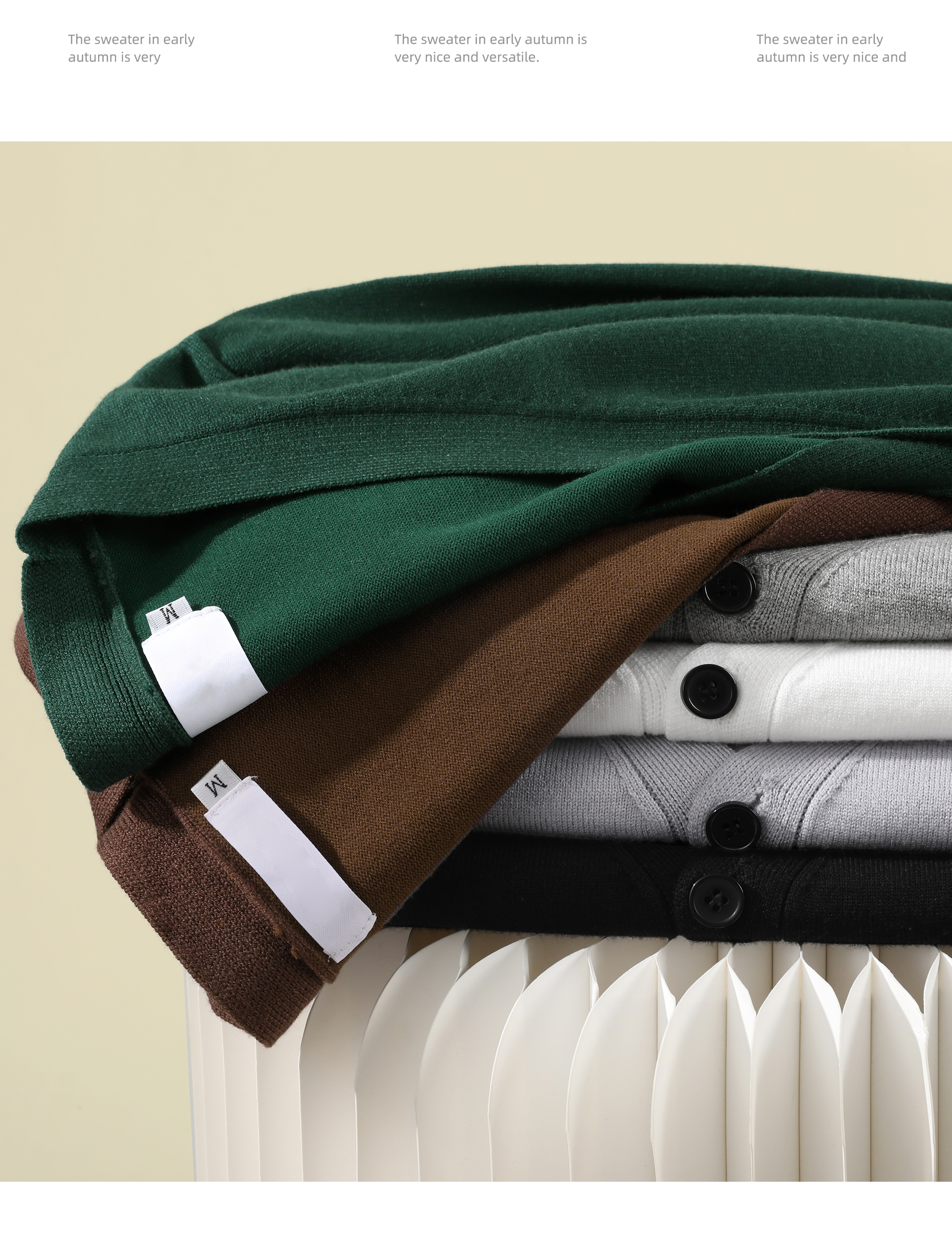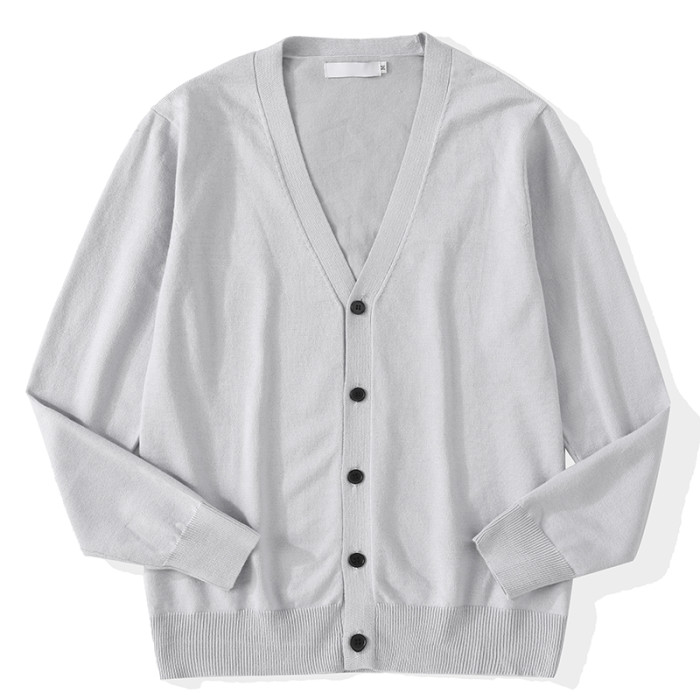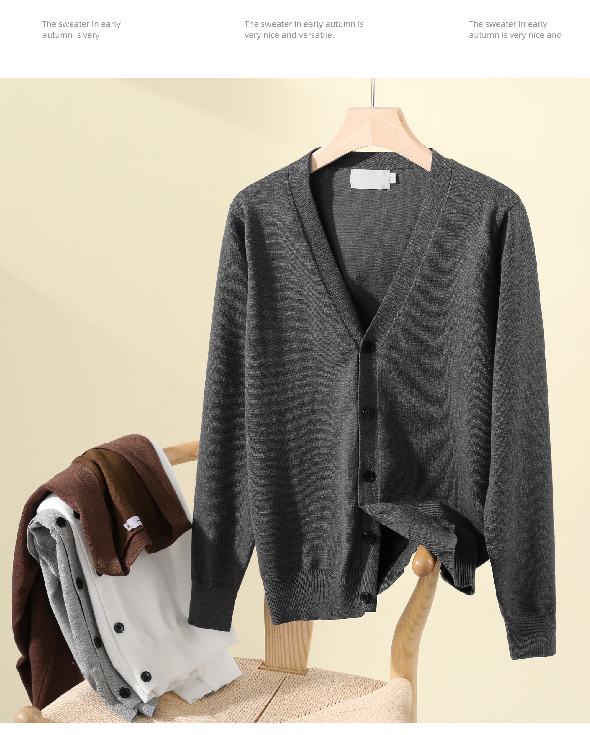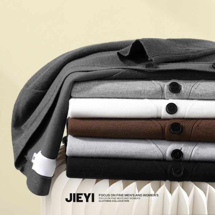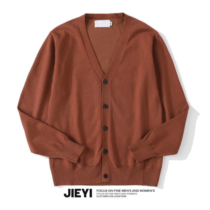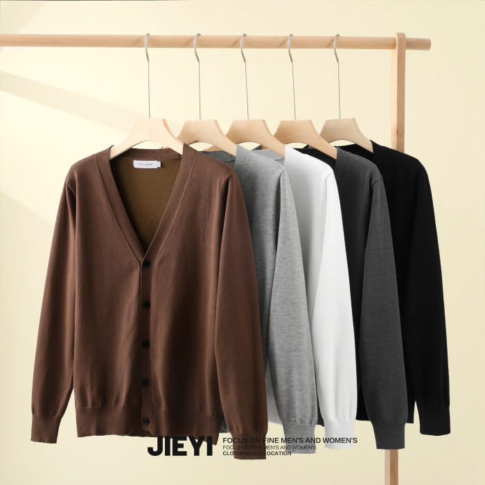 JIEYI 純色V領韓系復古針織開衫男士曡穿百搭淨版秋冬毛衣外套潮