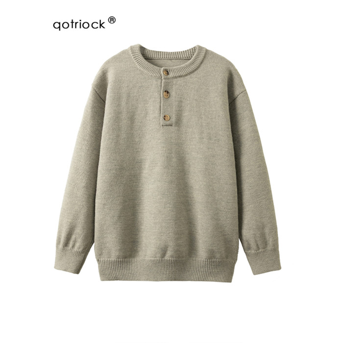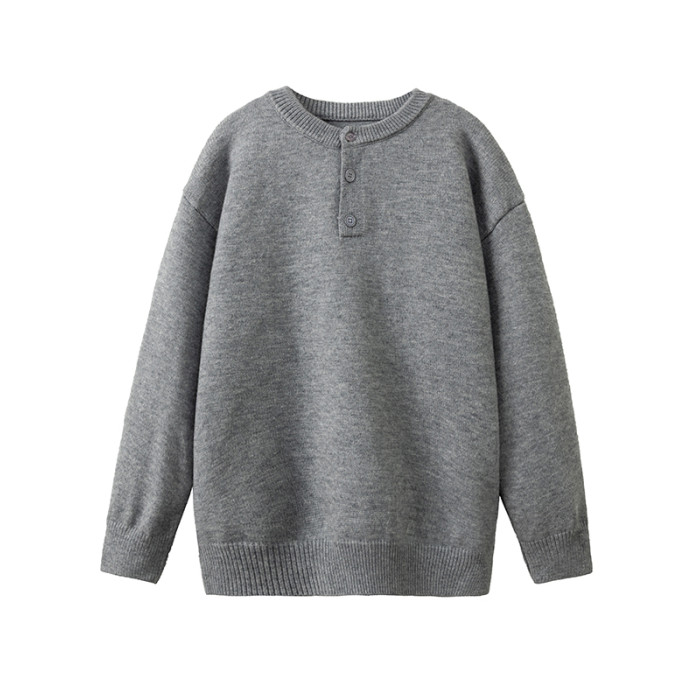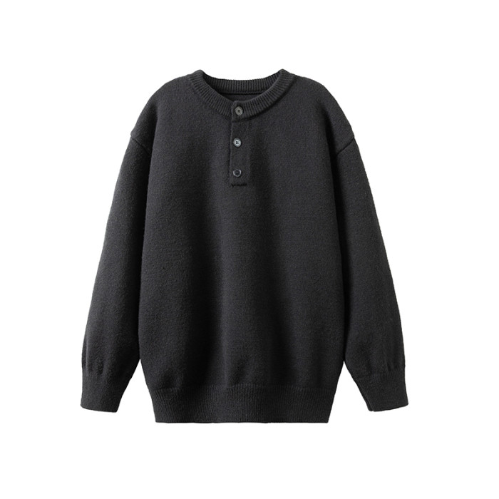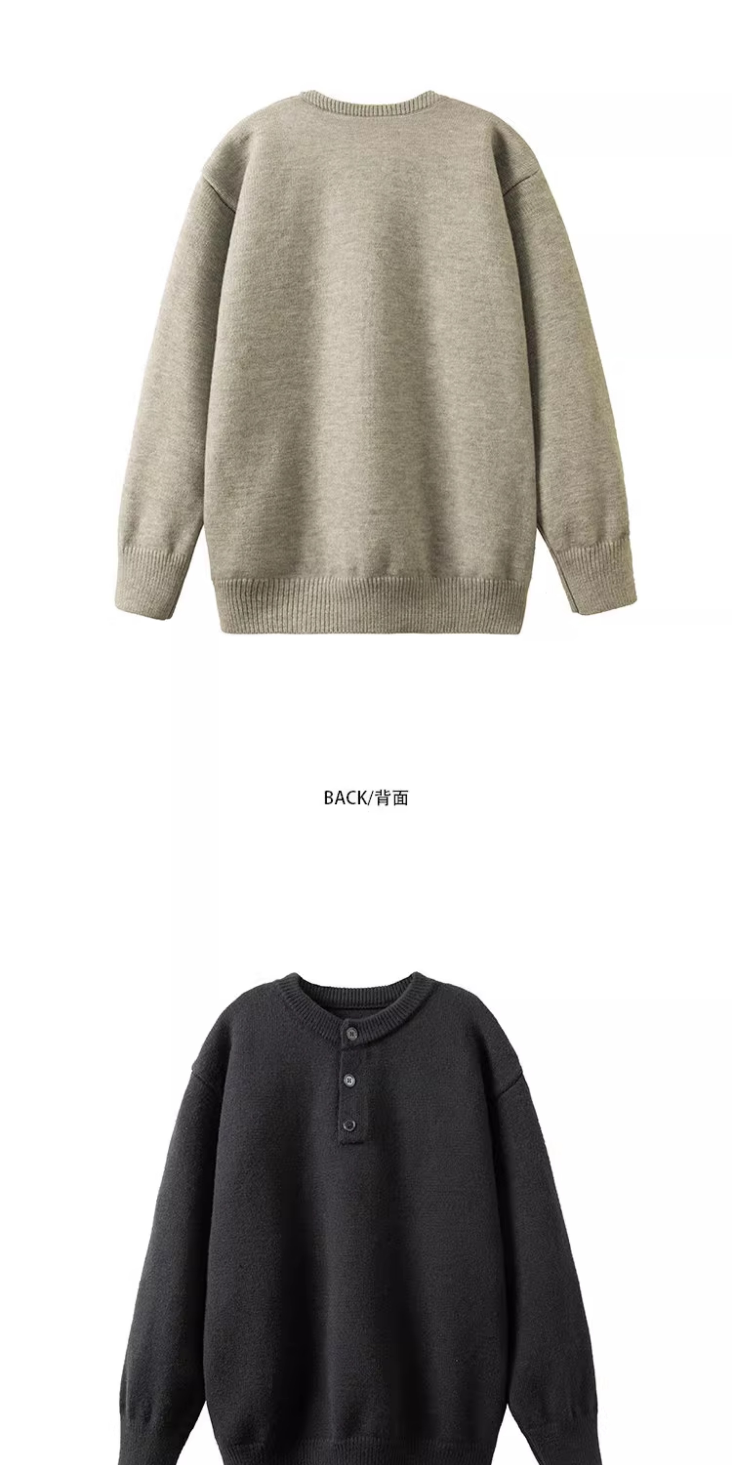 復古老錢風純色百搭針織衫毛衣男女秋冬慵懶感寬松休閒亨利領外套