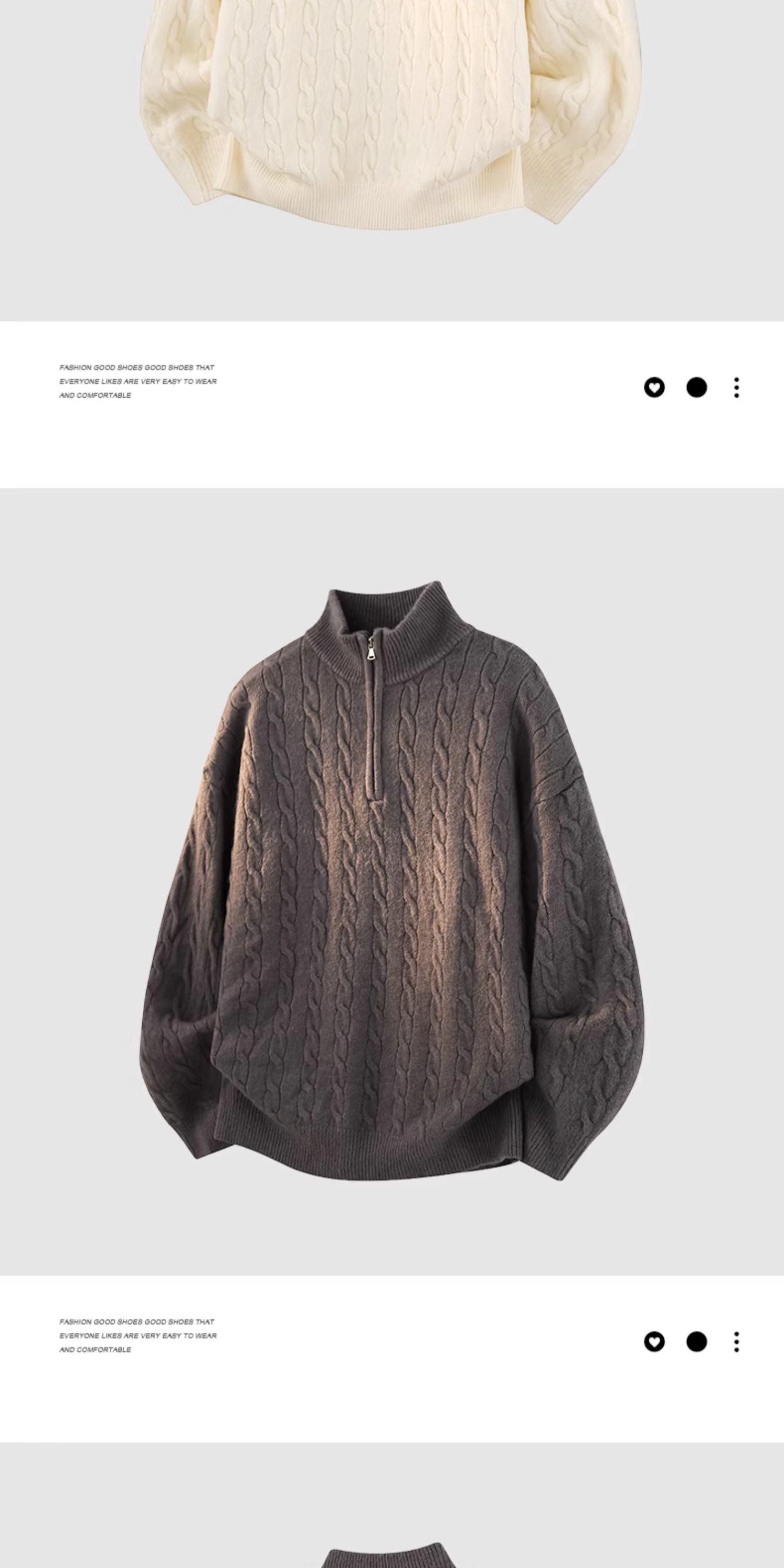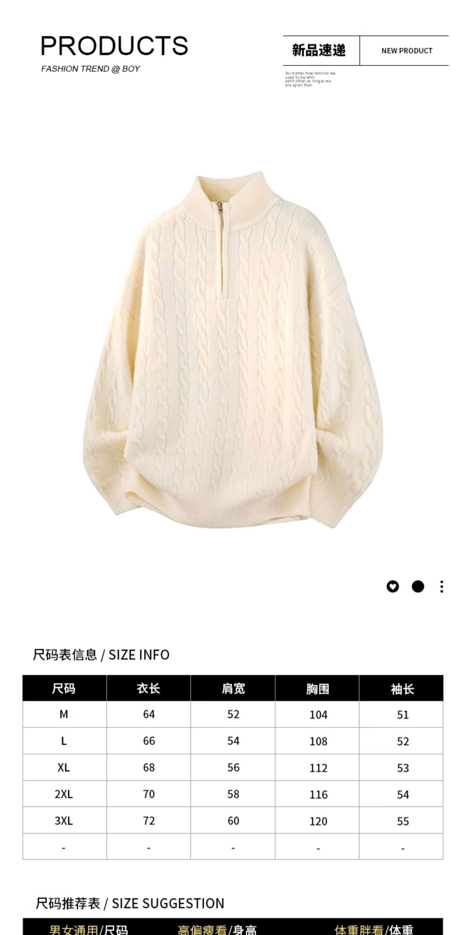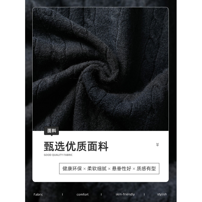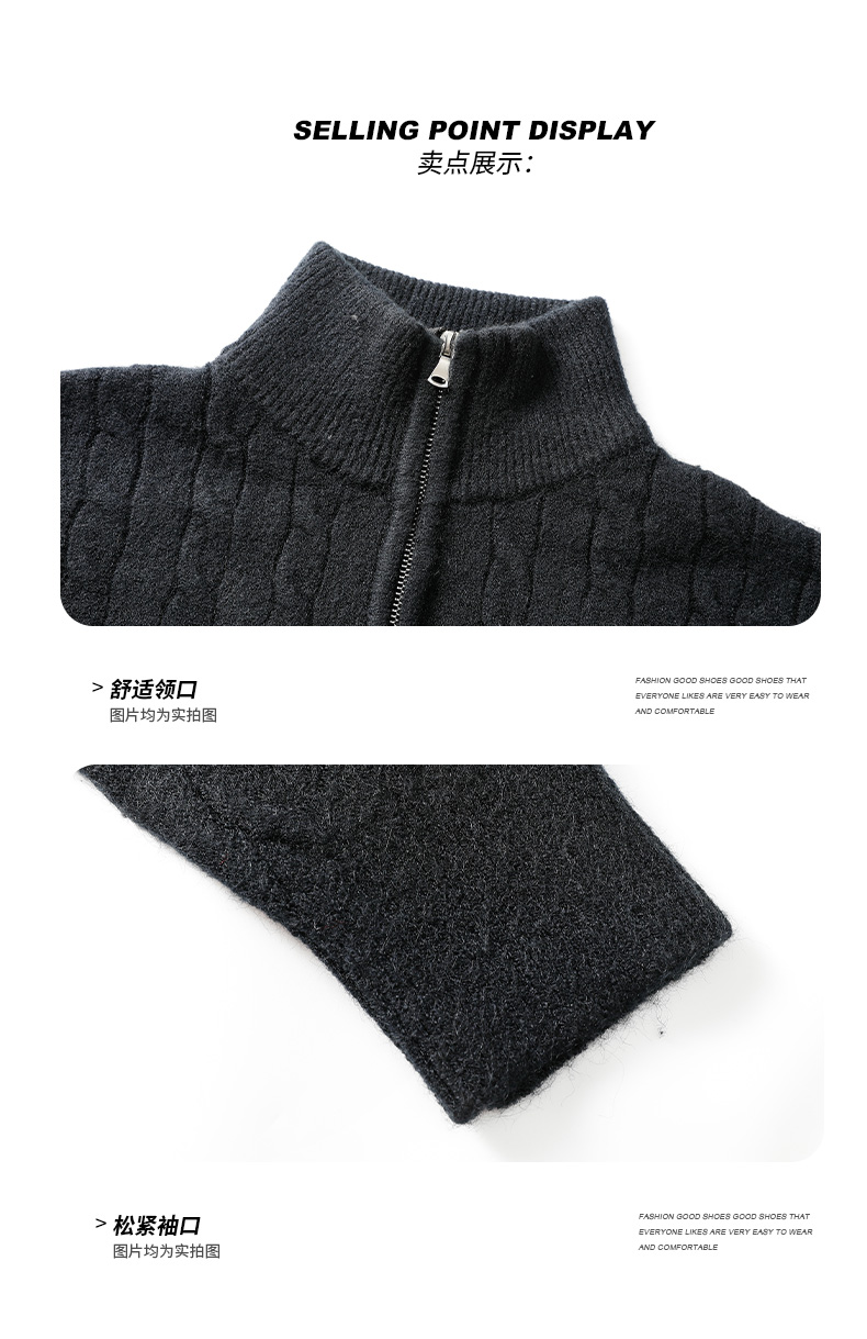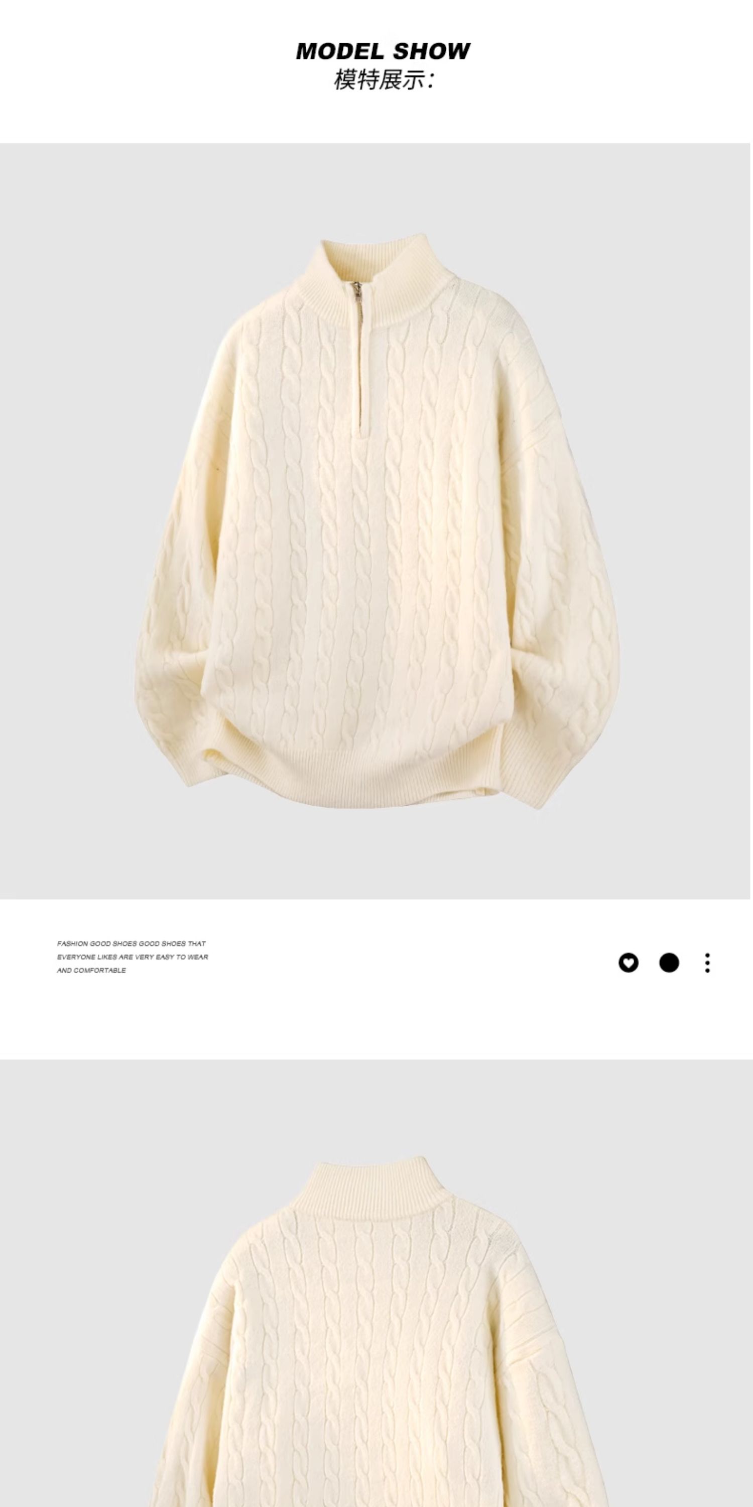 VUUG老錢風半高領麻花紋毛衣男秋冬季慵懶高級感休閒半拉鍊針織衫