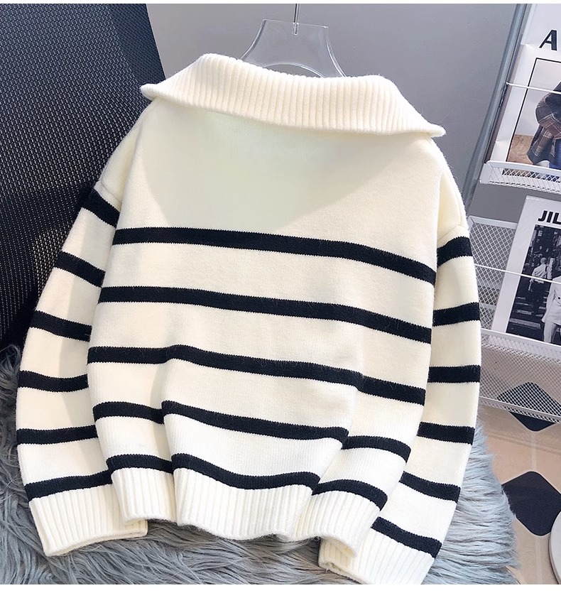 學生女士毛衣女春秋加厚內搭2025新款條紋打底衫短款寬松外穿高級