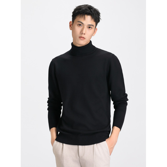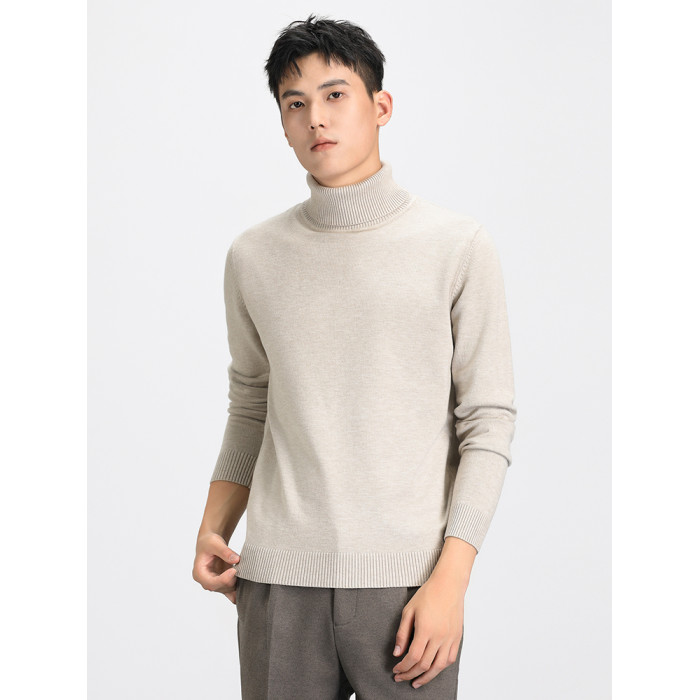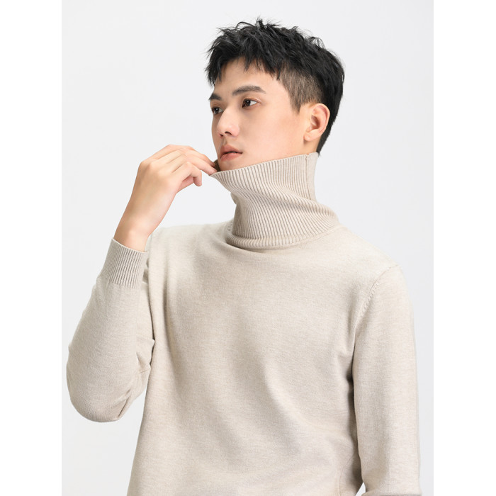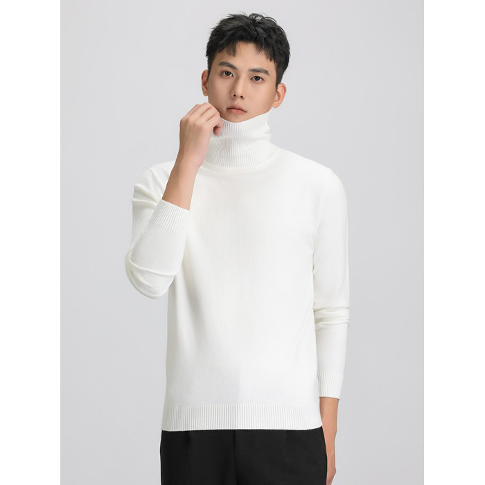 秋冬季高領毛衣男寬松百搭加絨加厚毛衫男士白色打底衫翻領針織衫