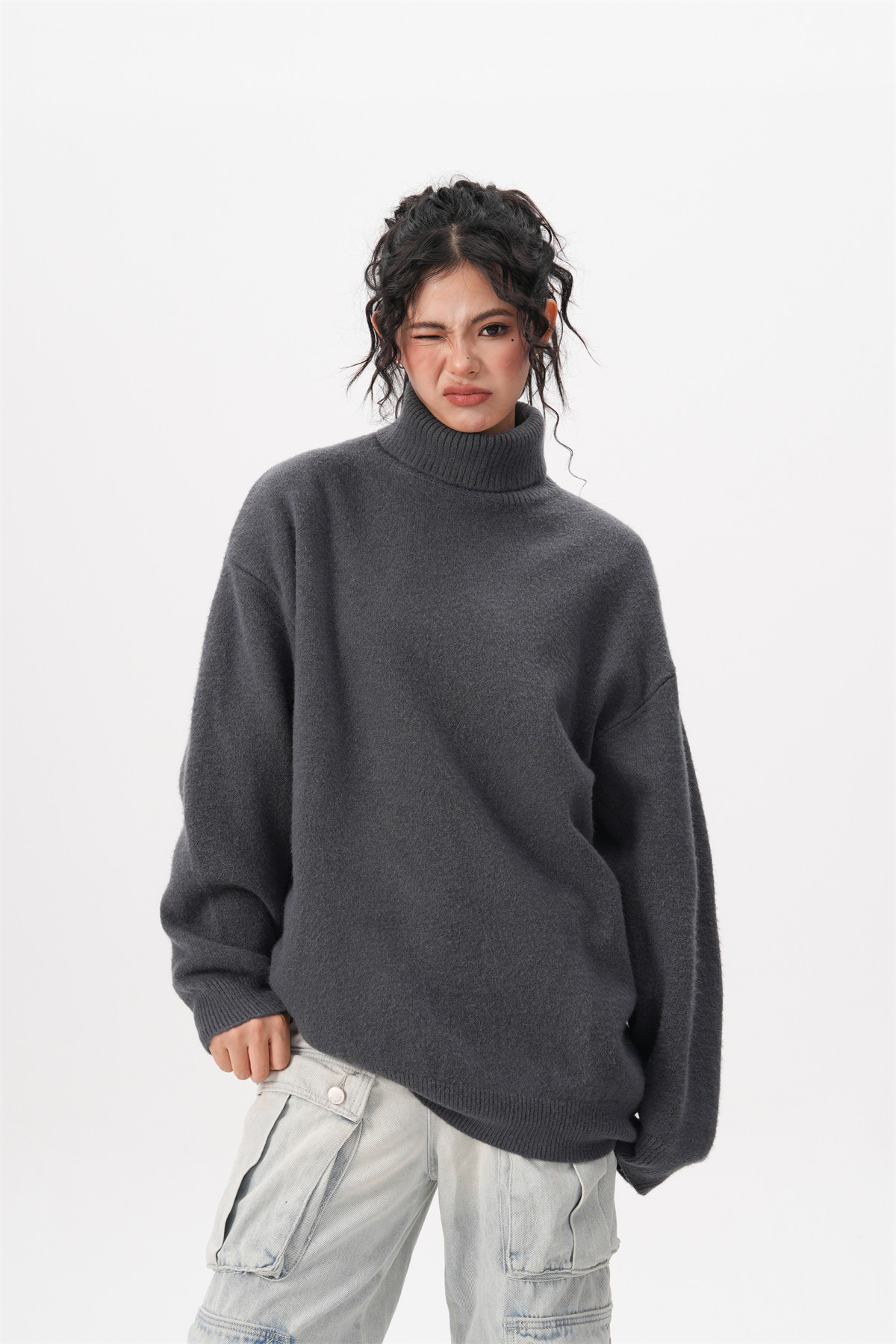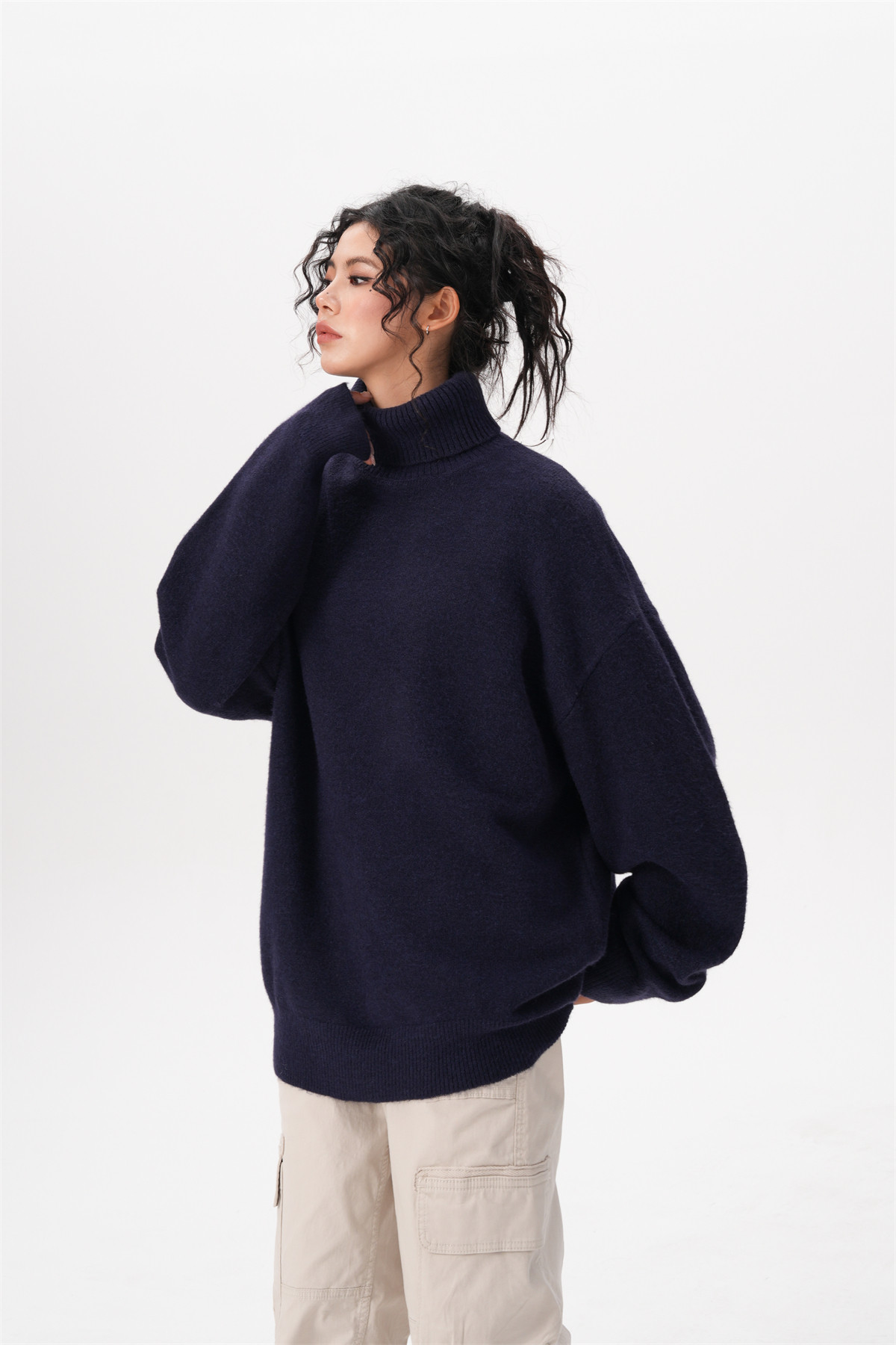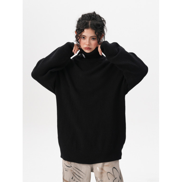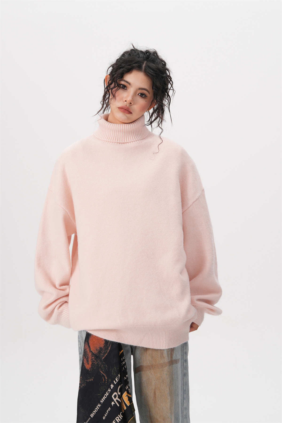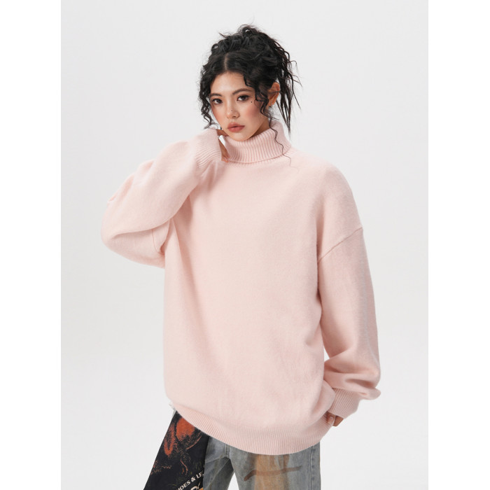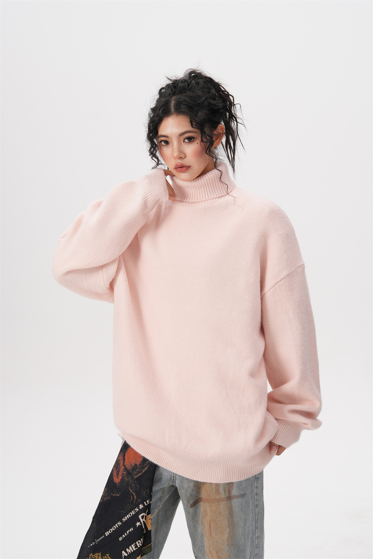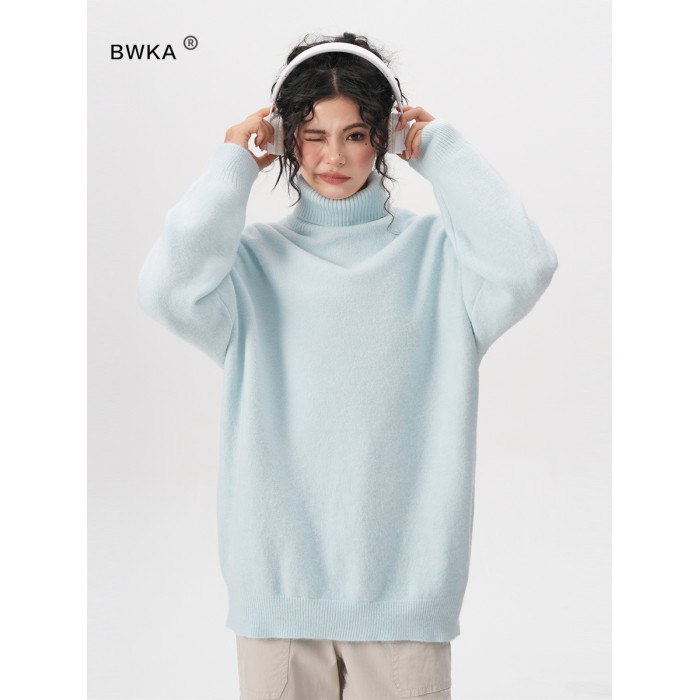 BWKA多巴胺高領毛衣女男秋冬寬鬆純色基礎百搭線衣重磅加厚針織衫