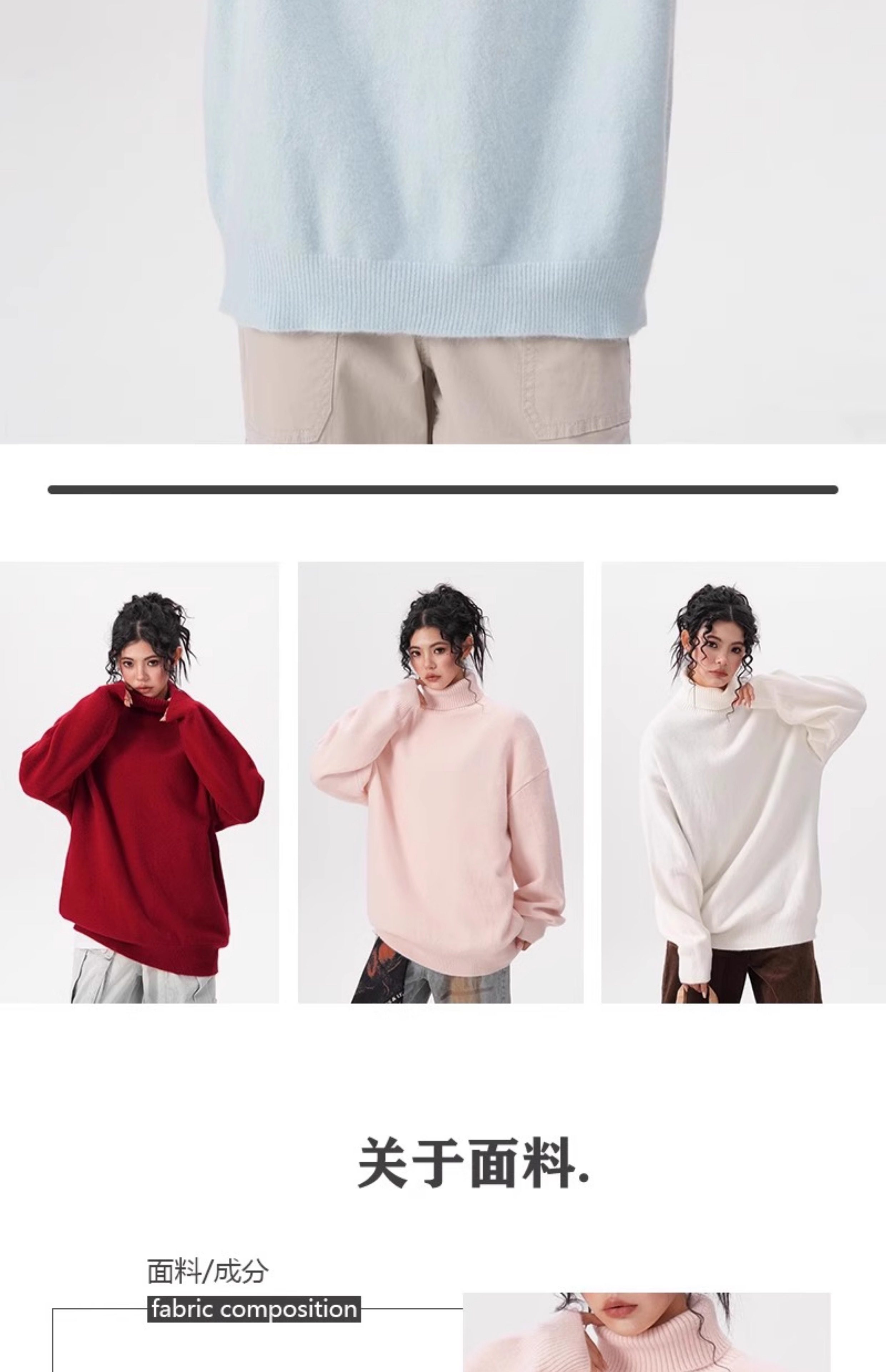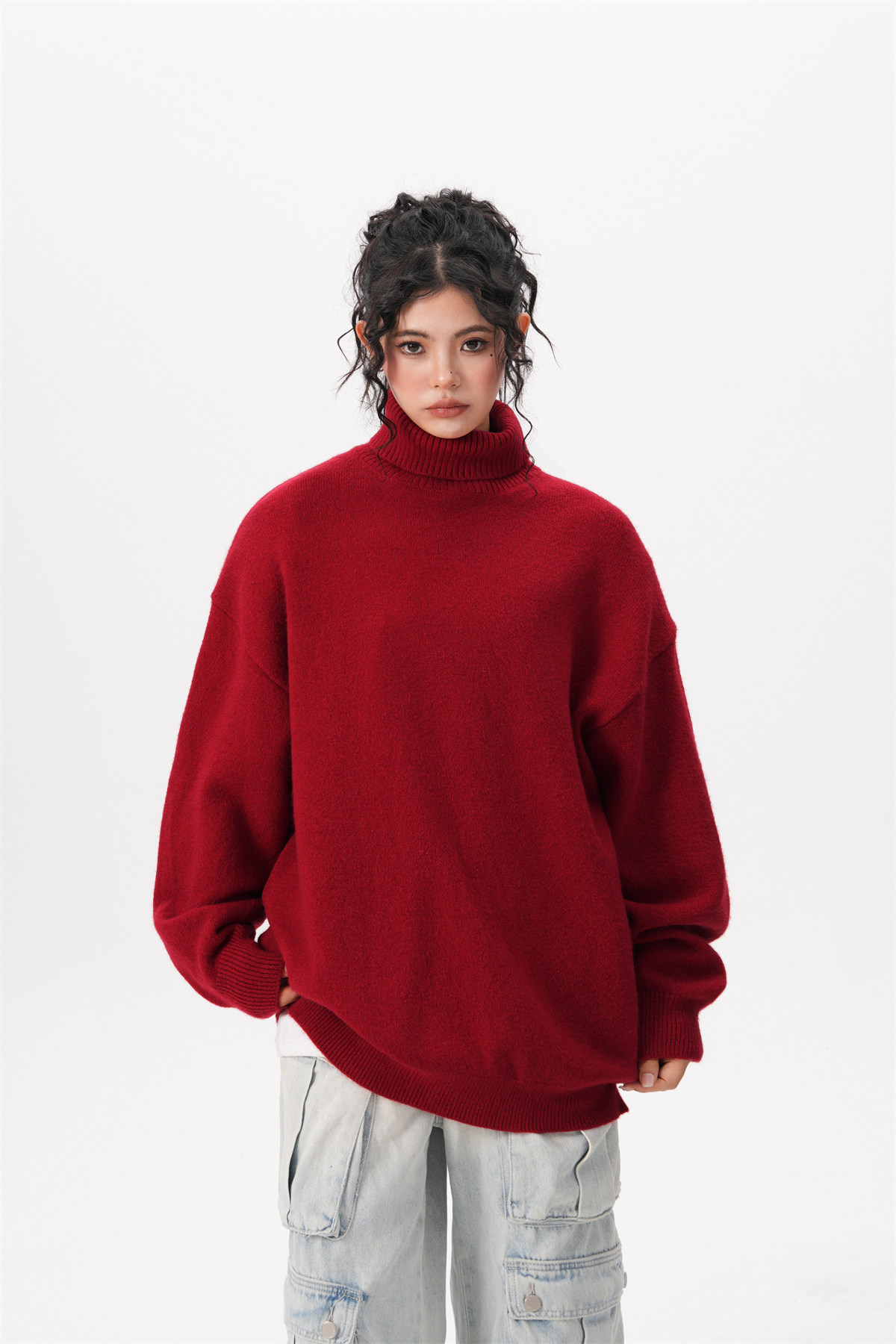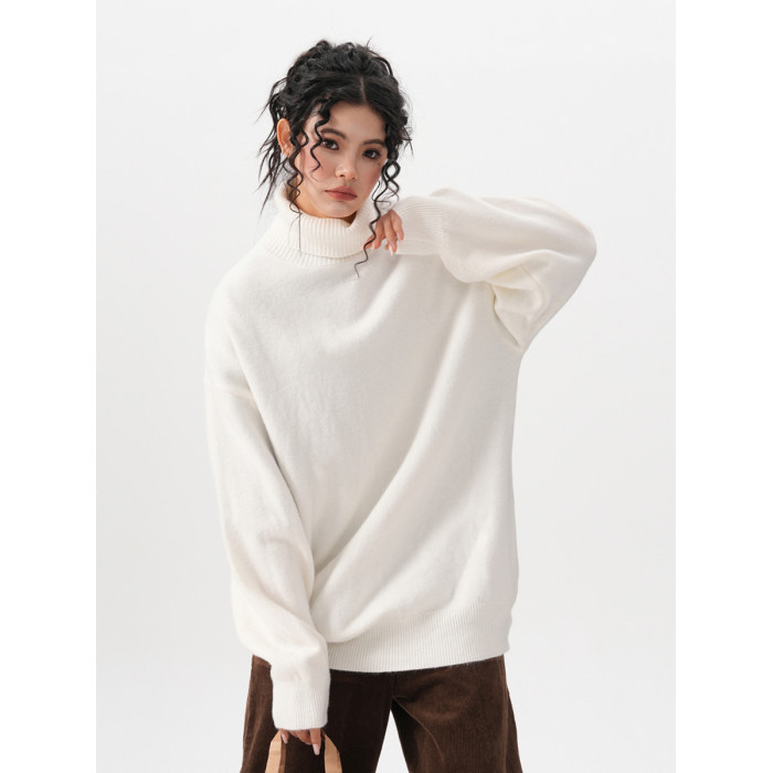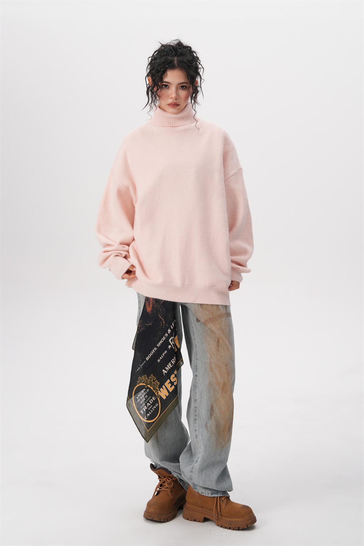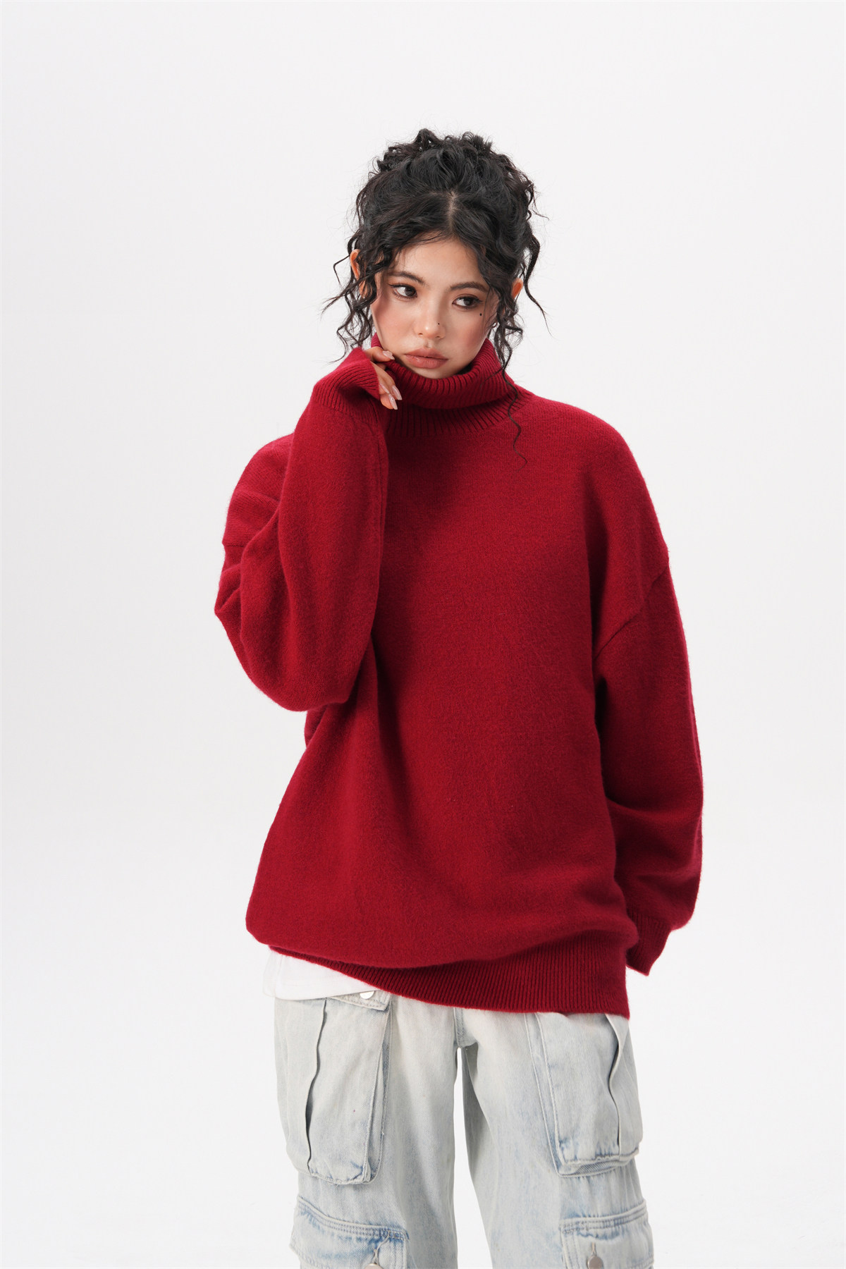 BWKA多巴胺高領毛衣女男秋冬寬鬆純色基礎百搭線衣重磅加厚針織衫