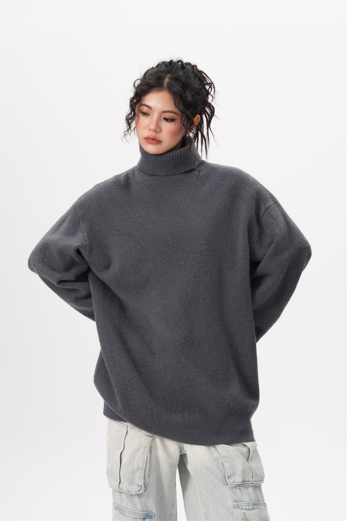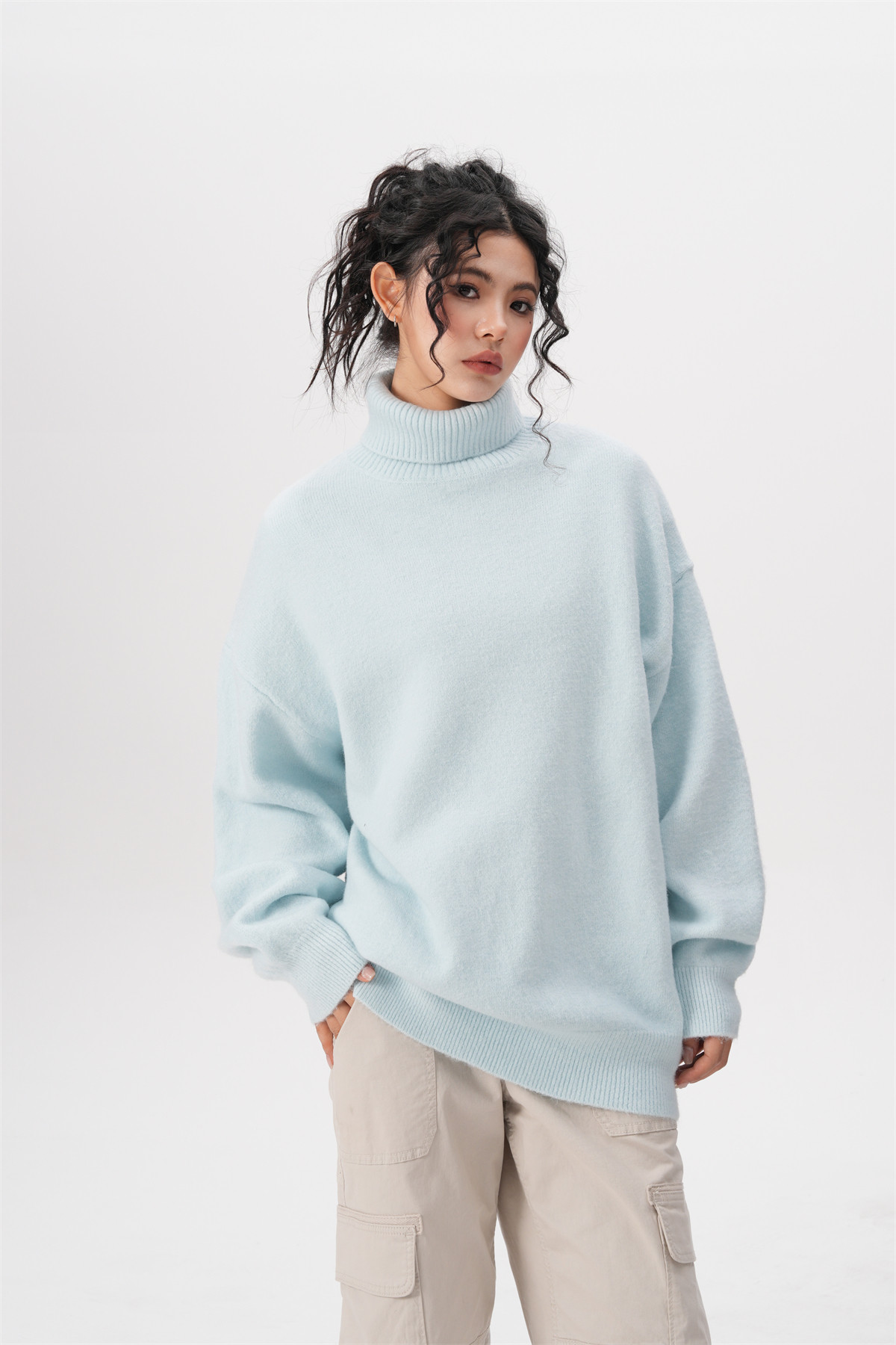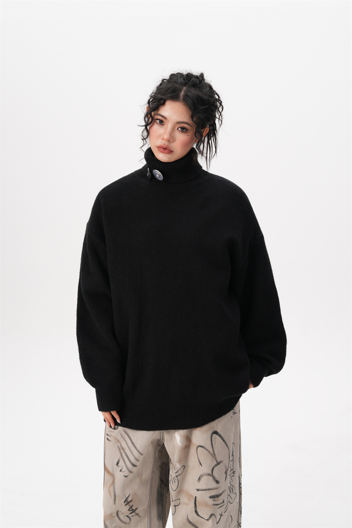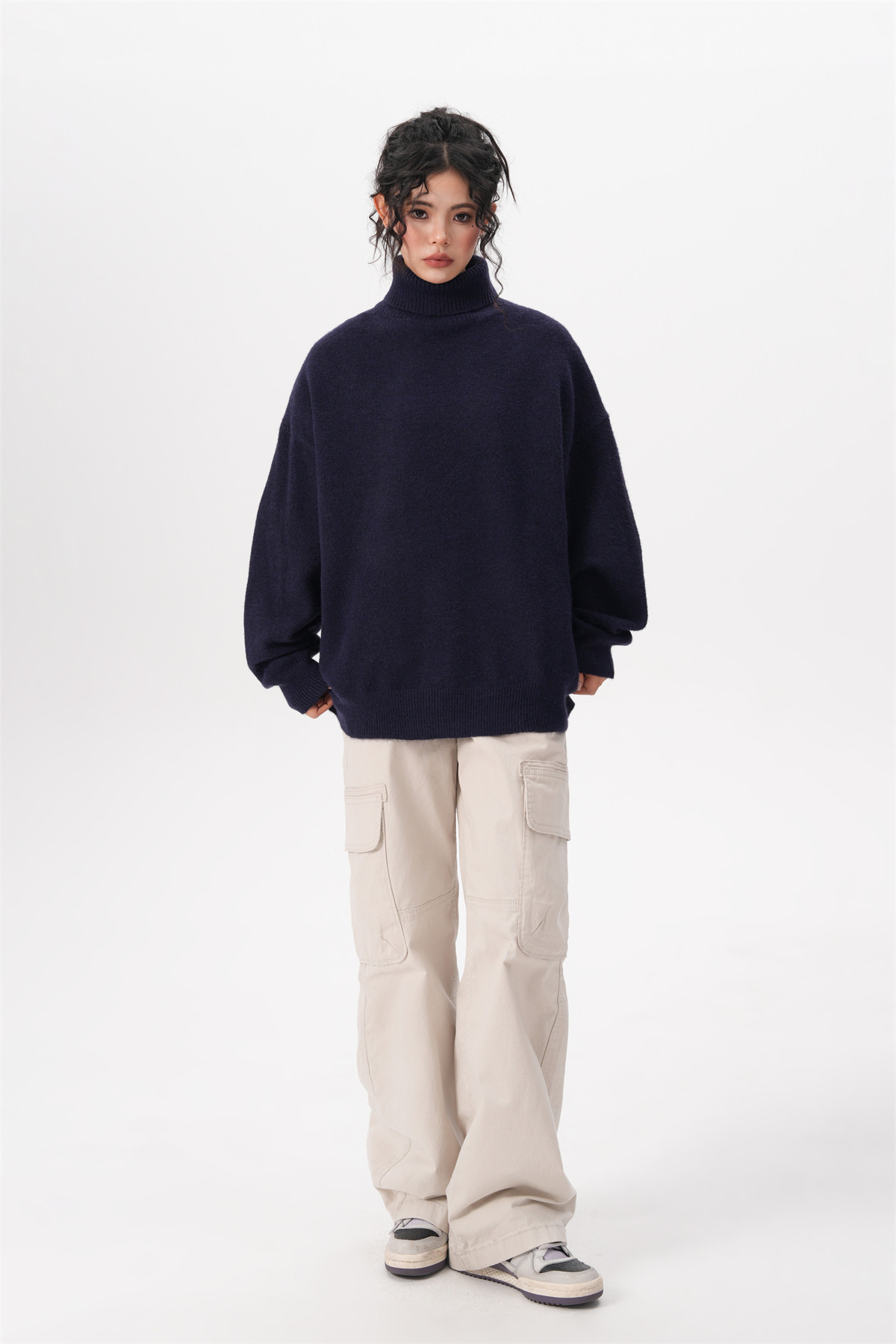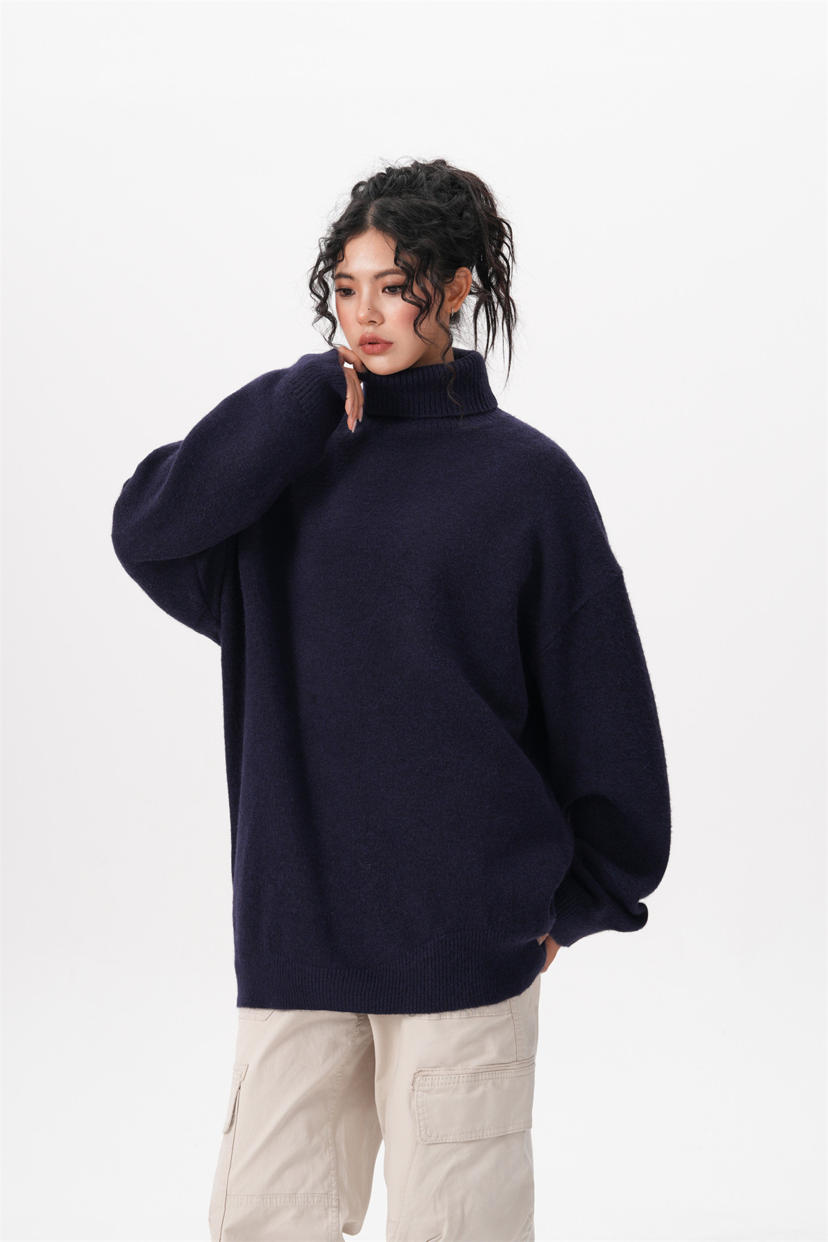 BWKA多巴胺高領毛衣女男秋冬寬鬆純色基礎百搭線衣重磅加厚針織衫