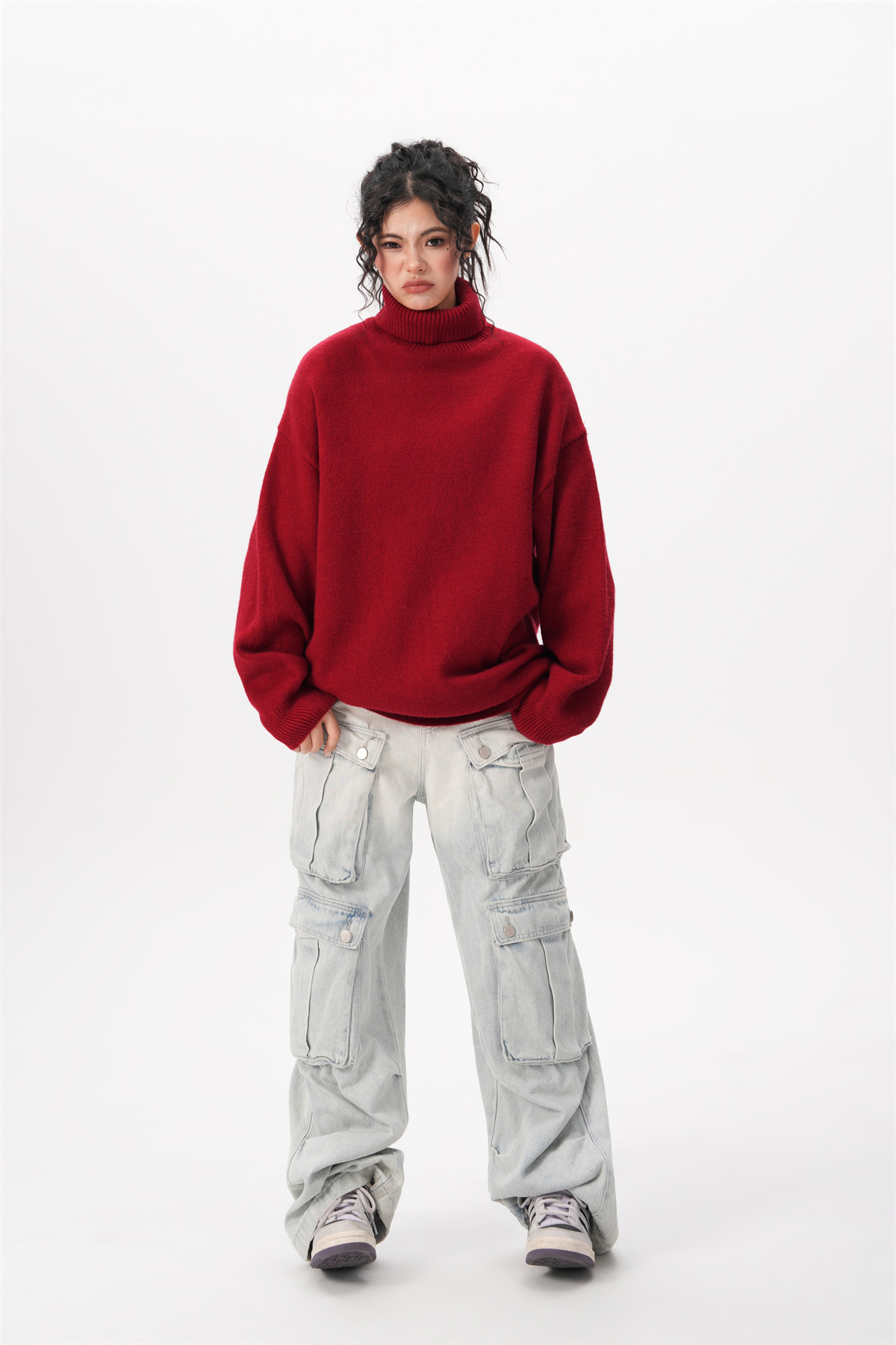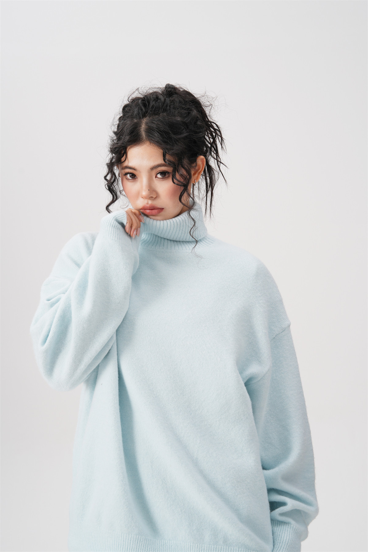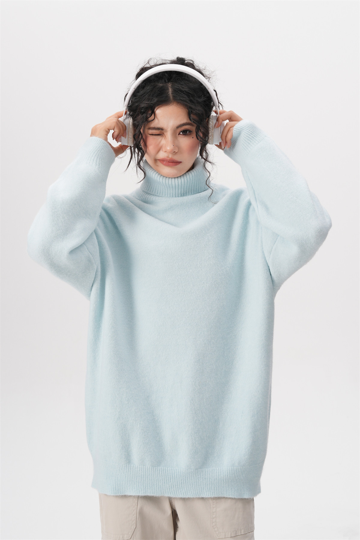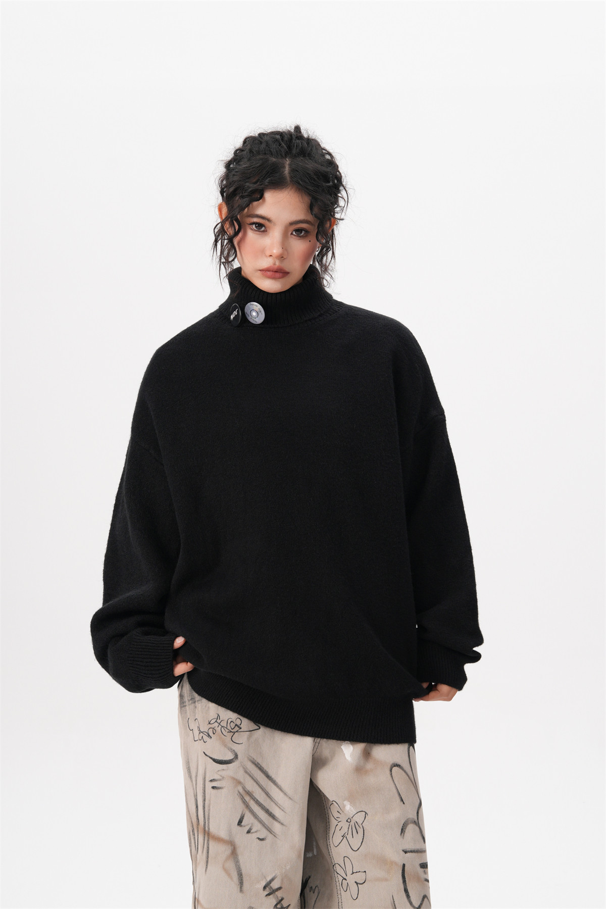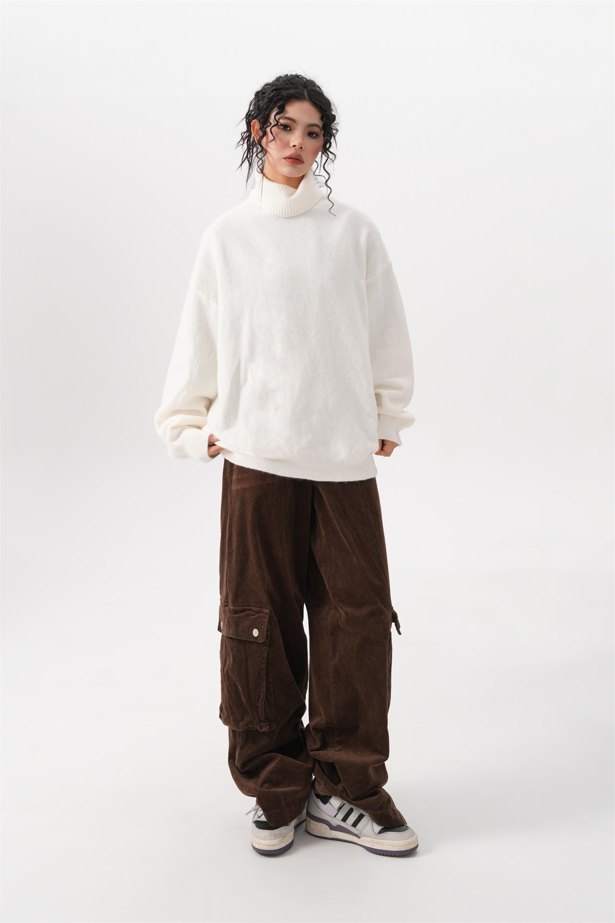 BWKA多巴胺高領毛衣女男秋冬寬鬆純色基礎百搭線衣重磅加厚針織衫