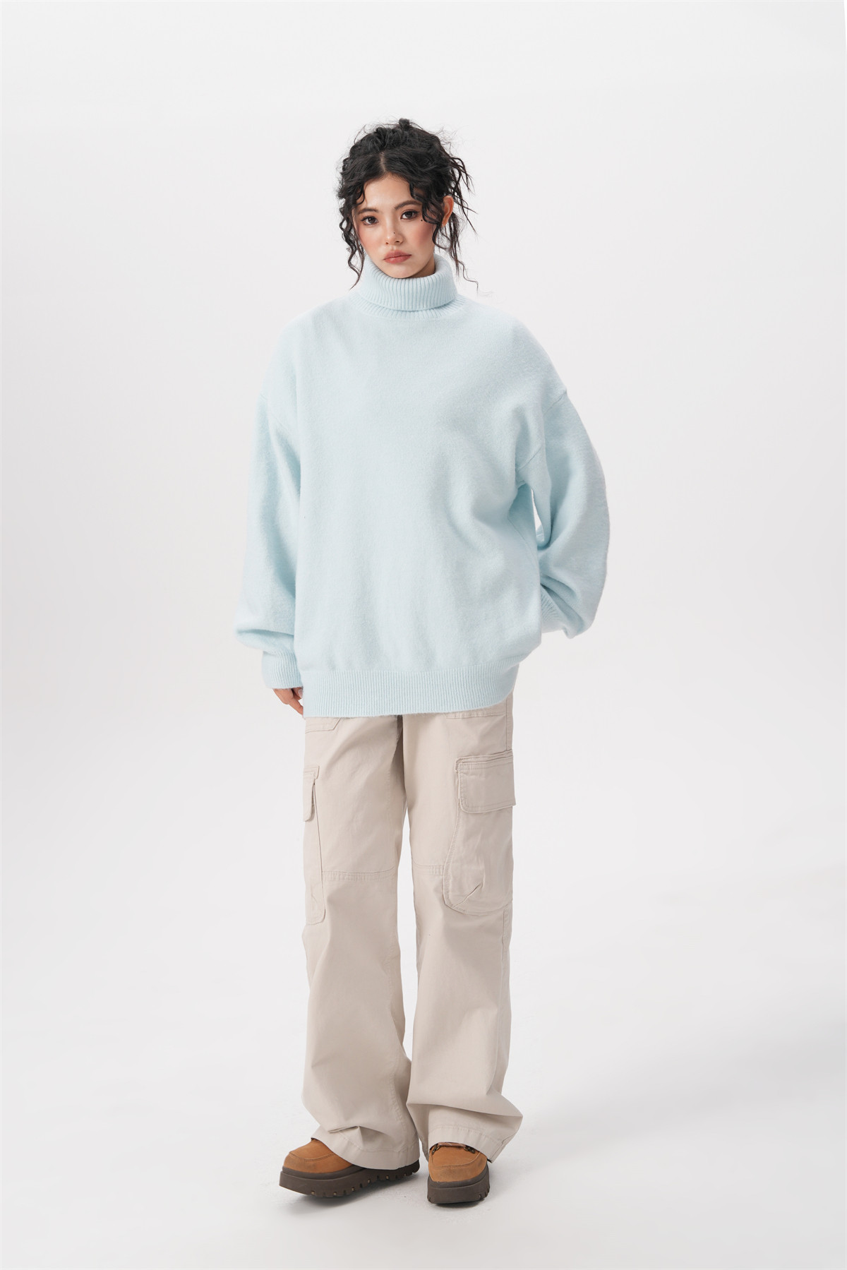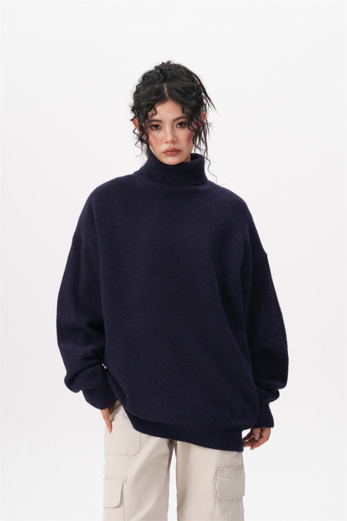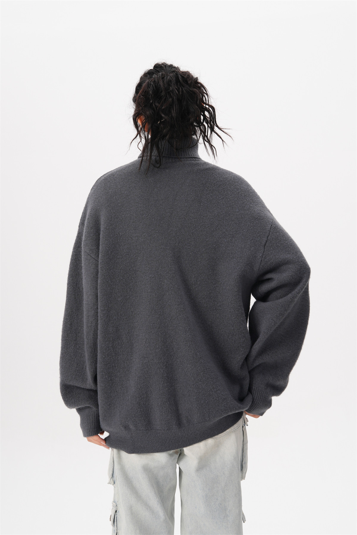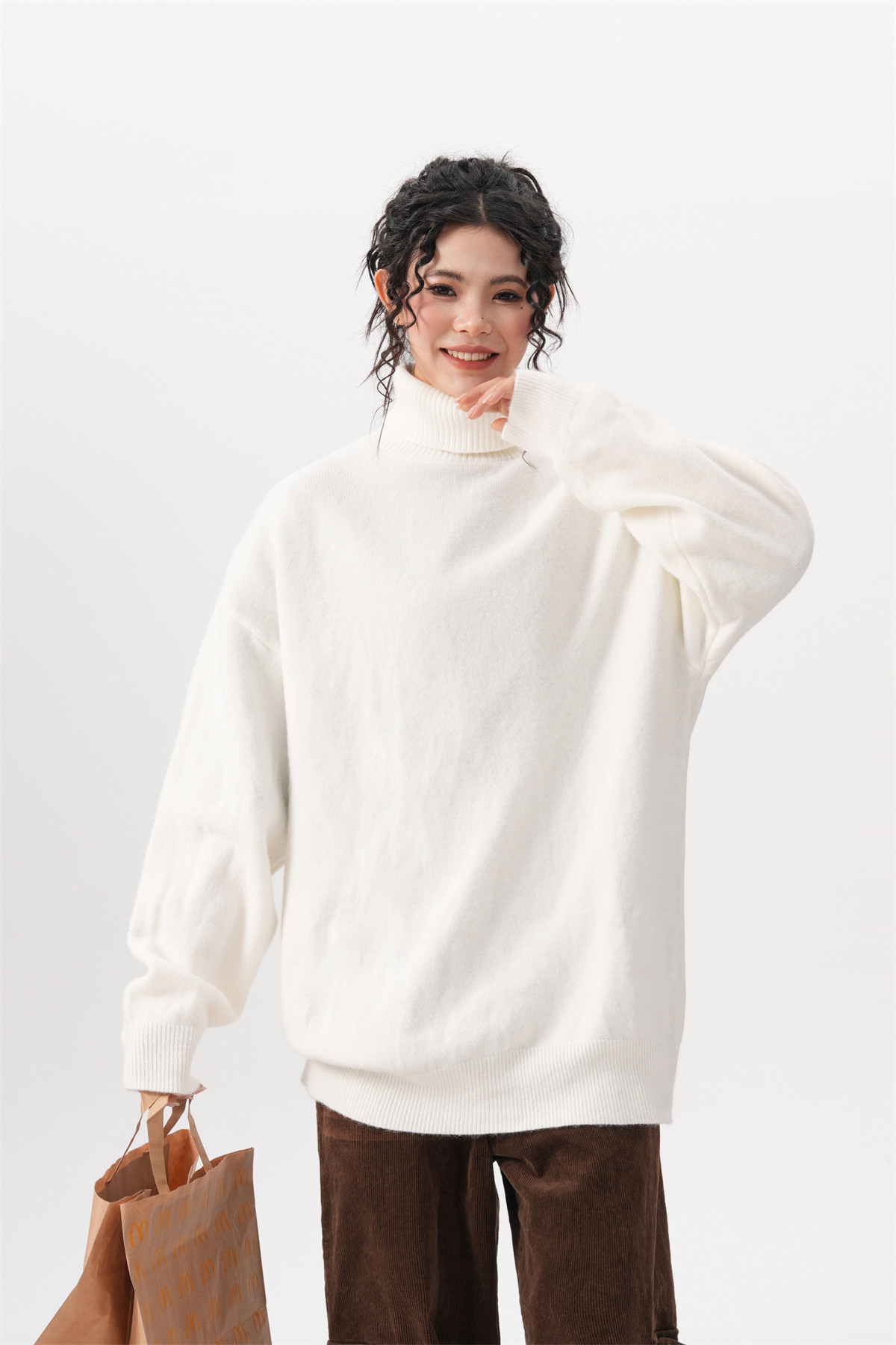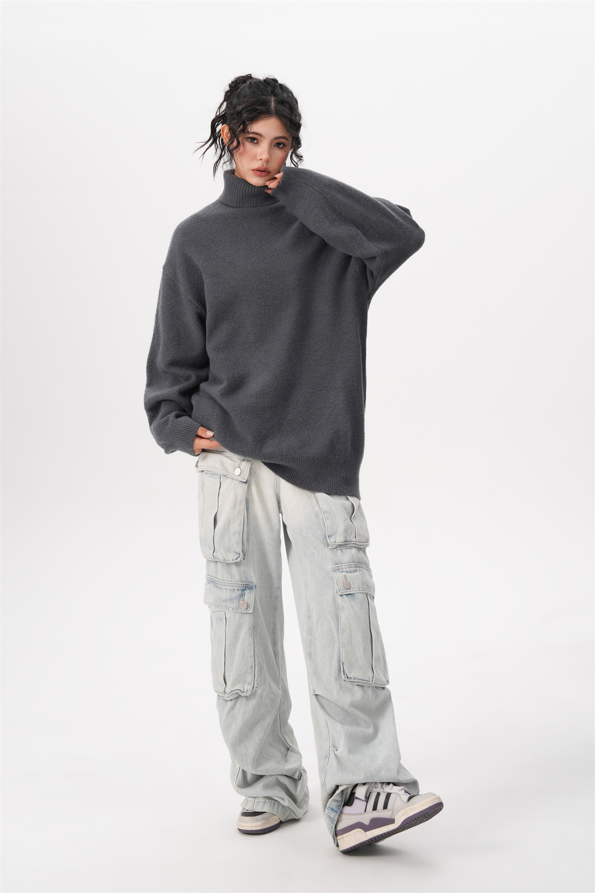 BWKA多巴胺高領毛衣女男秋冬寬鬆純色基礎百搭線衣重磅加厚針織衫