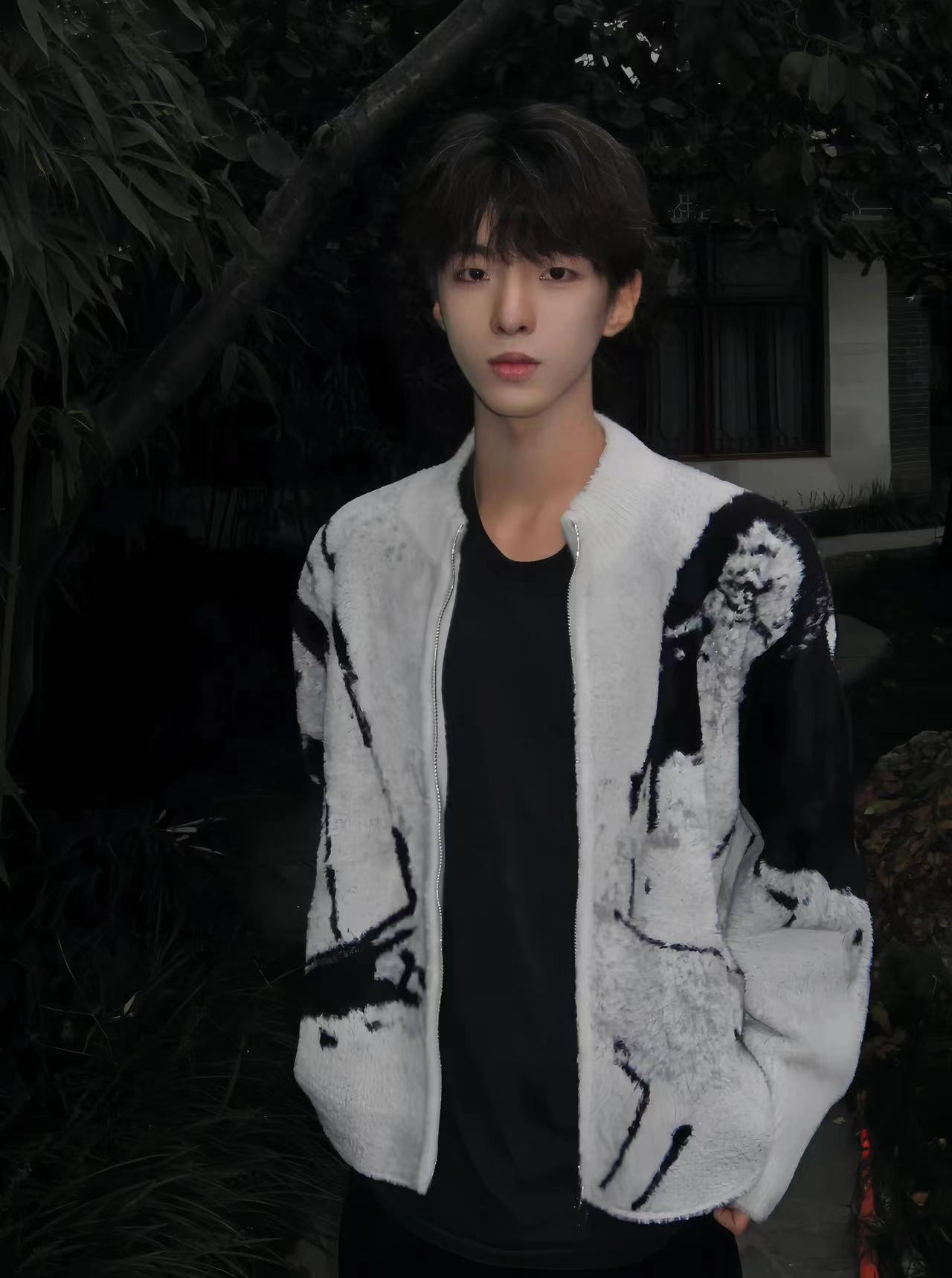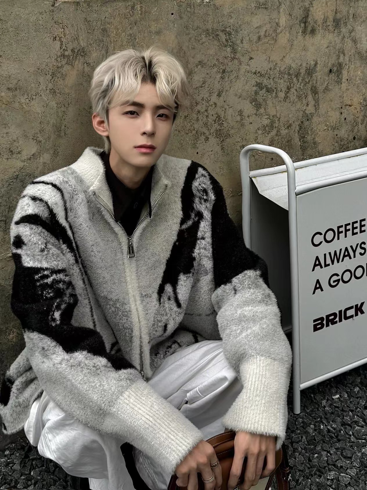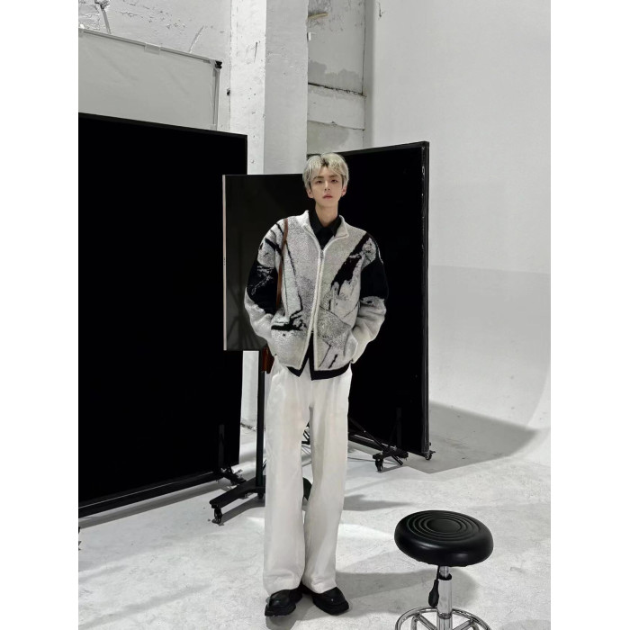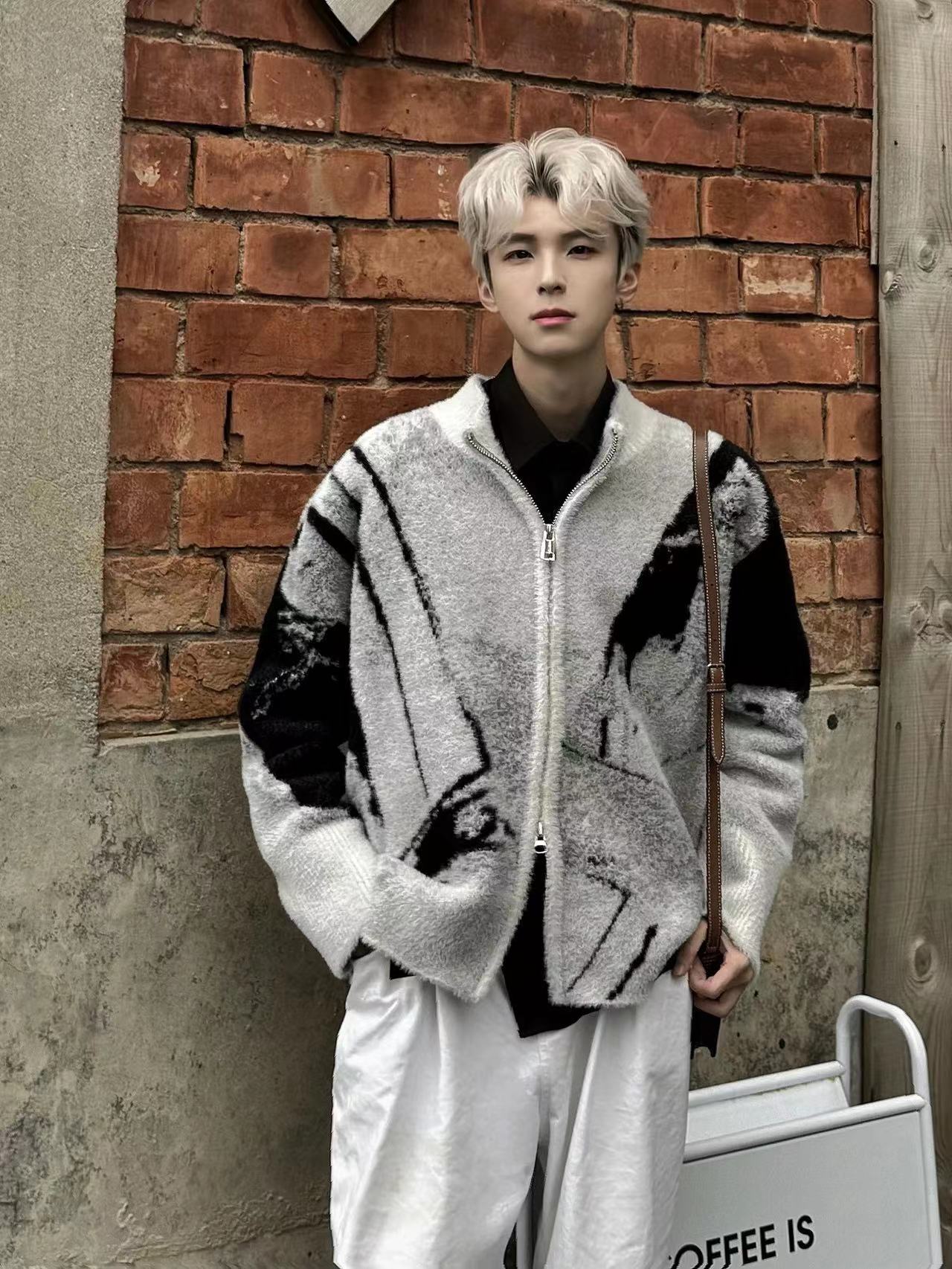 高級感荊棘刺綉漸變毛衣開衫外套秋冬男vintage慵懶風拉鍊針織衫