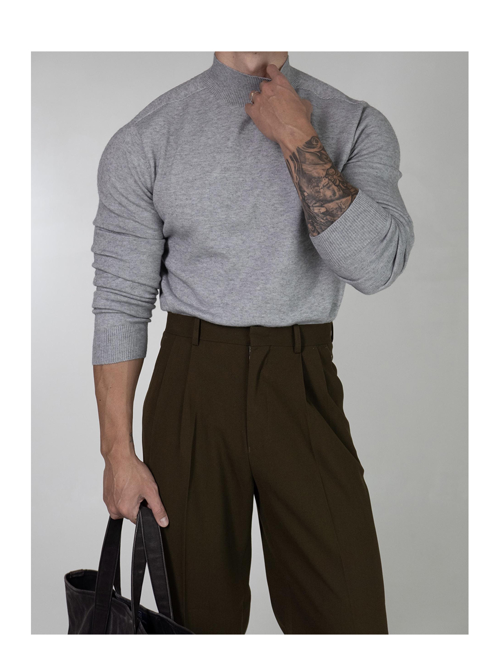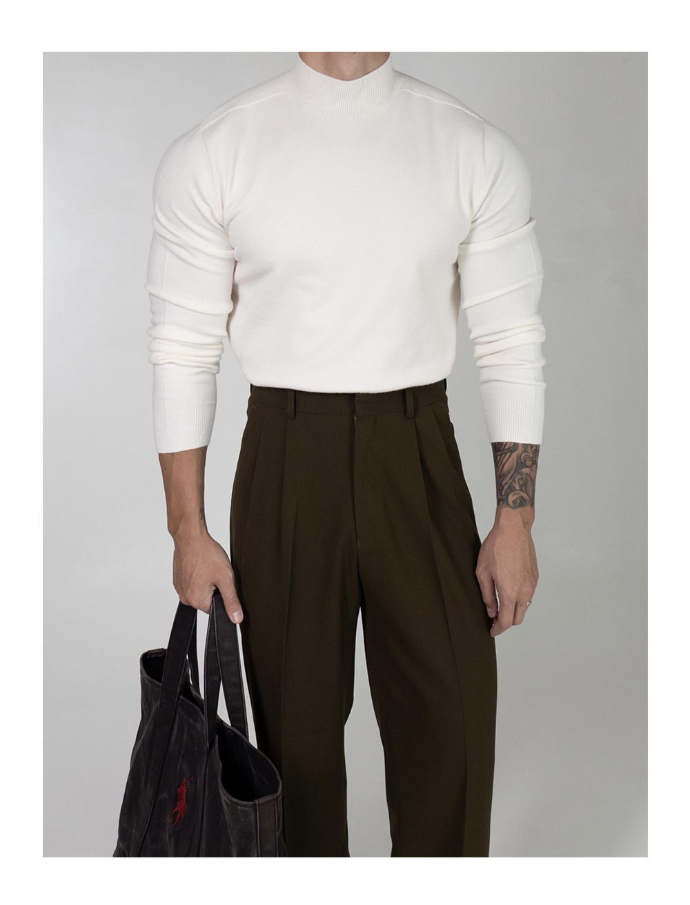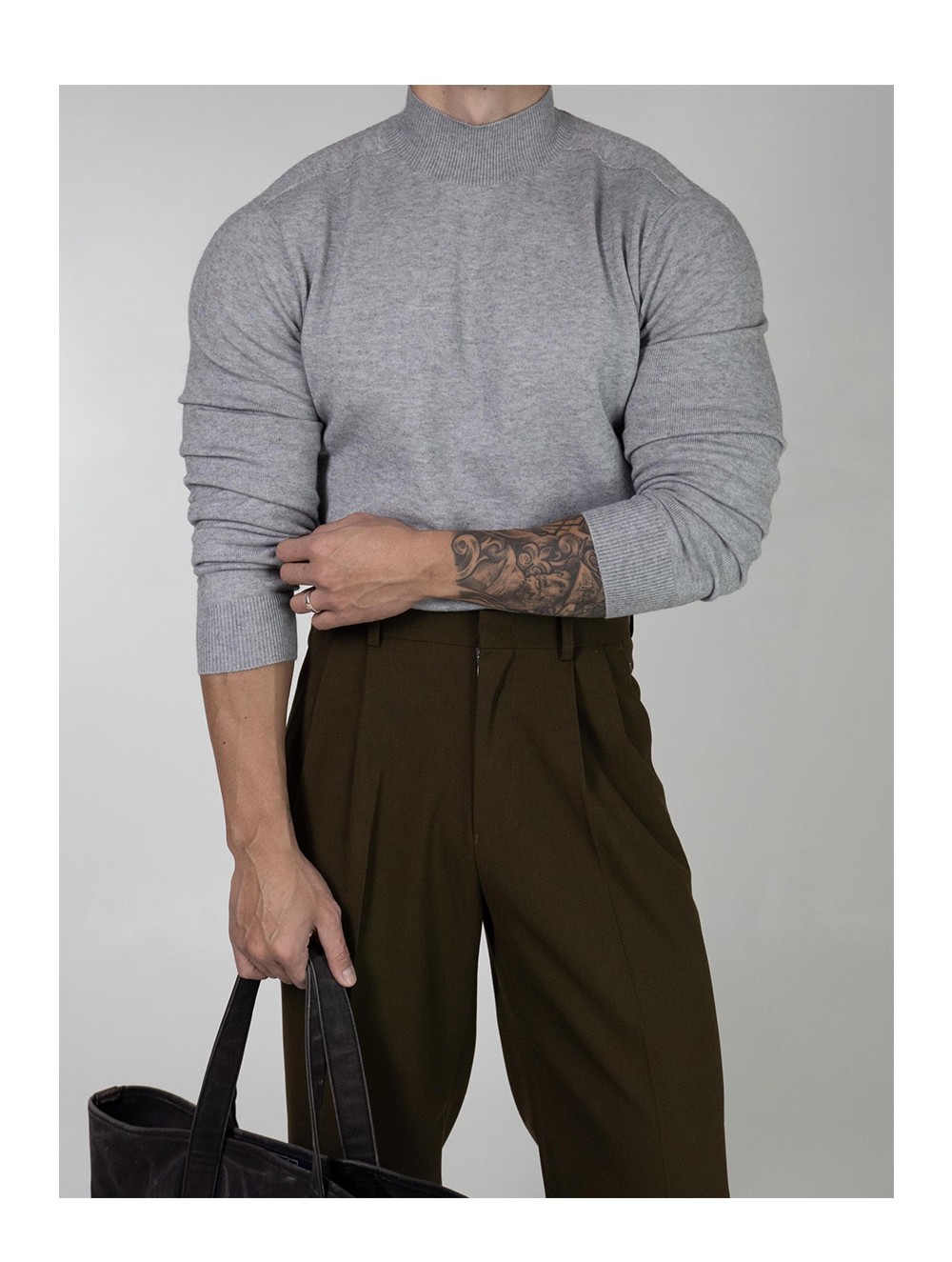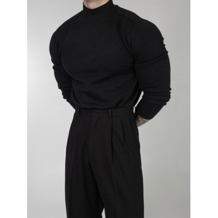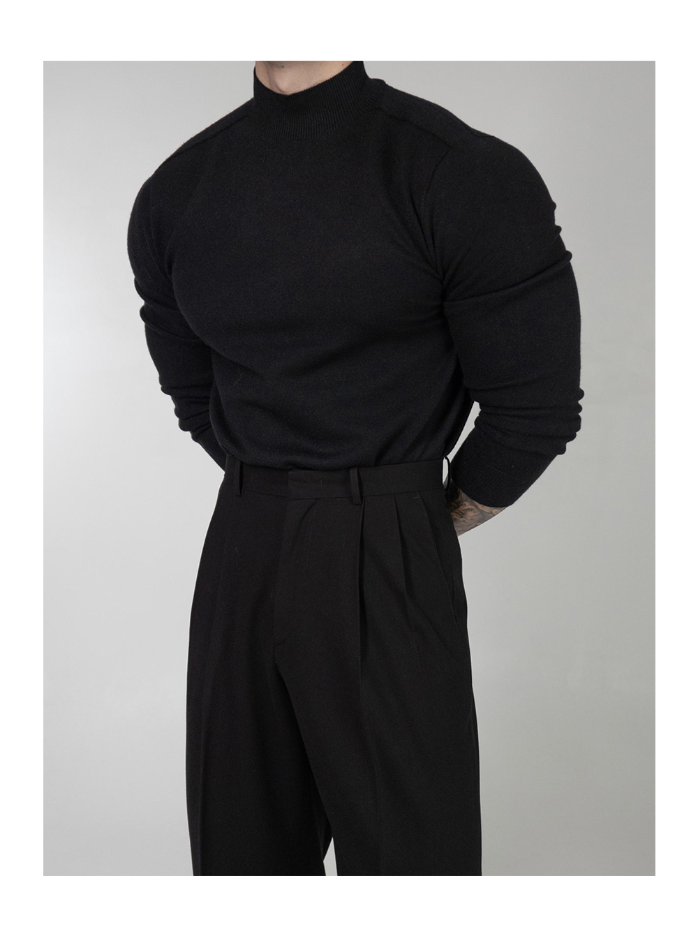 半高領針織衫男春秋款港風復古chic毛衣休閒套頭毛線衣長袖打底衫