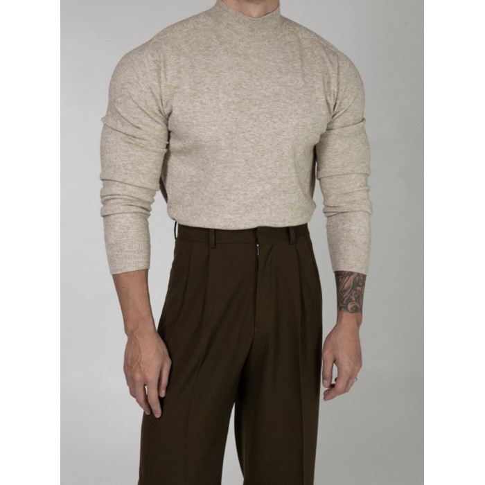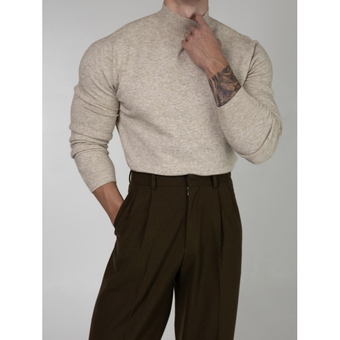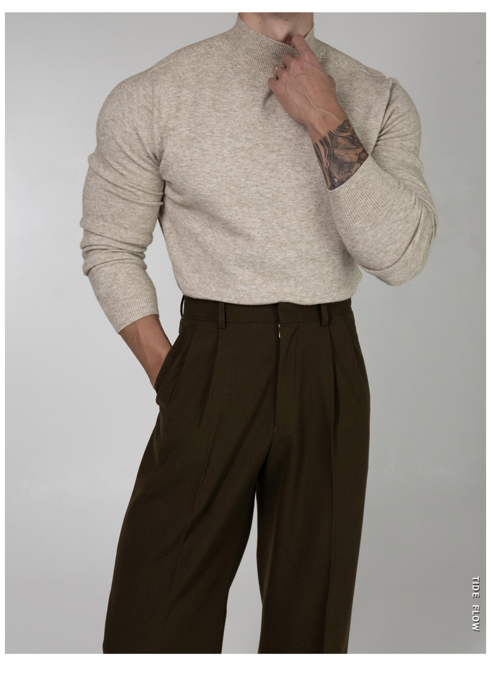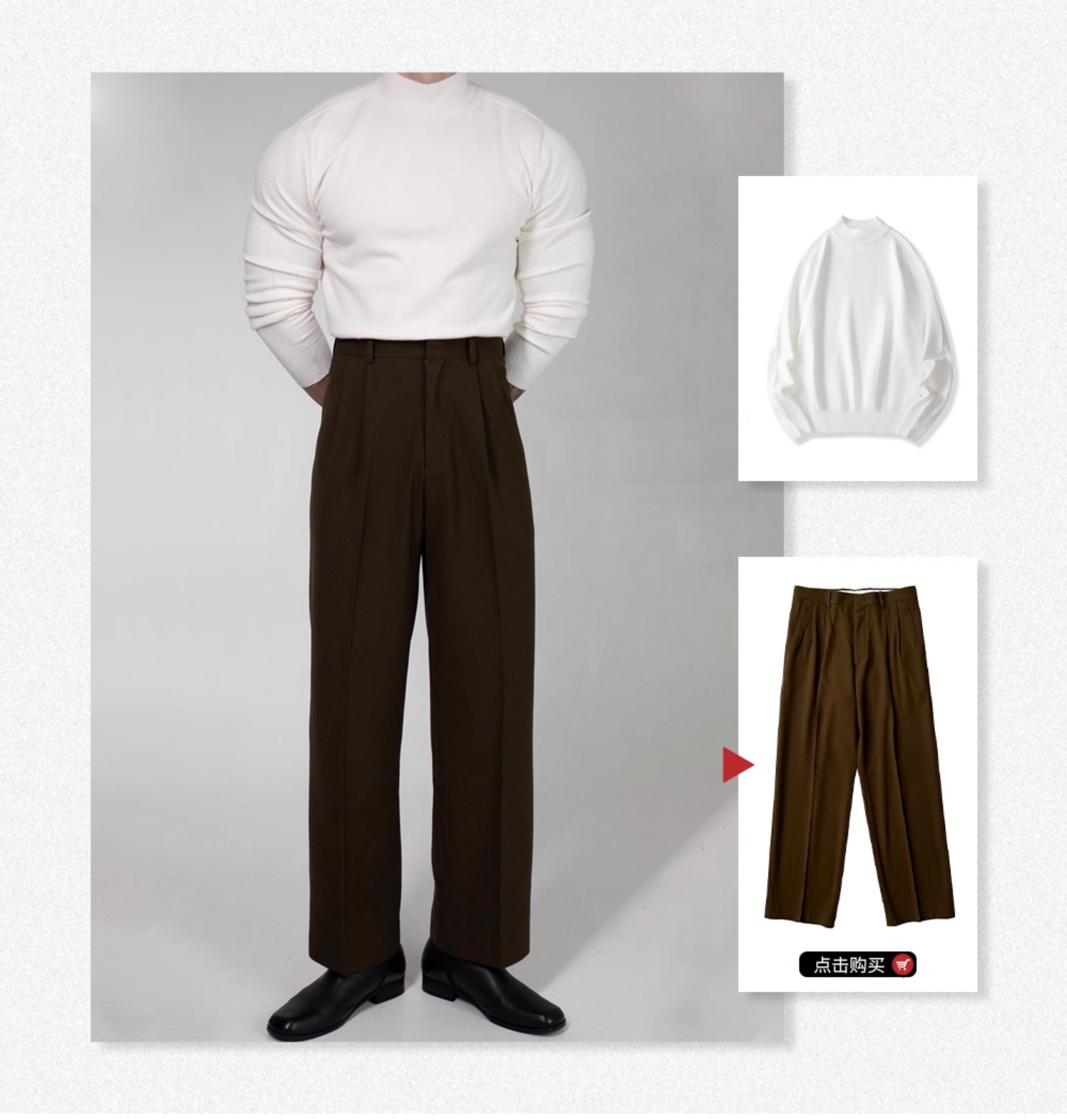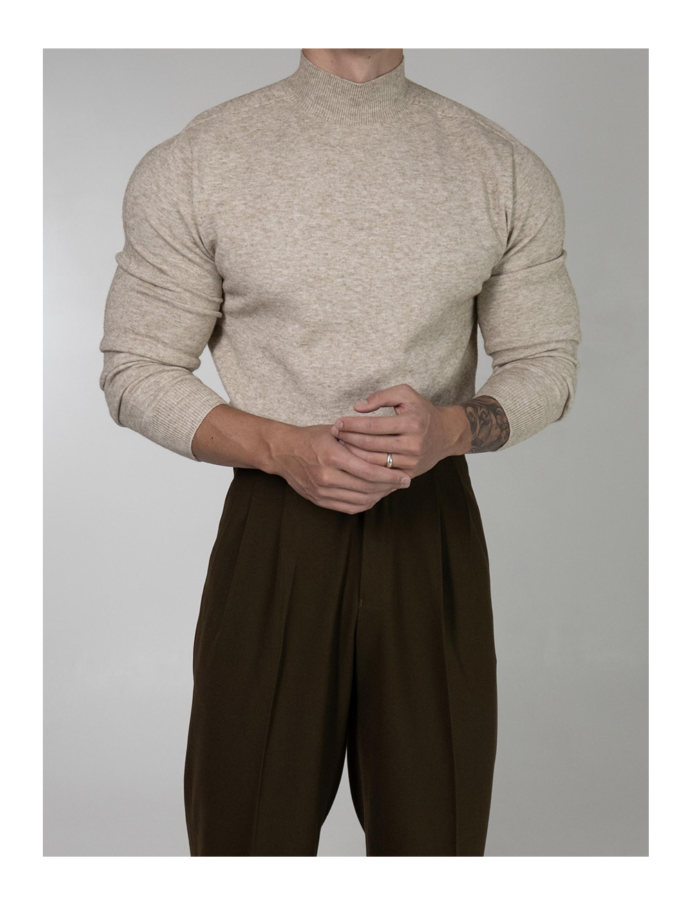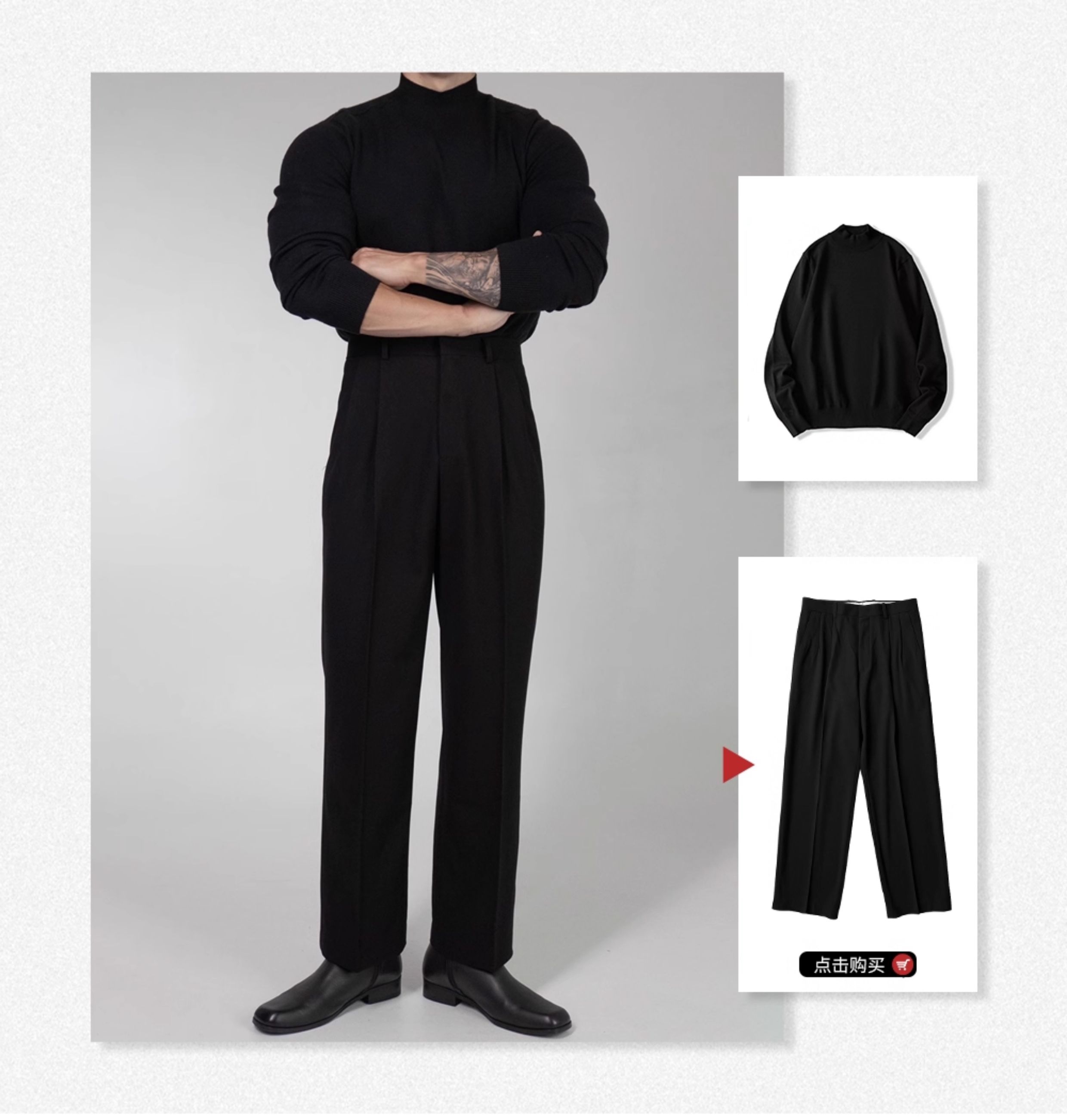 半高領針織衫男春秋款港風復古chic毛衣休閒套頭毛線衣長袖打底衫