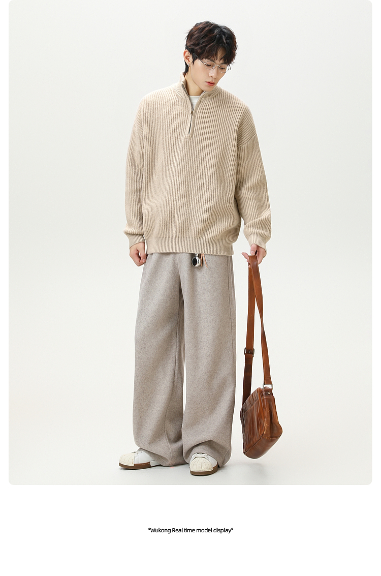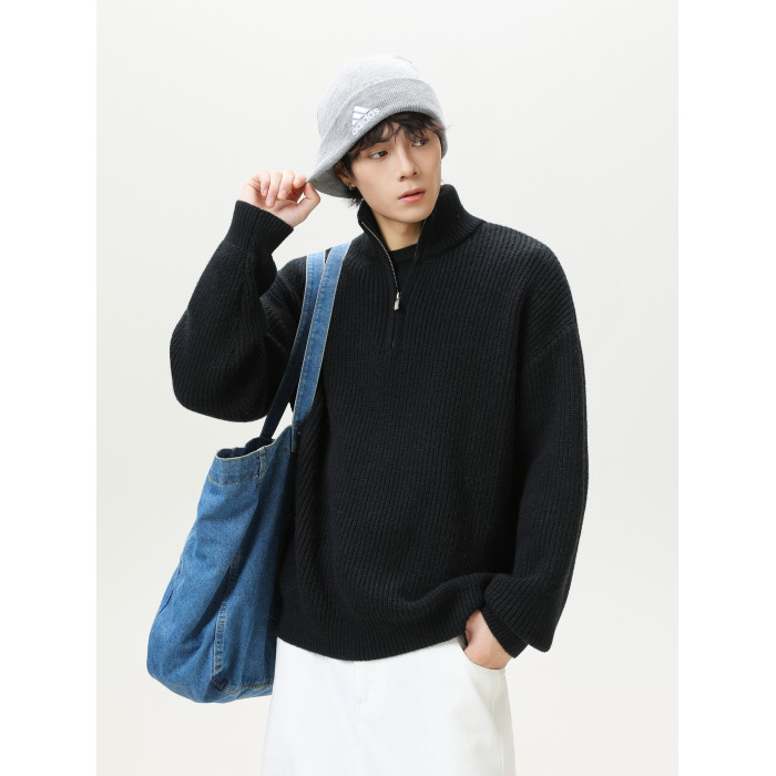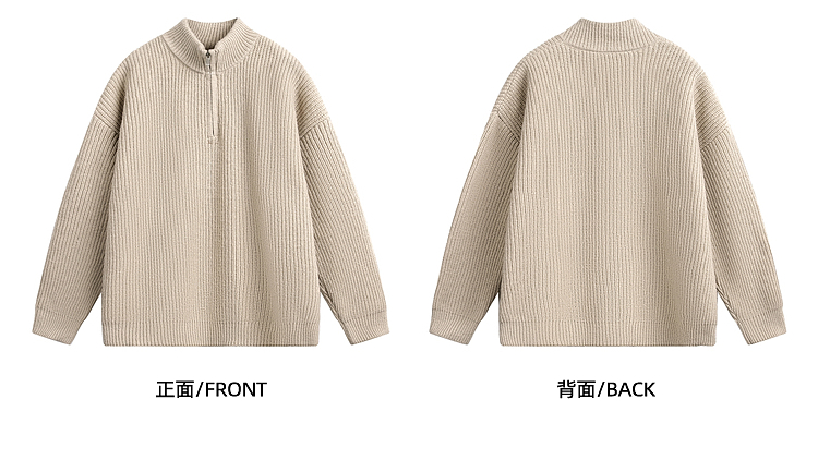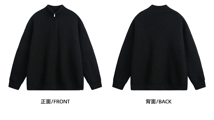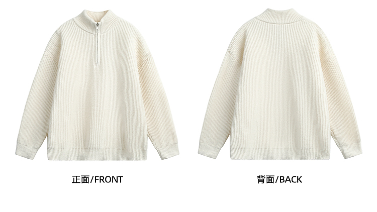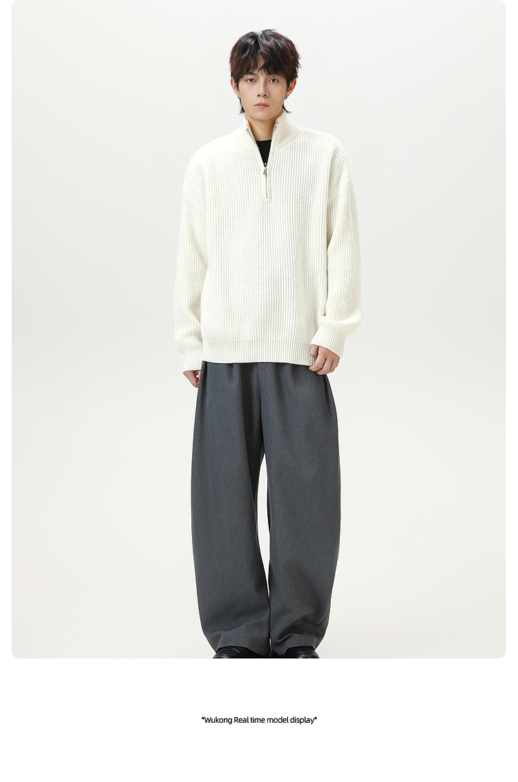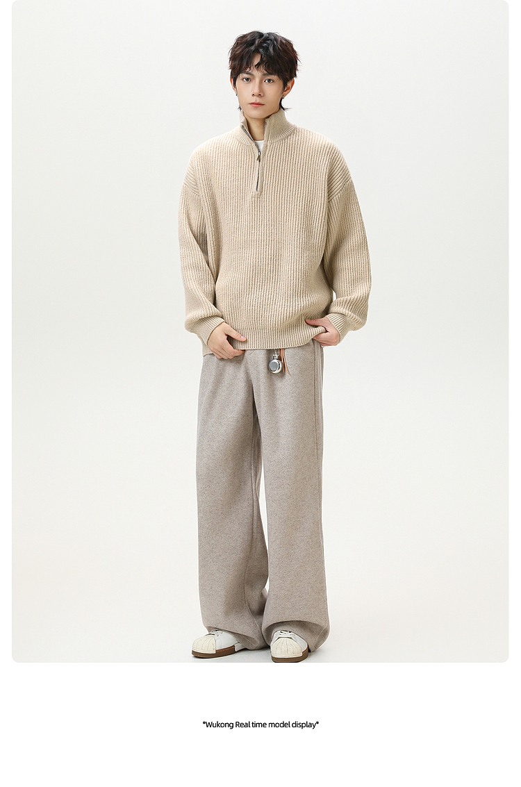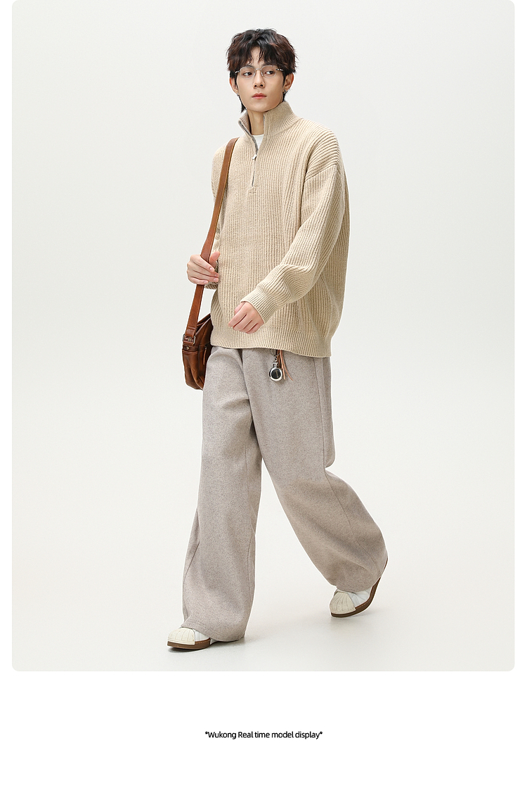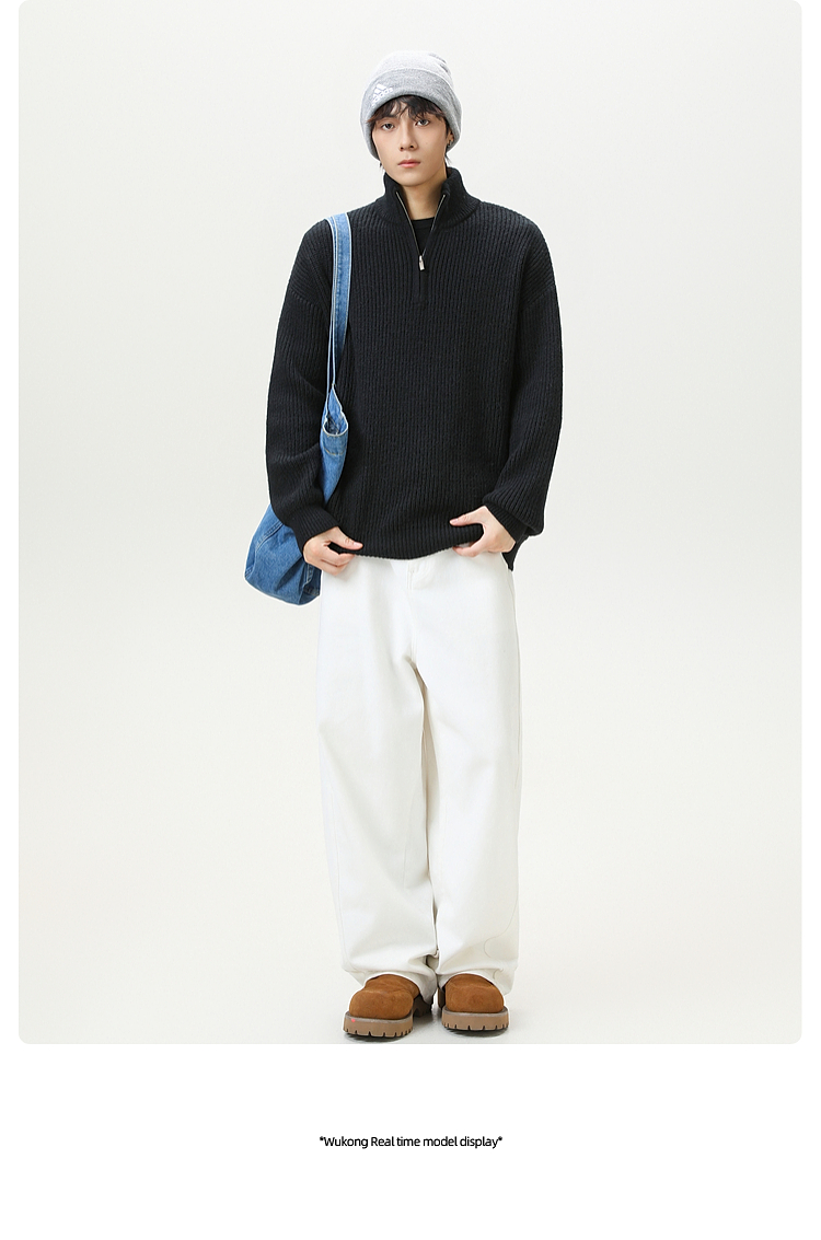 悟空有貨潮牌復古純色半拉鍊立領毛衣男女秋季潮牌情侶寬松針織衫