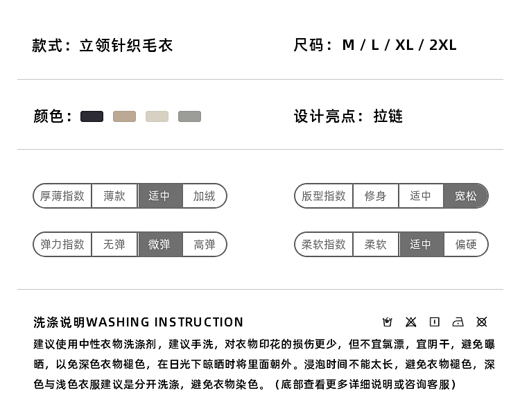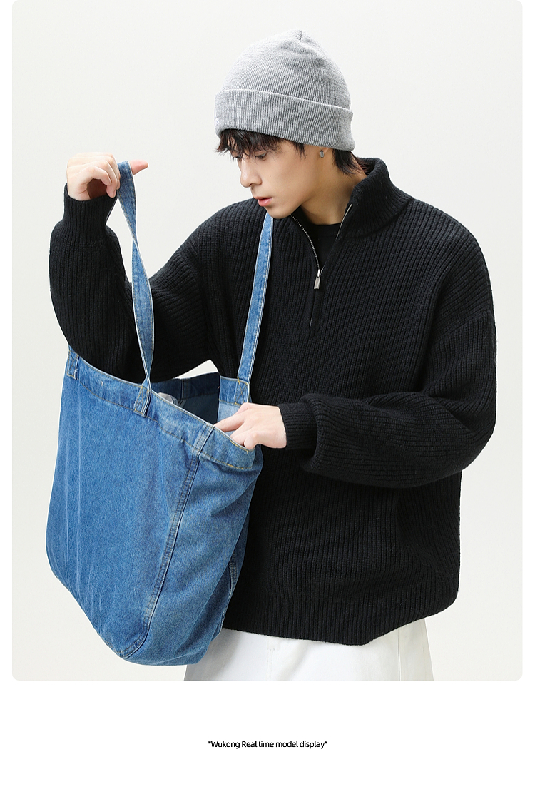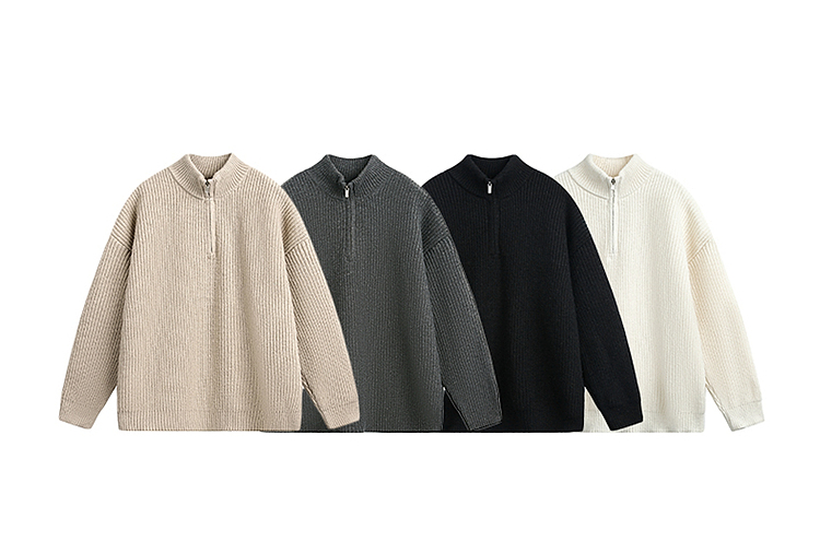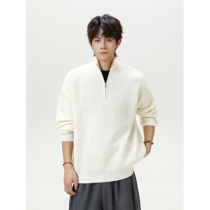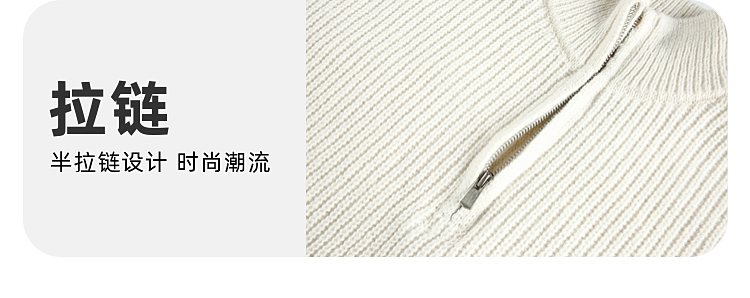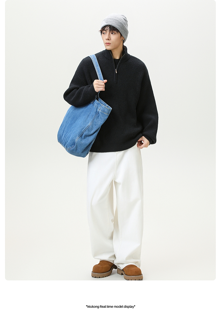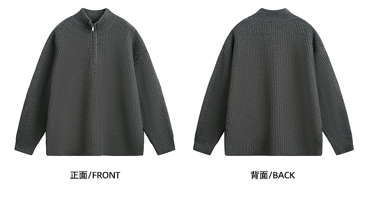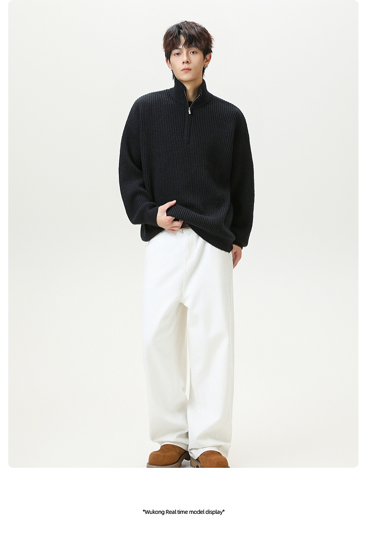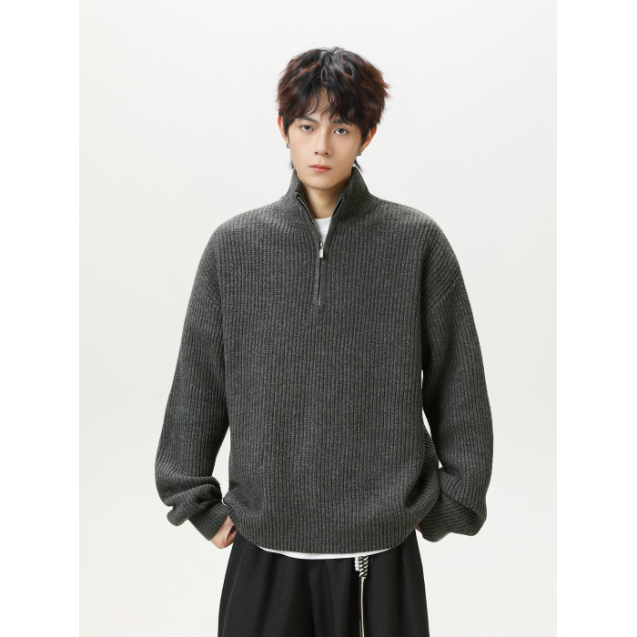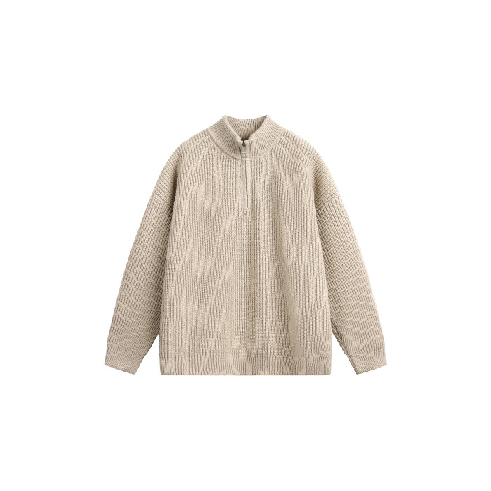 悟空有貨潮牌復古純色半拉鍊立領毛衣男女秋季潮牌情侶寬松針織衫