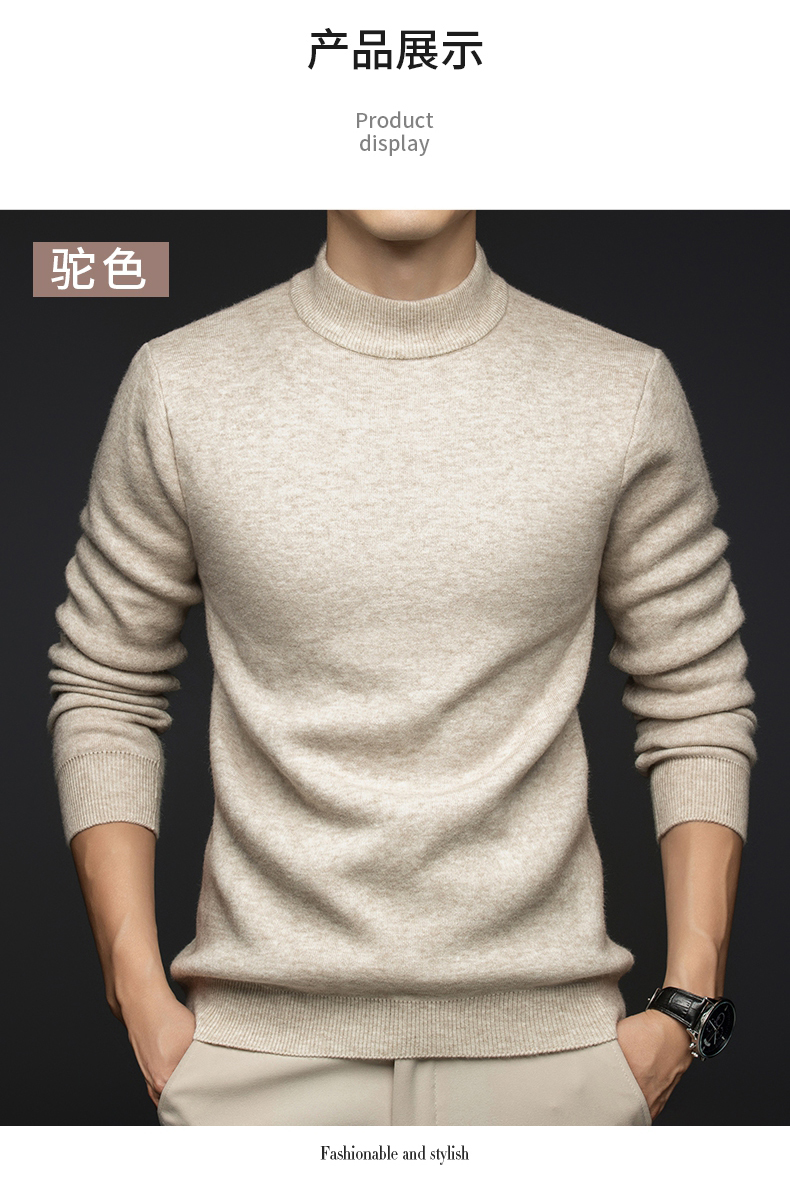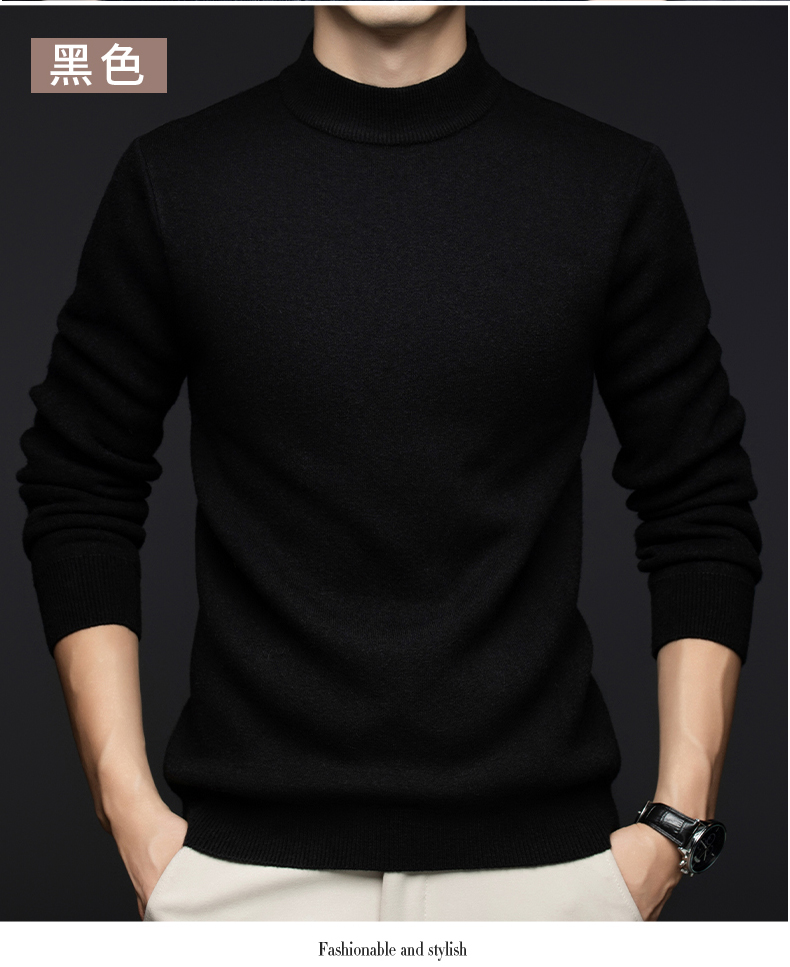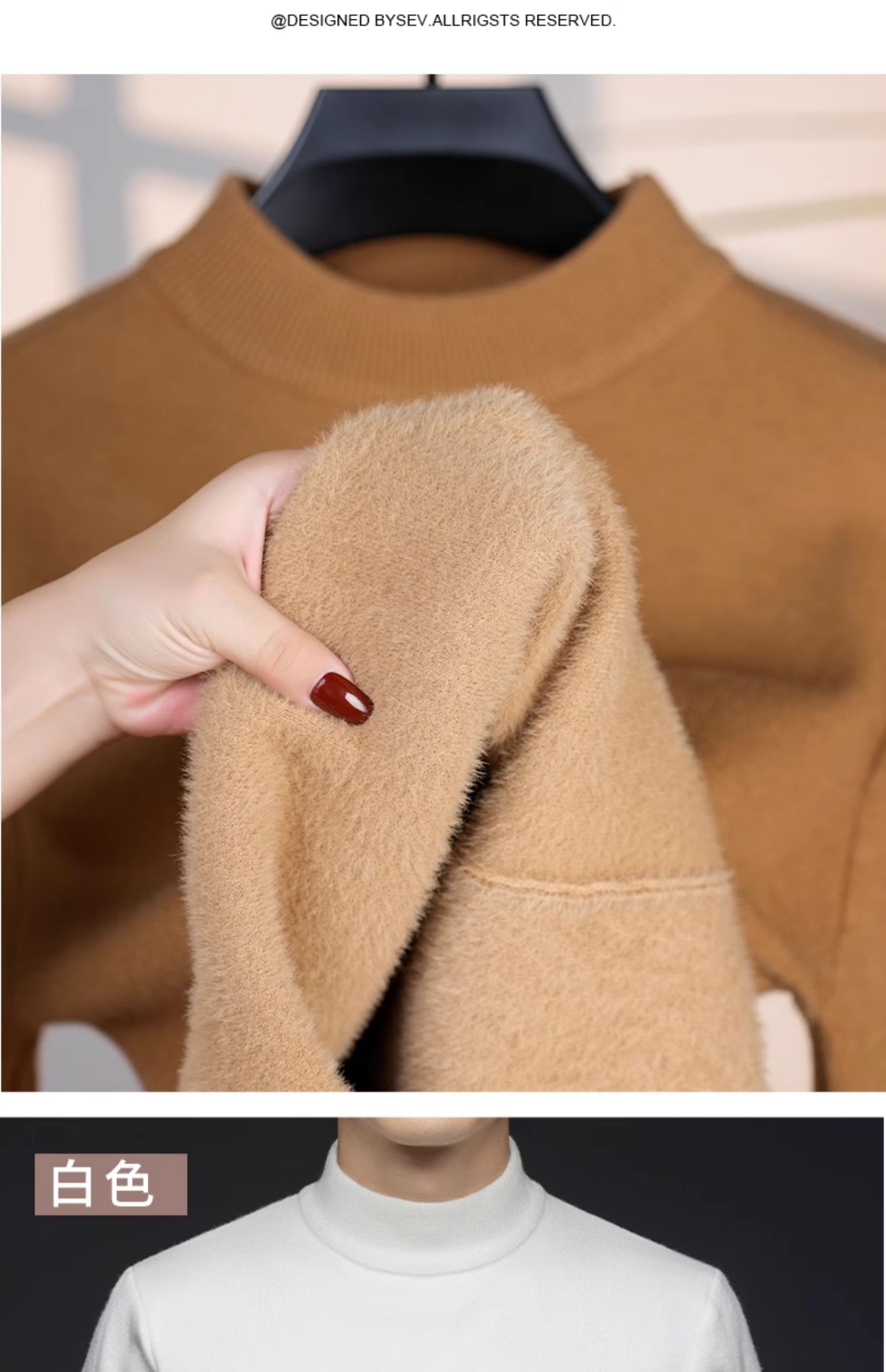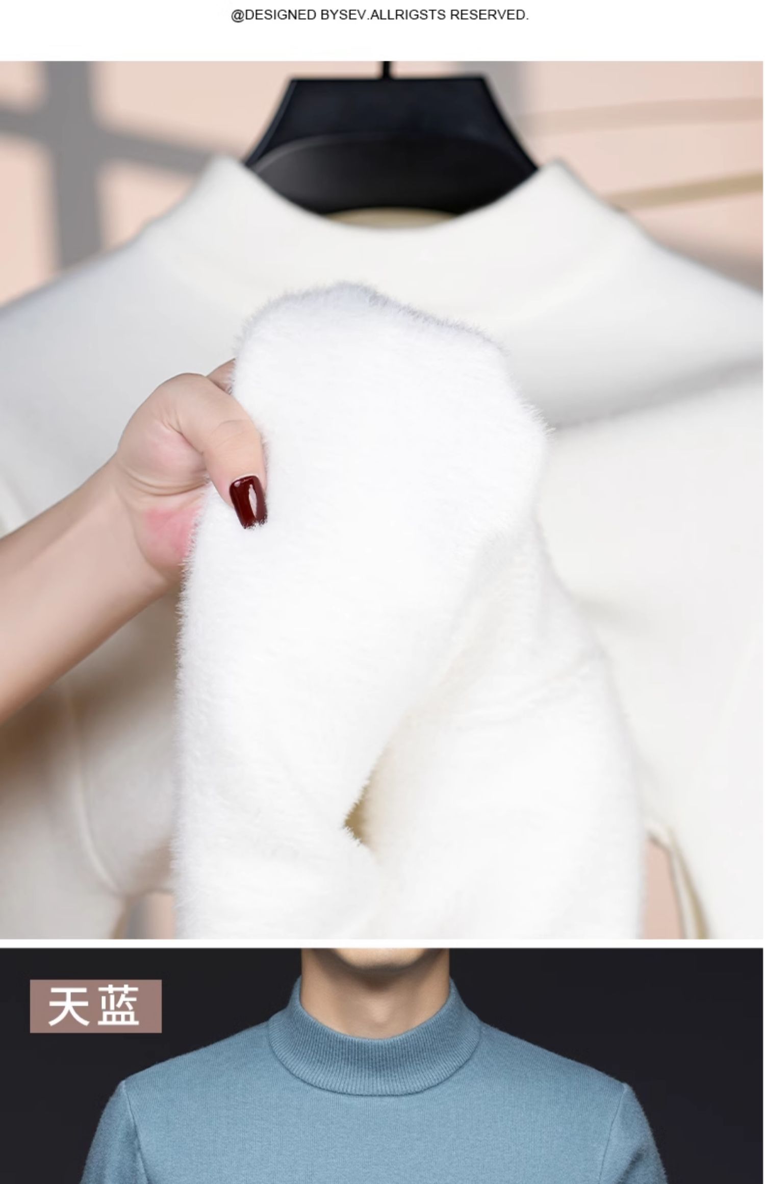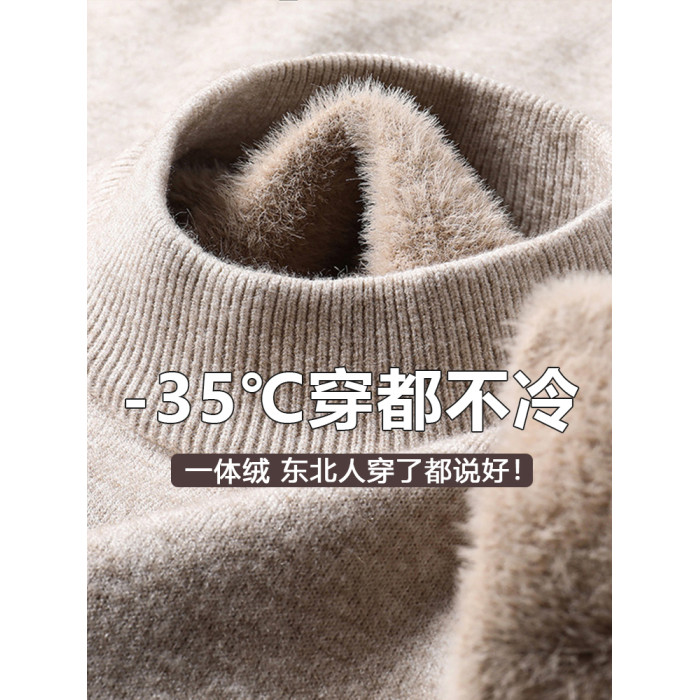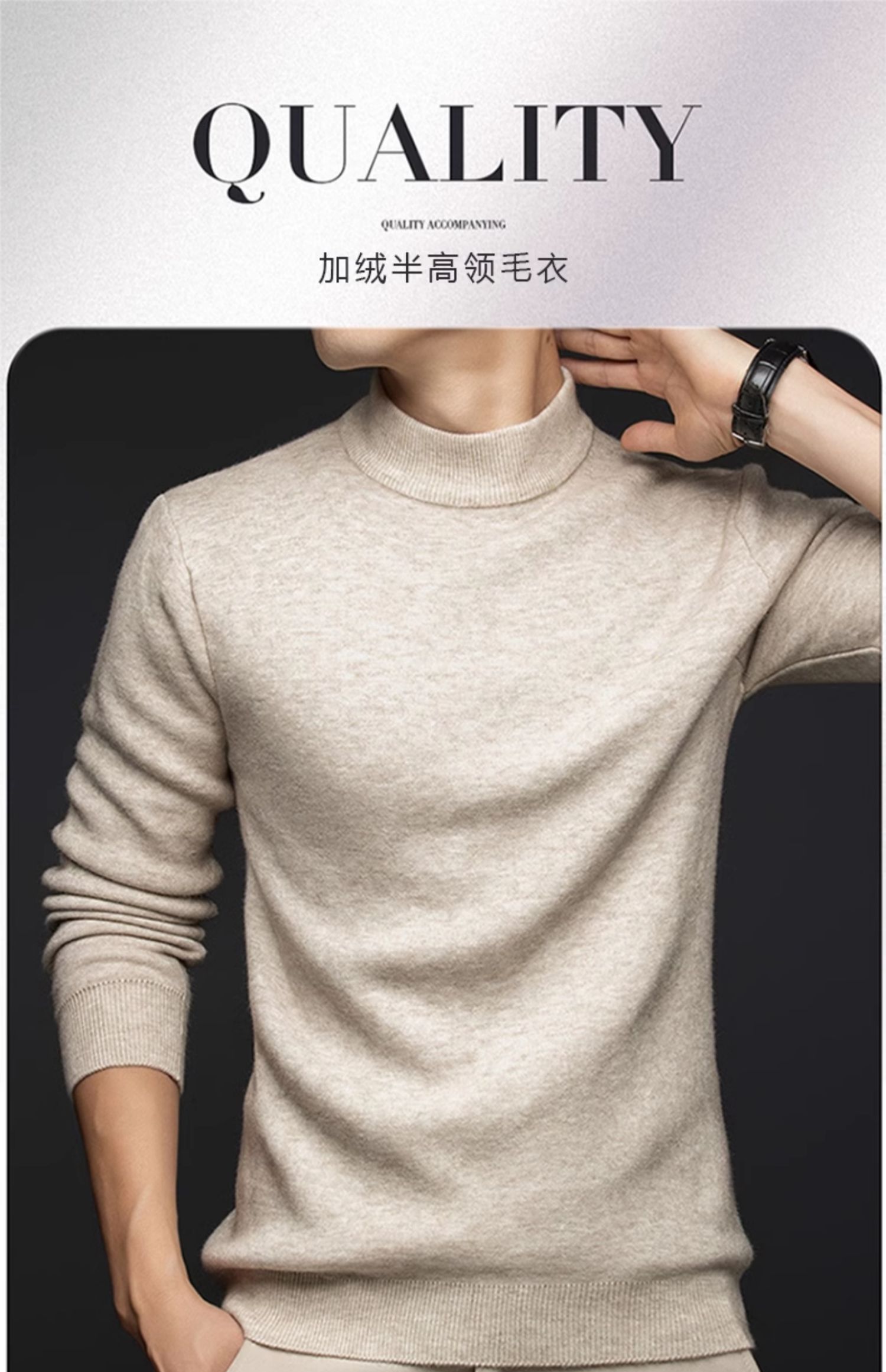 2025年秋冬季新款男士一體絨毛衣加絨加厚半高領針織打底衫上衣男