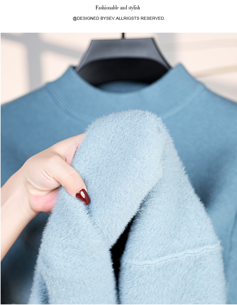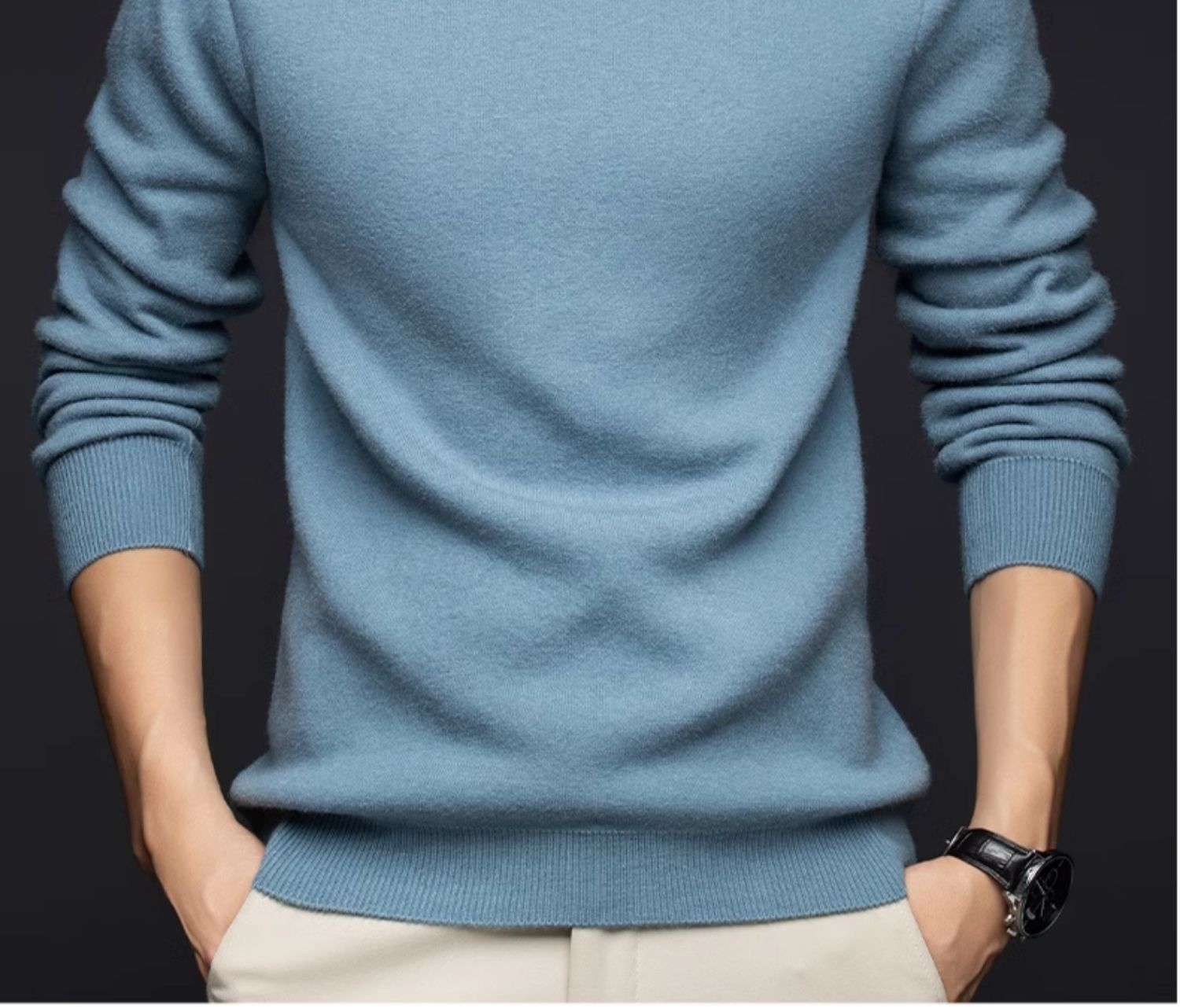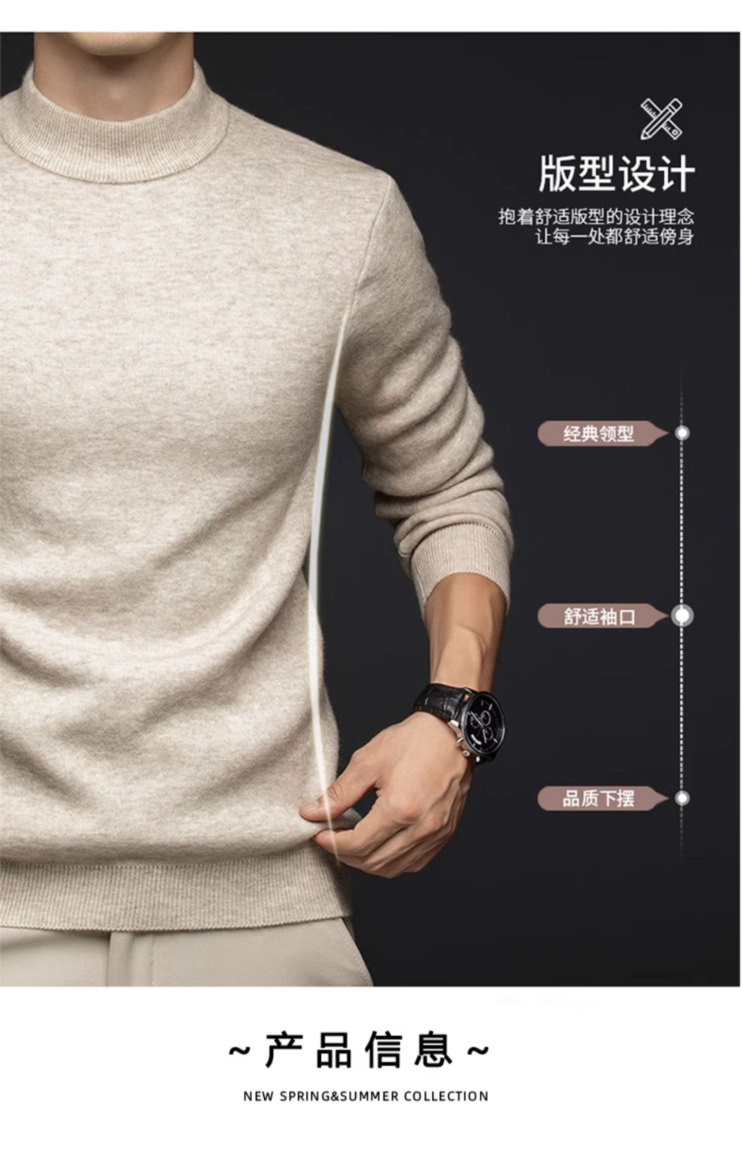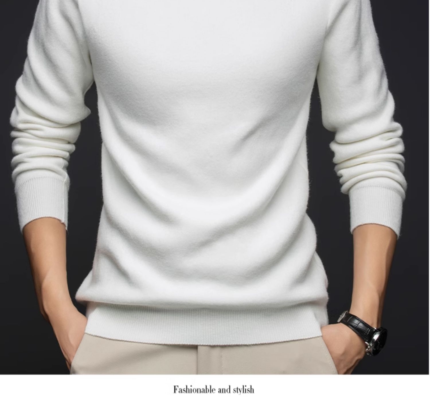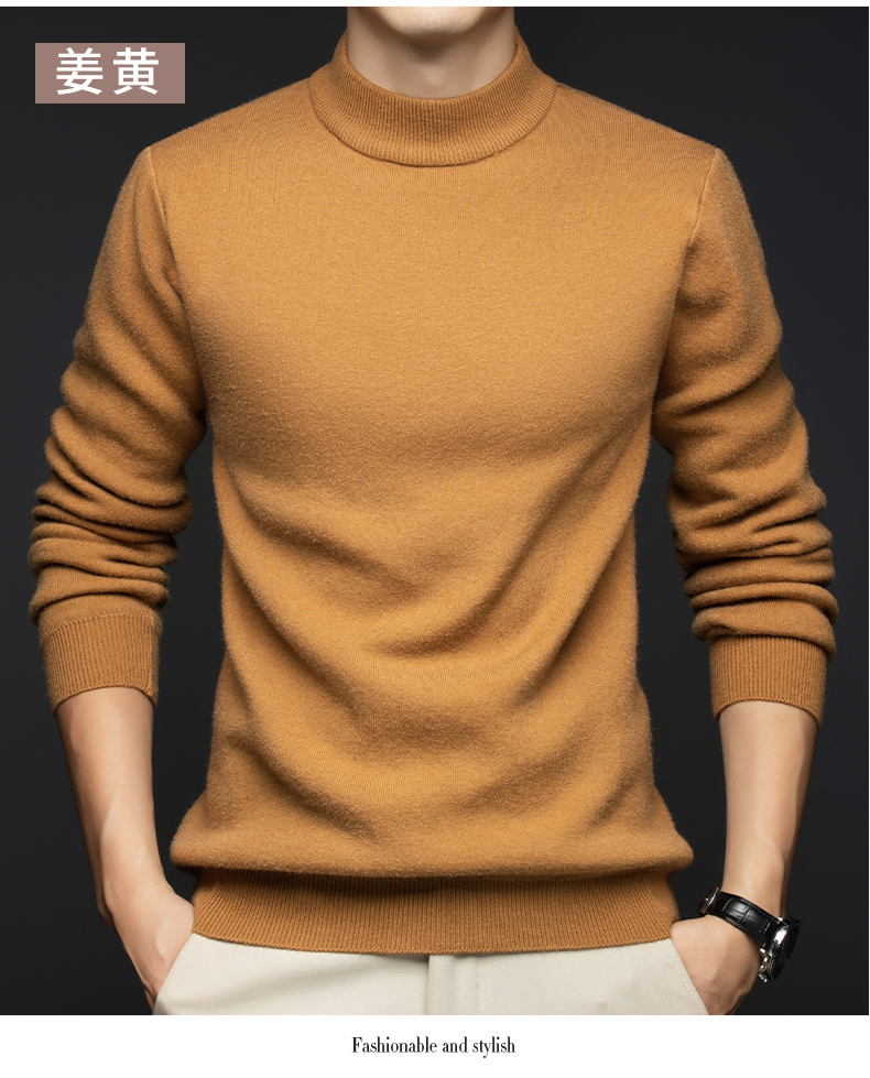 2025年秋冬季新款男士一體絨毛衣加絨加厚半高領針織打底衫上衣男