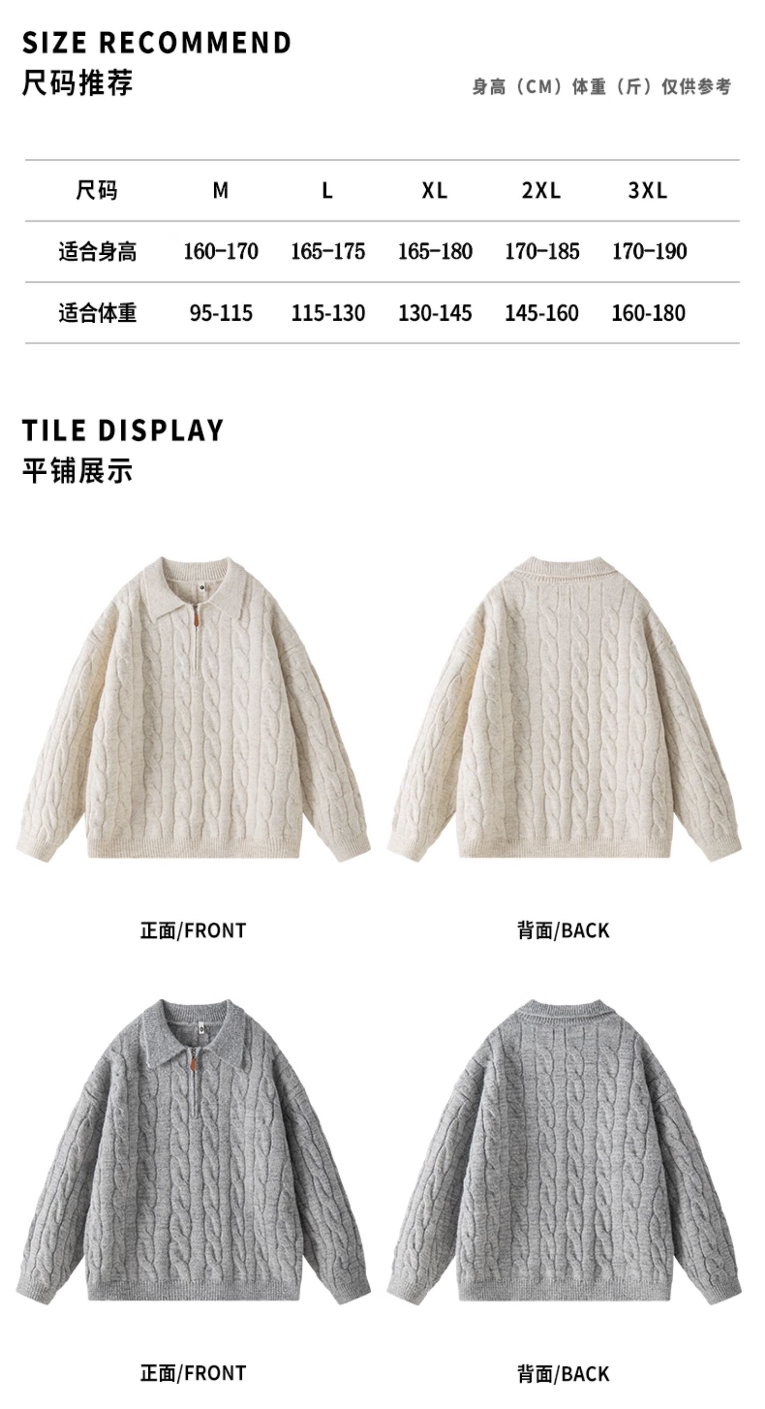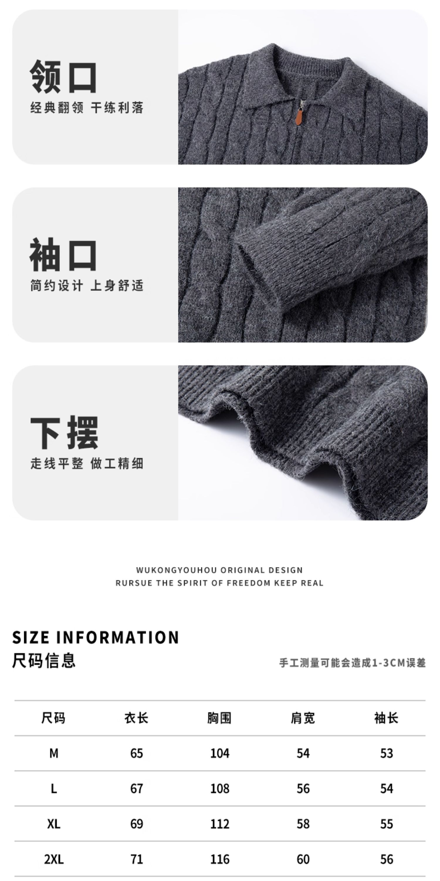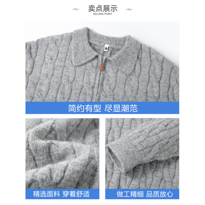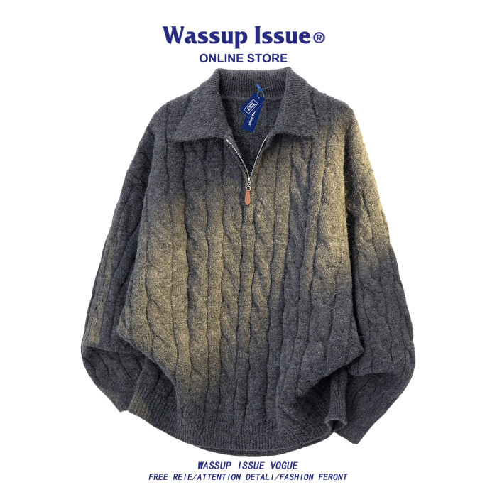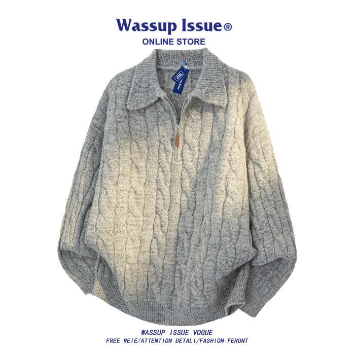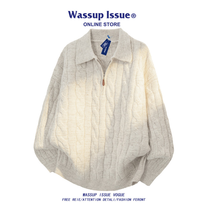 WASSUP ISSUE美式翻領半拉鍊麻花紋針織衫男秋冬情侶毛衣外套男款
