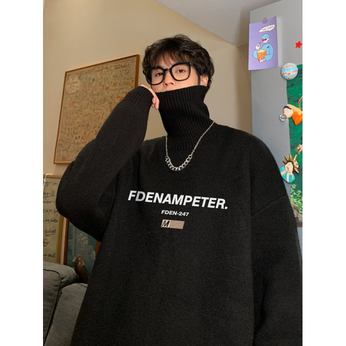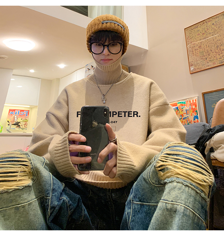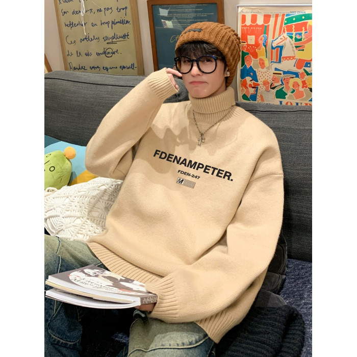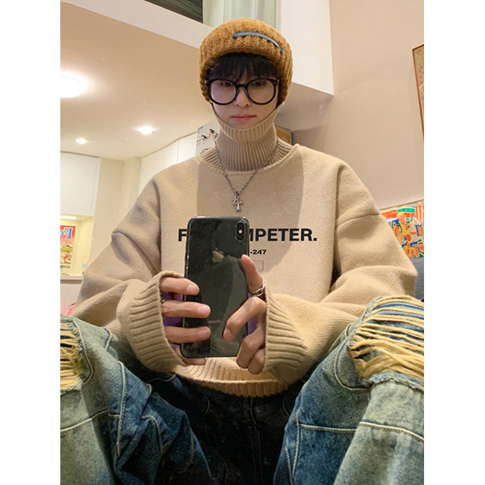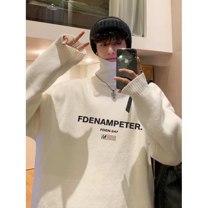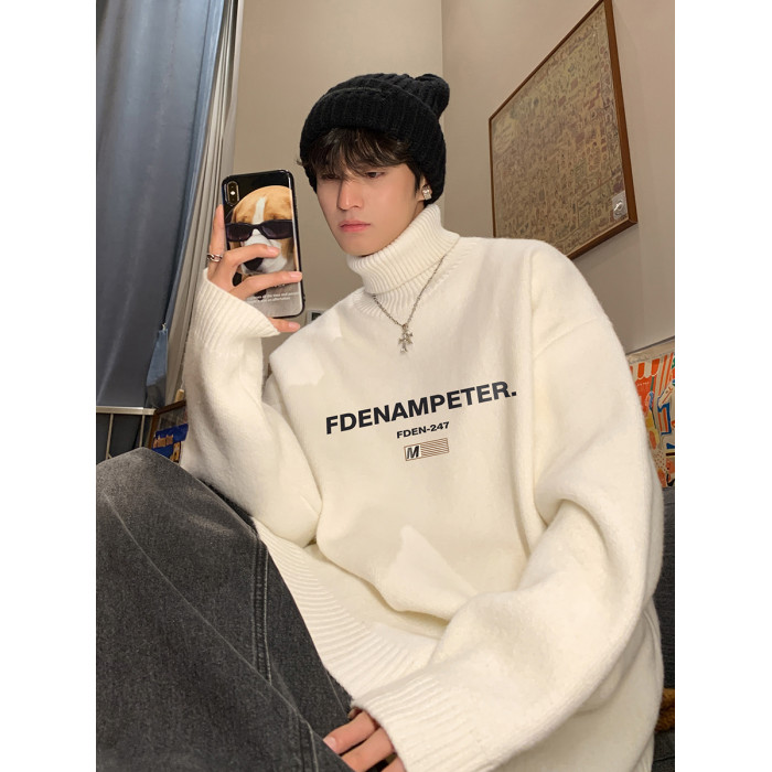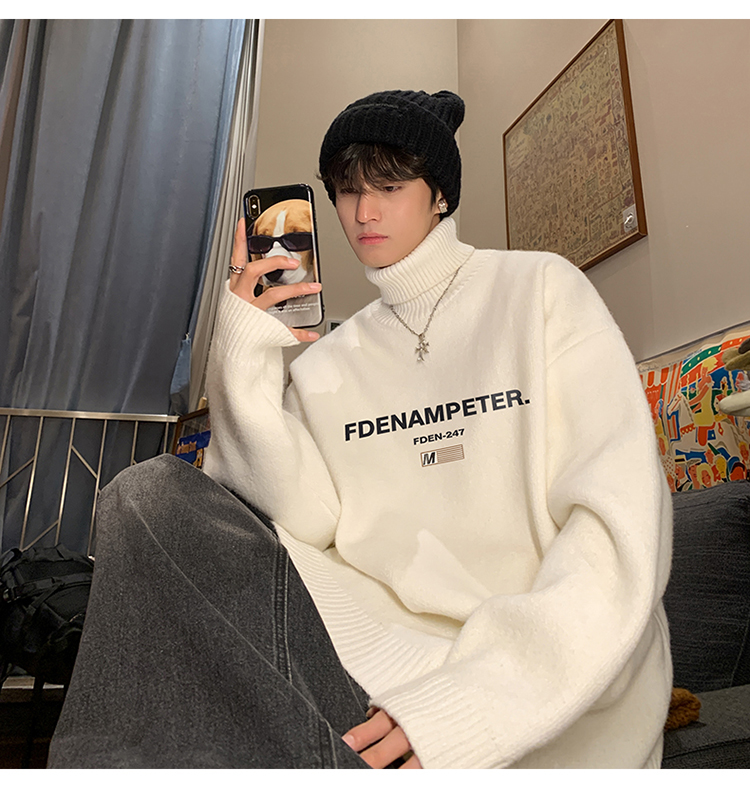 白色高領毛衣男冬季潮流慵懶打底寬松2024新款針織內搭保暖加厚冬