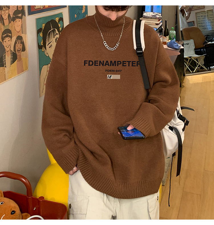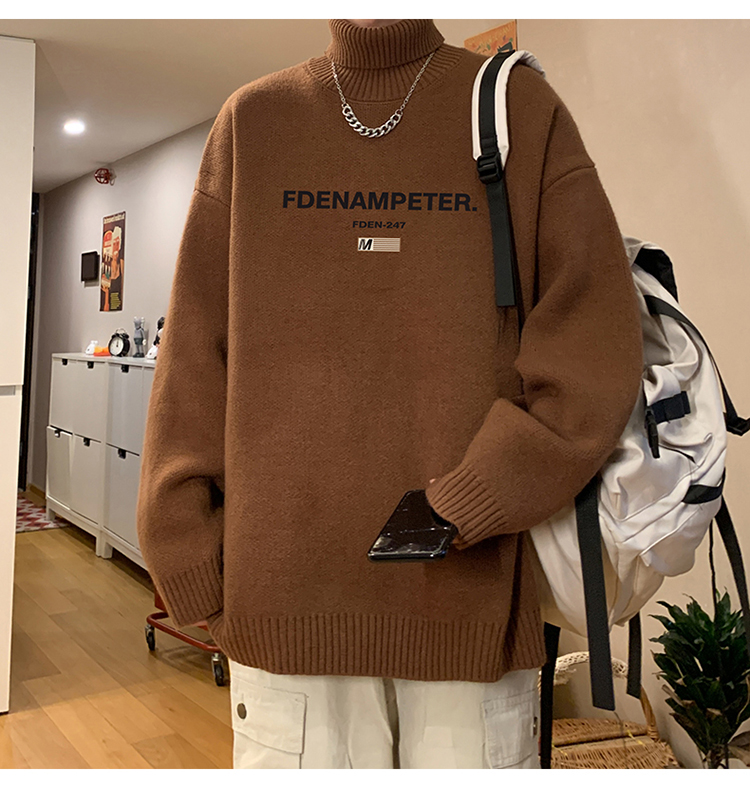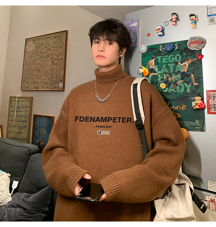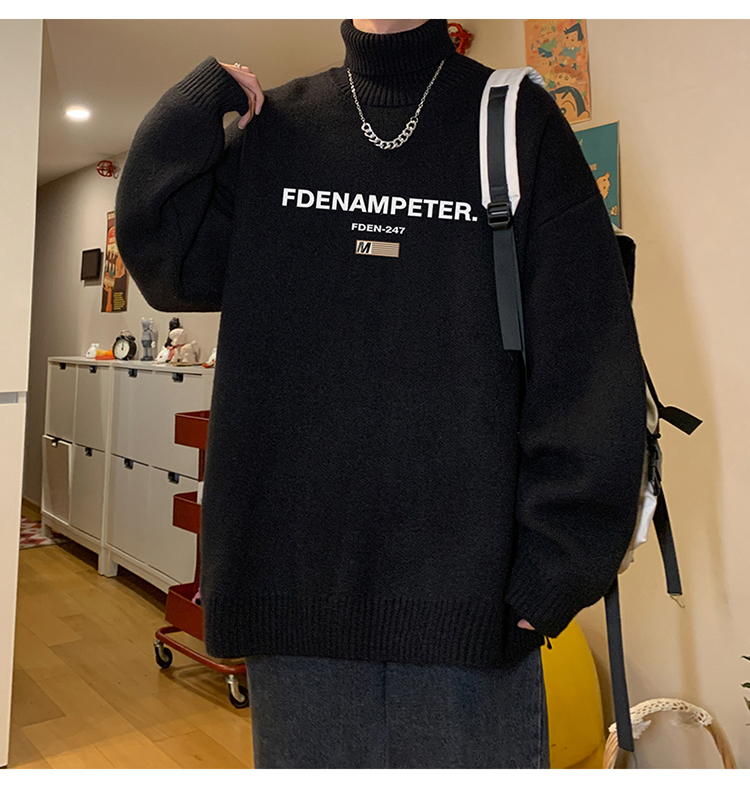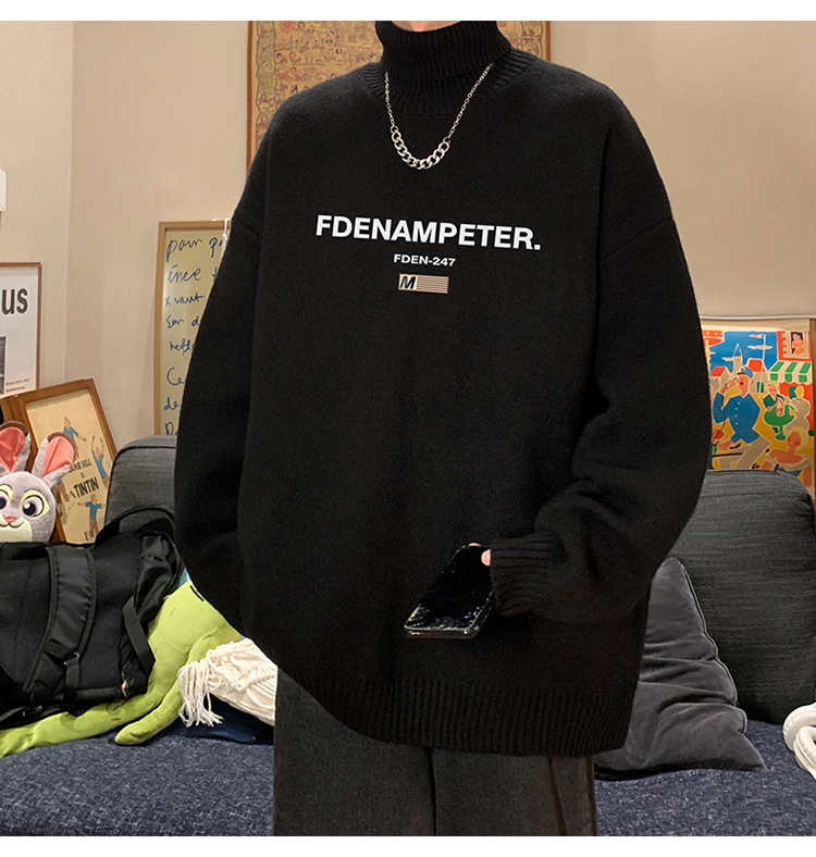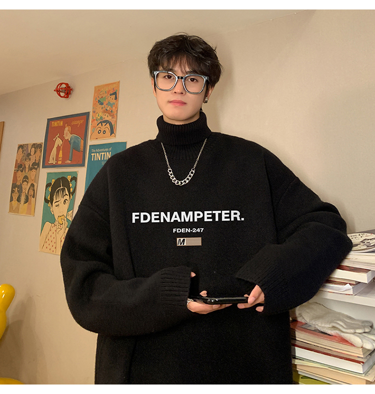 白色高領毛衣男冬季潮流慵懶打底寬松2024新款針織內搭保暖加厚冬