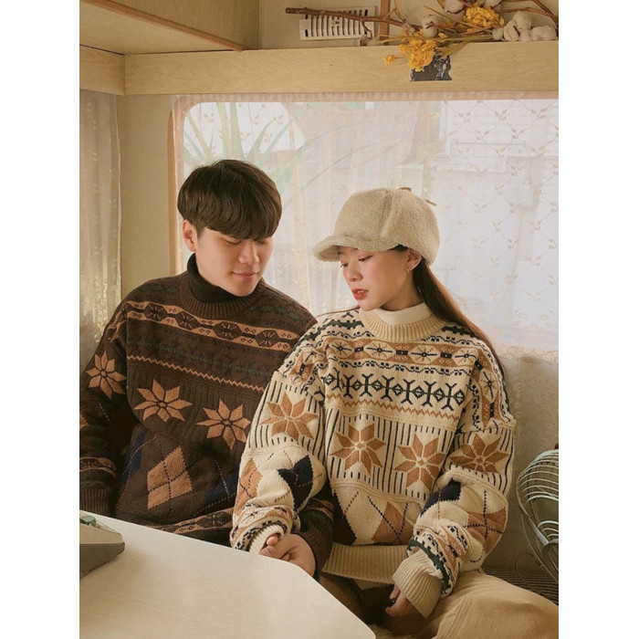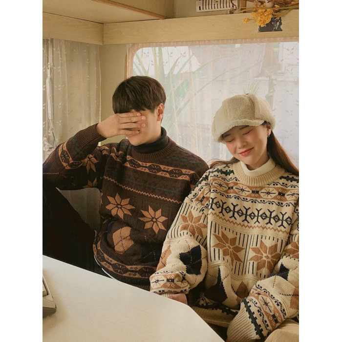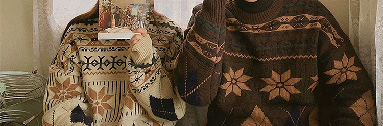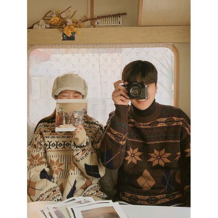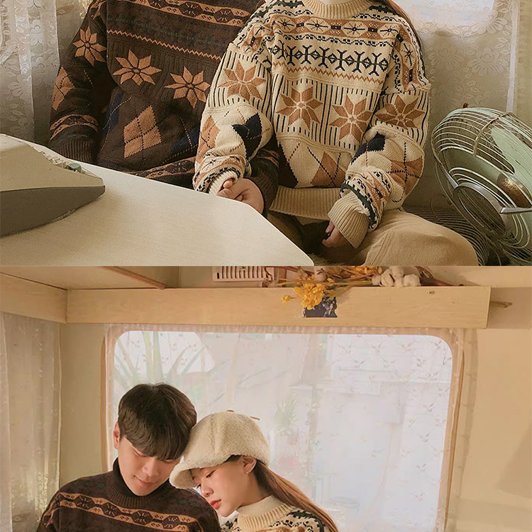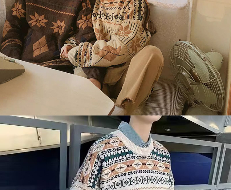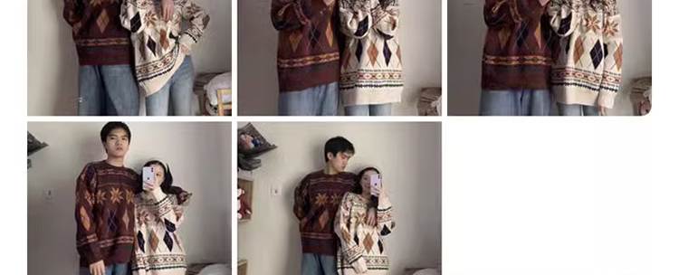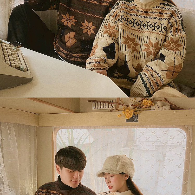 秋冬美拉德針織衫情侶裝套頭線衣寬松慵懶oversize毛衣男女款外套