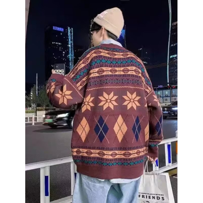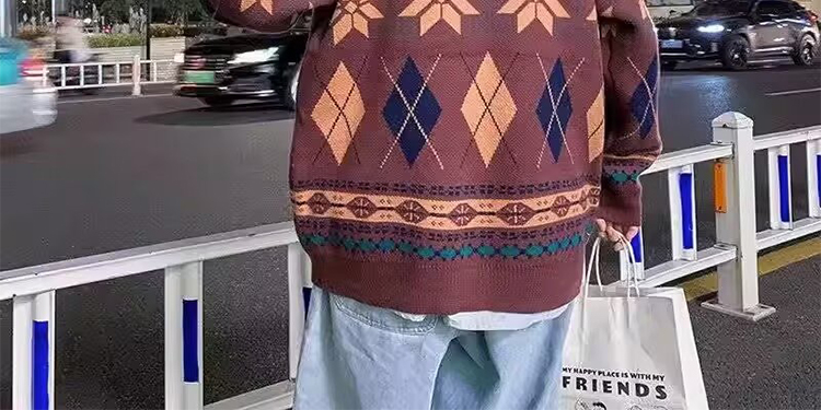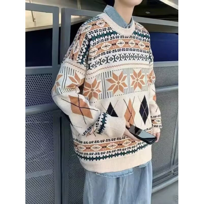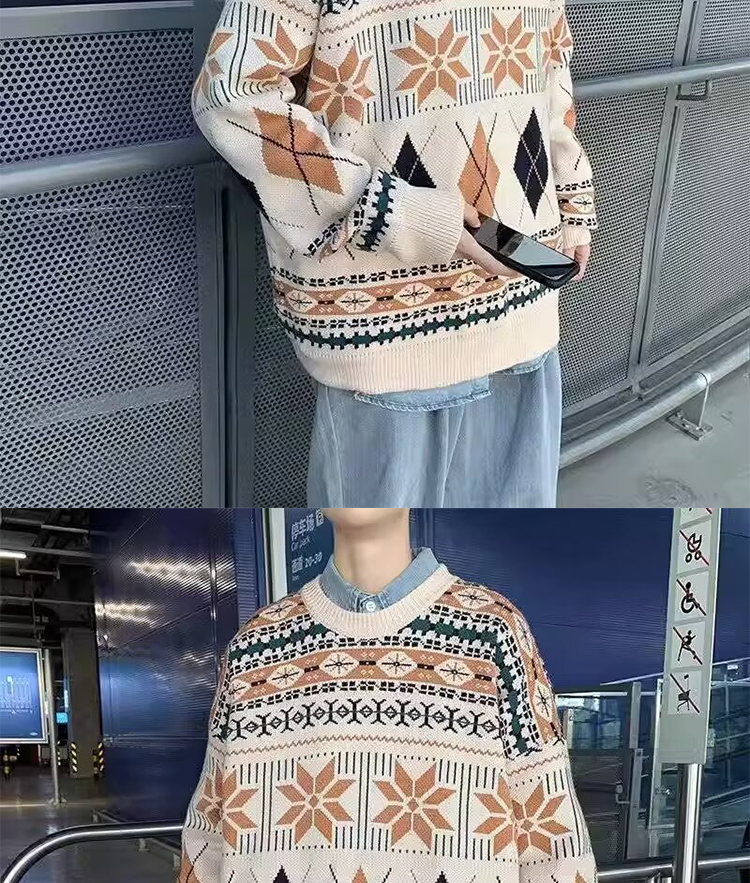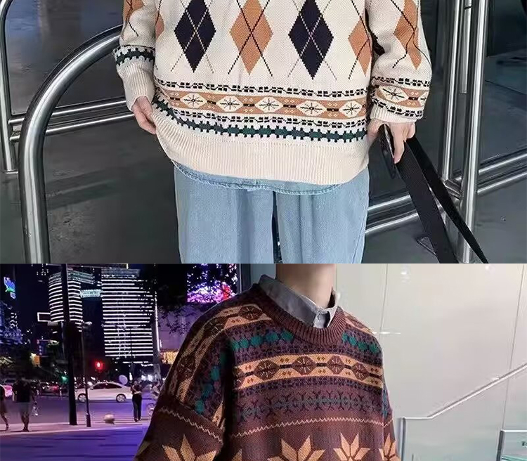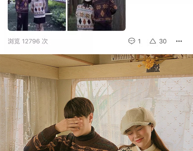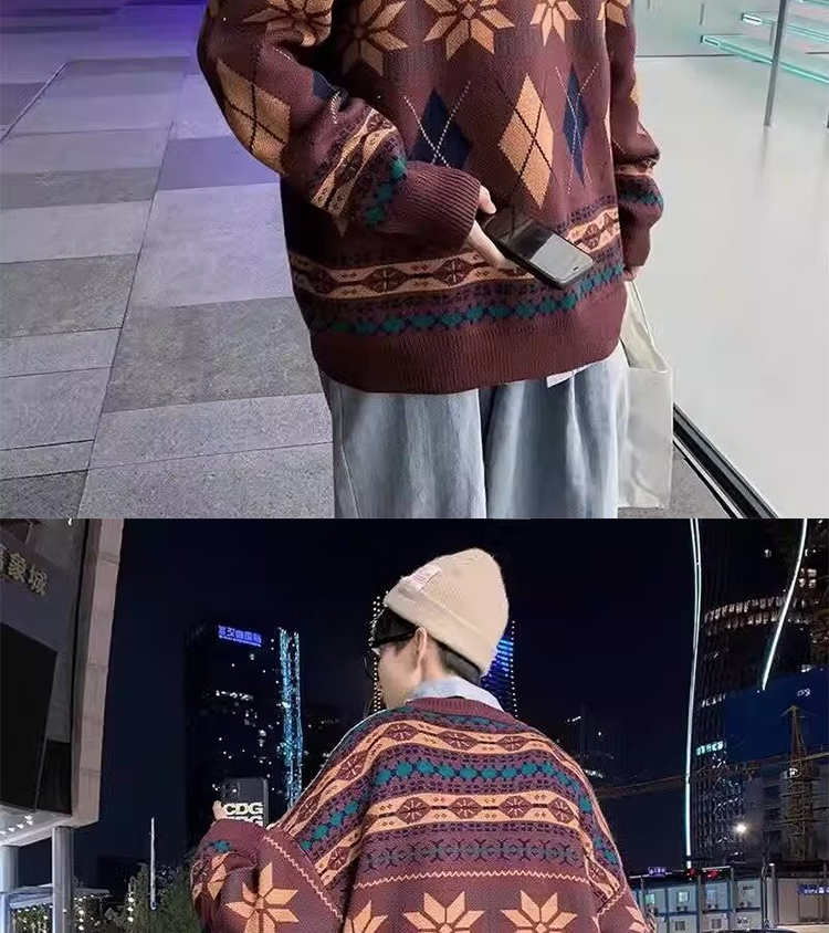 秋冬美拉德針織衫情侶裝套頭線衣寬松慵懶oversize毛衣男女款外套