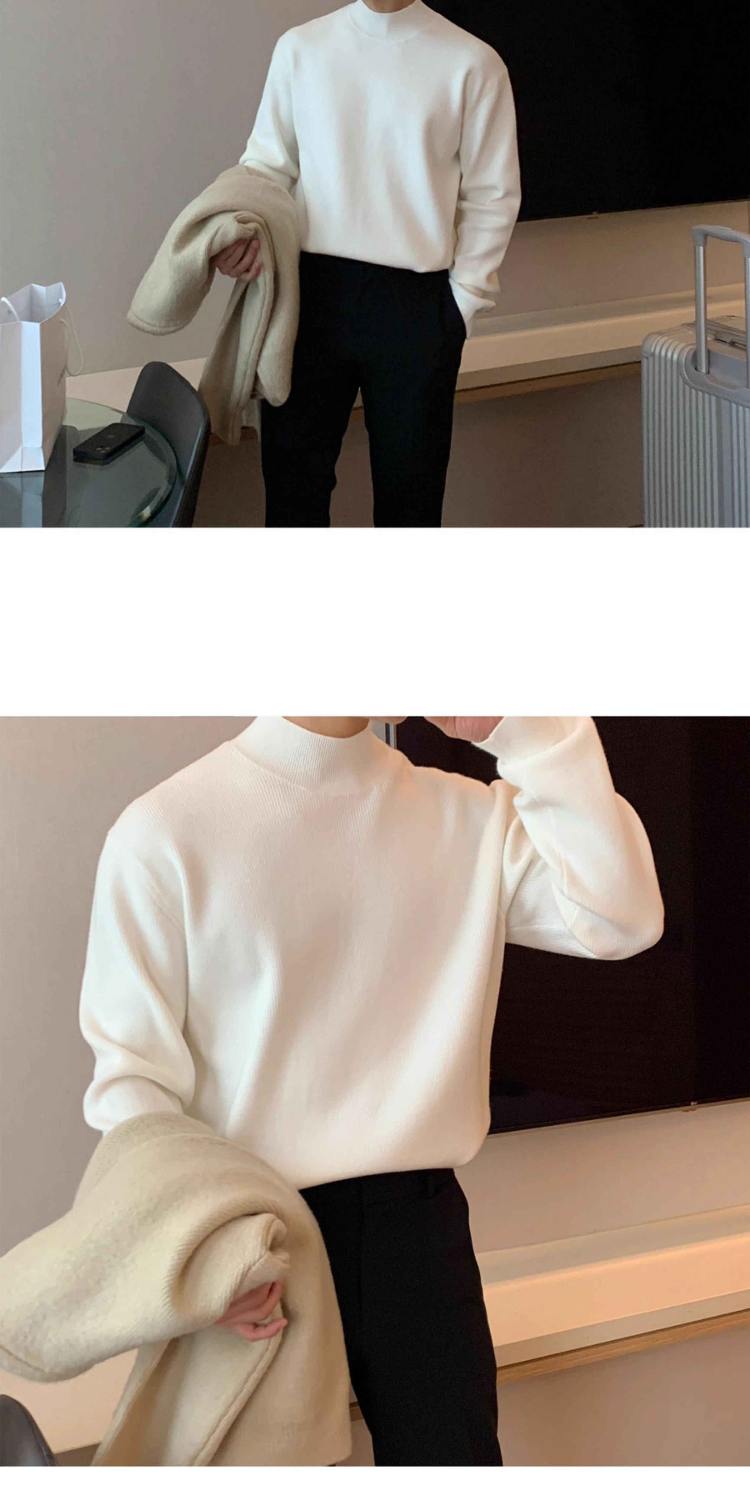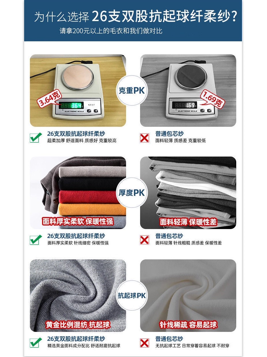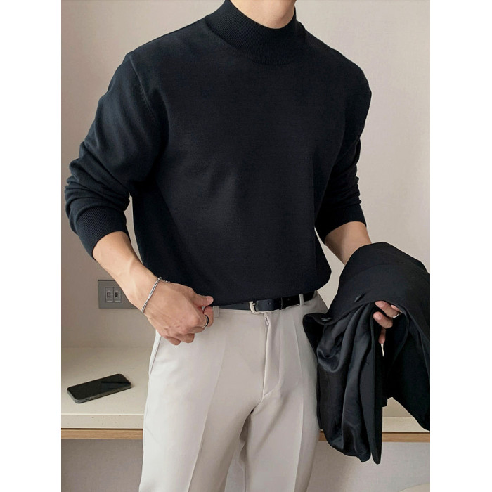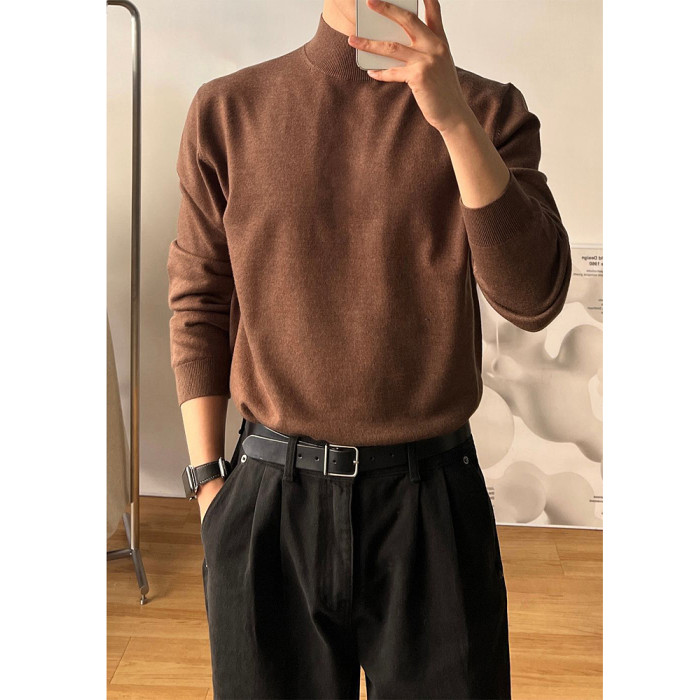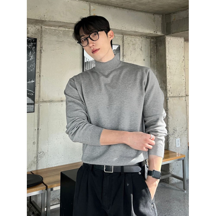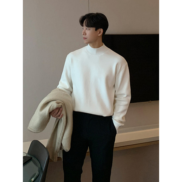 冬季半高領毛衣男內搭灰色寬松青少年保暖加絨加厚中領針織打底衫