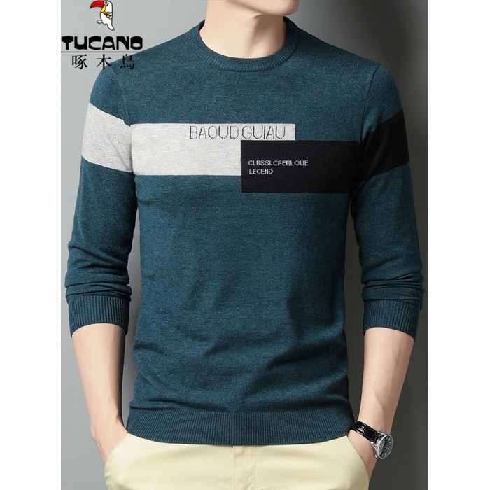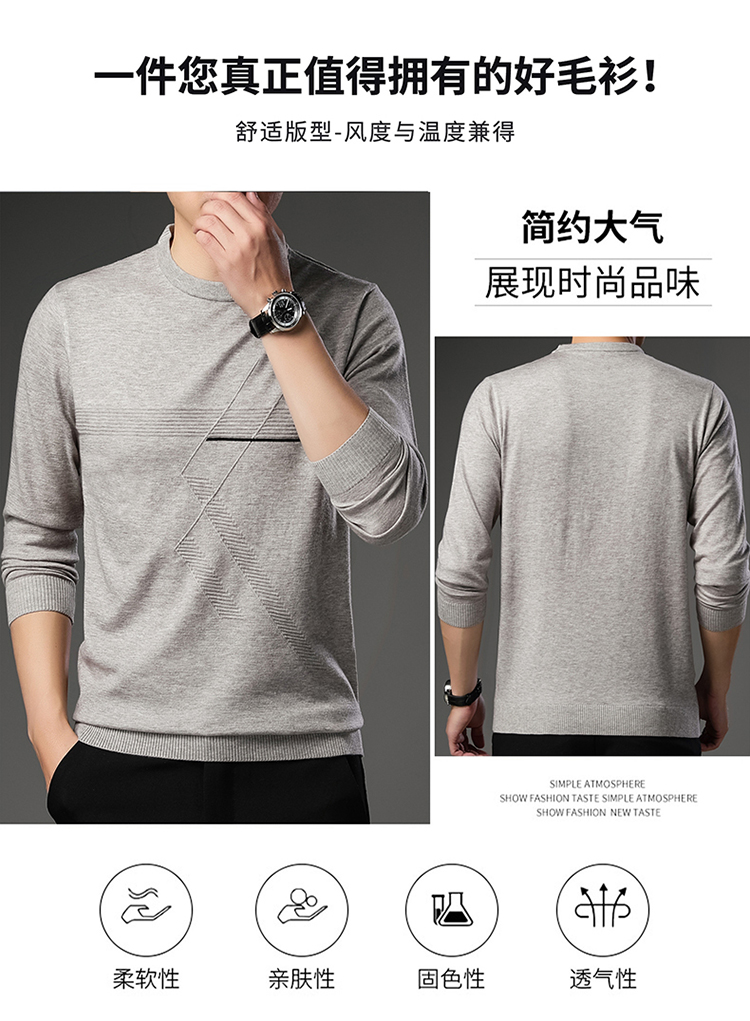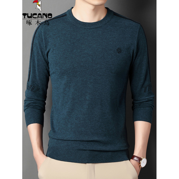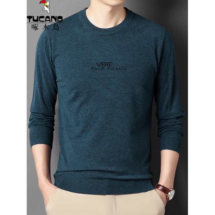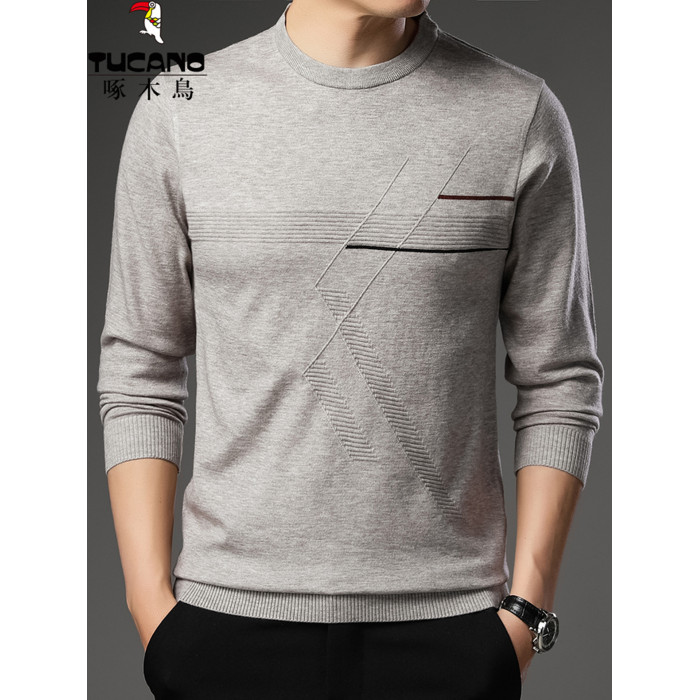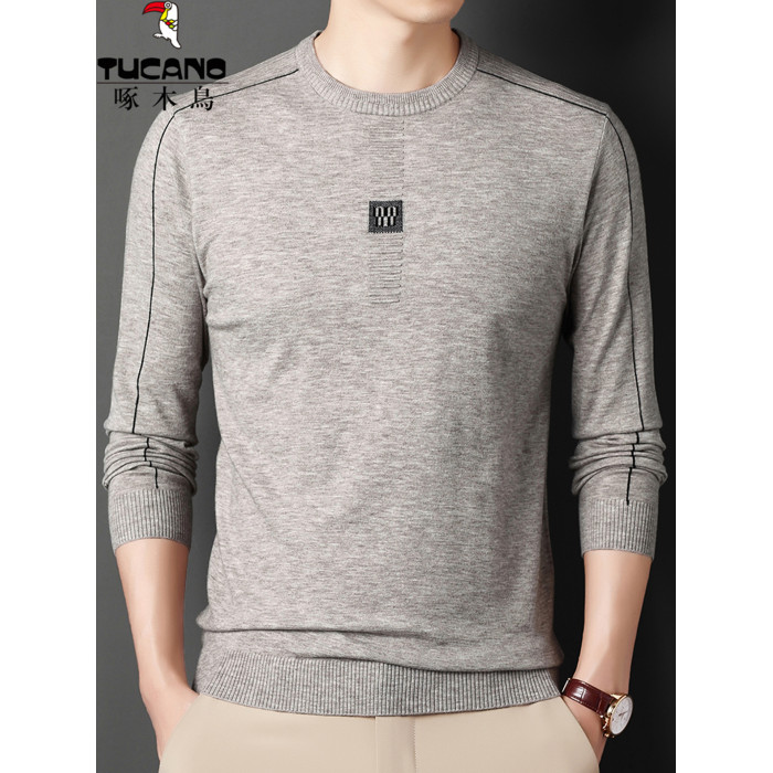 啄木鳥羊毛衫男士春秋款針織衫圓領薄款毛衣男長袖t恤線衣打底衫