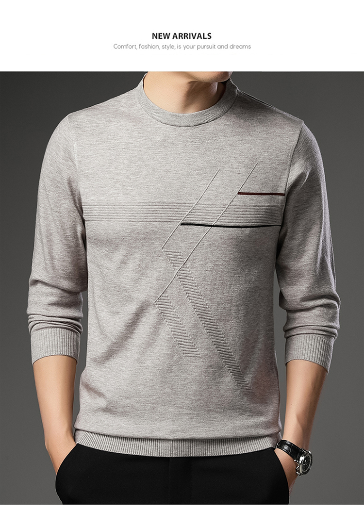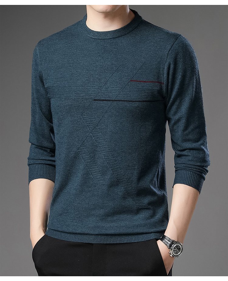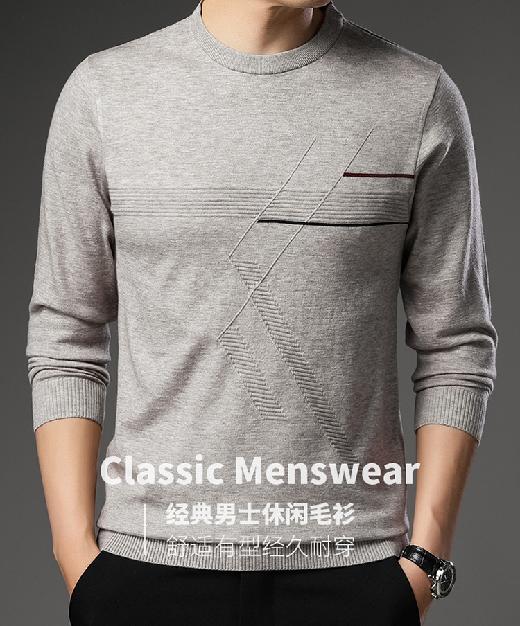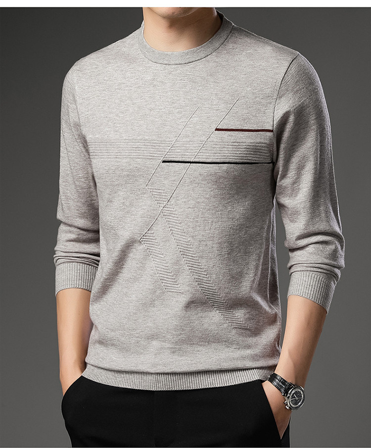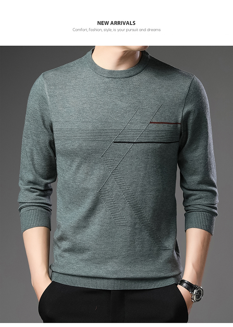 啄木鳥羊毛衫男士春秋款針織衫圓領薄款毛衣男長袖t恤線衣打底衫