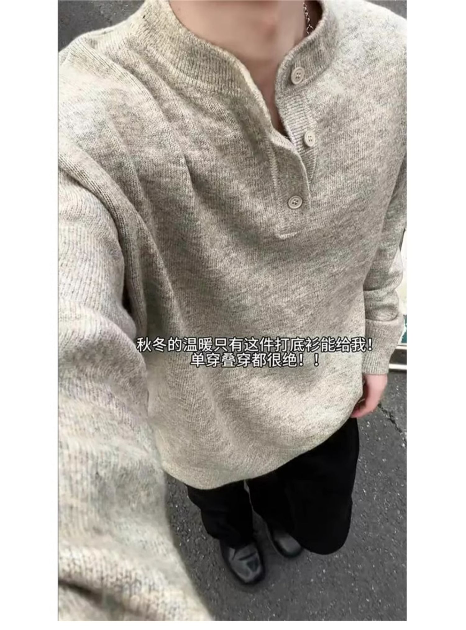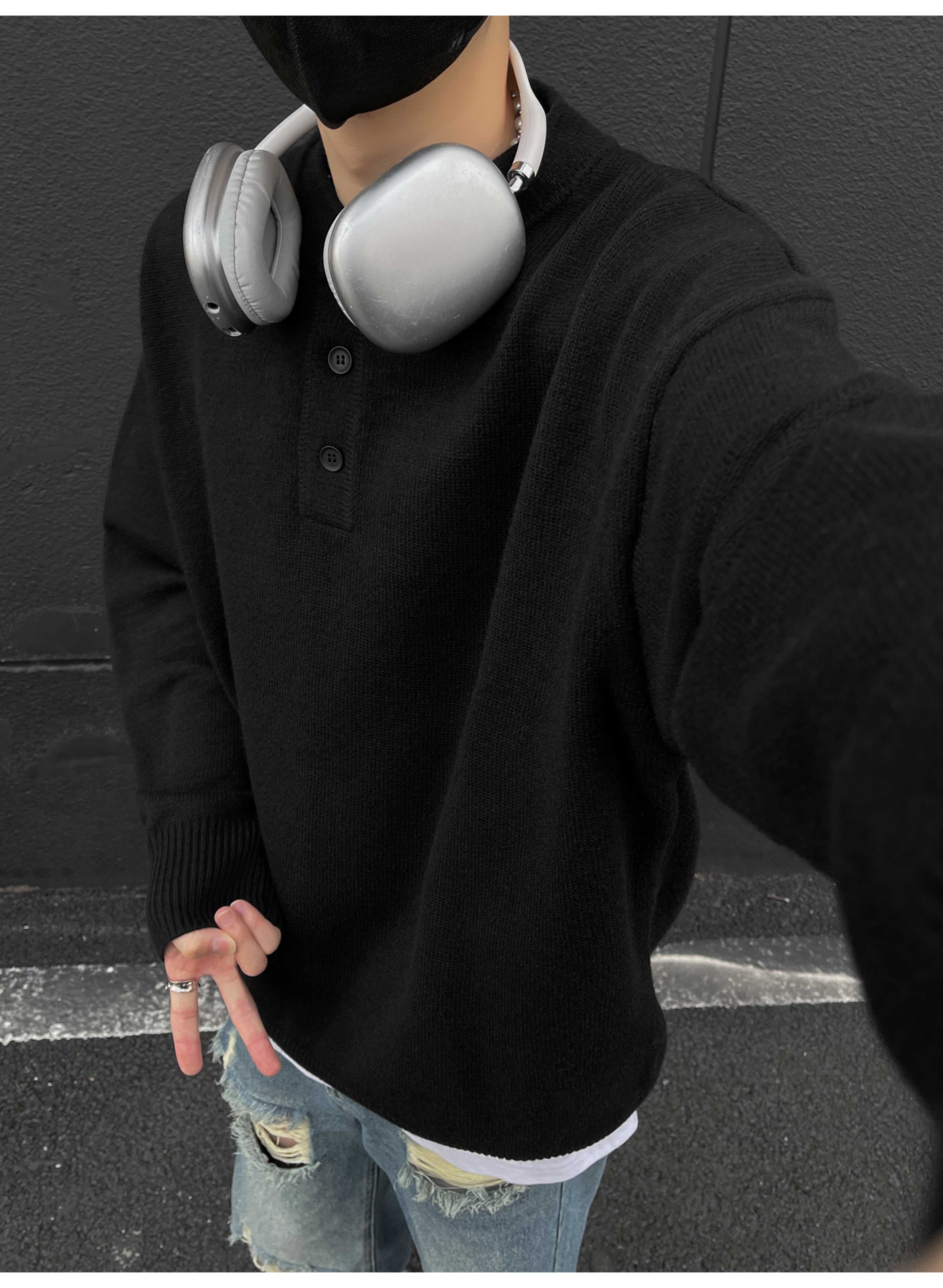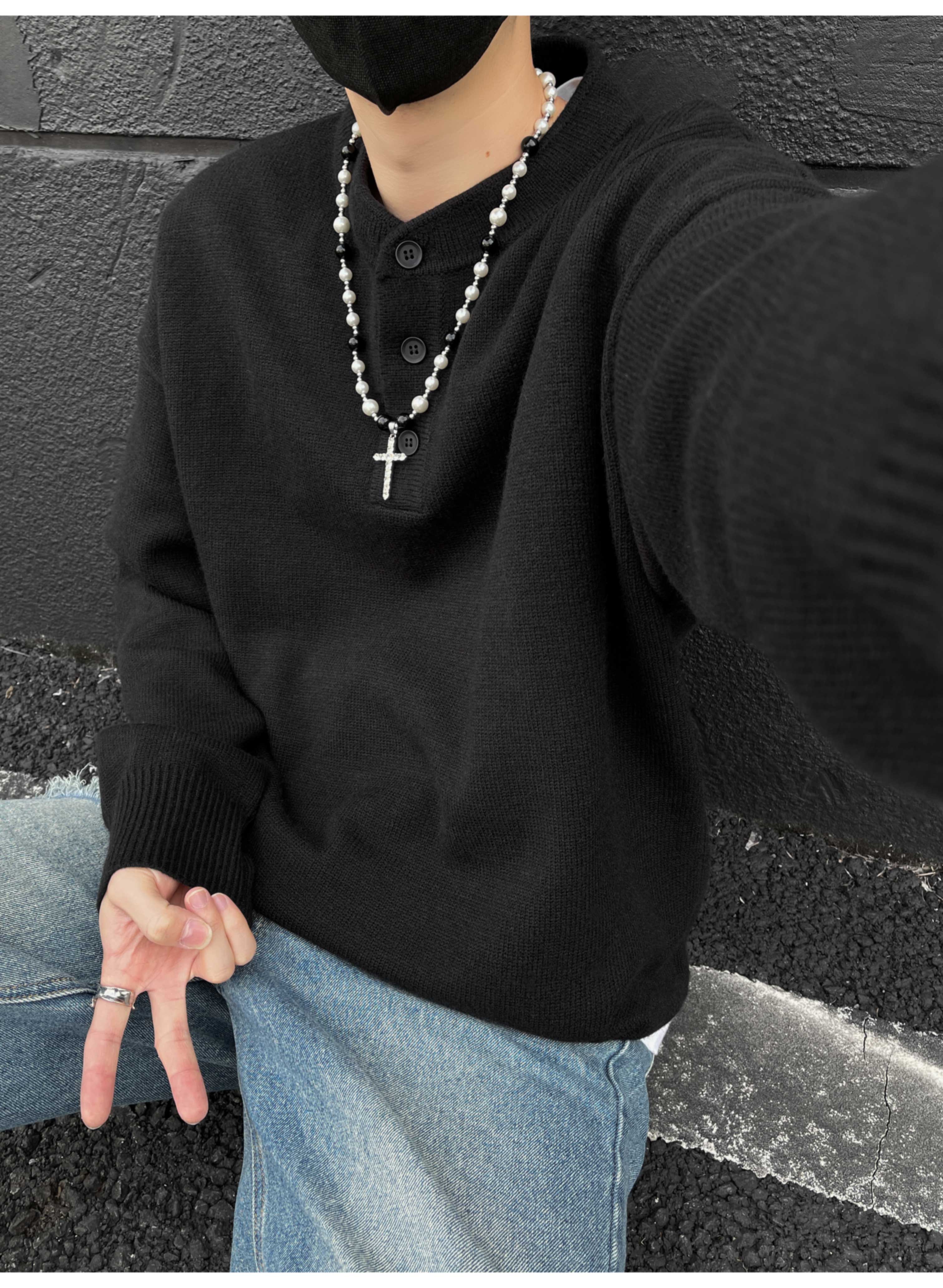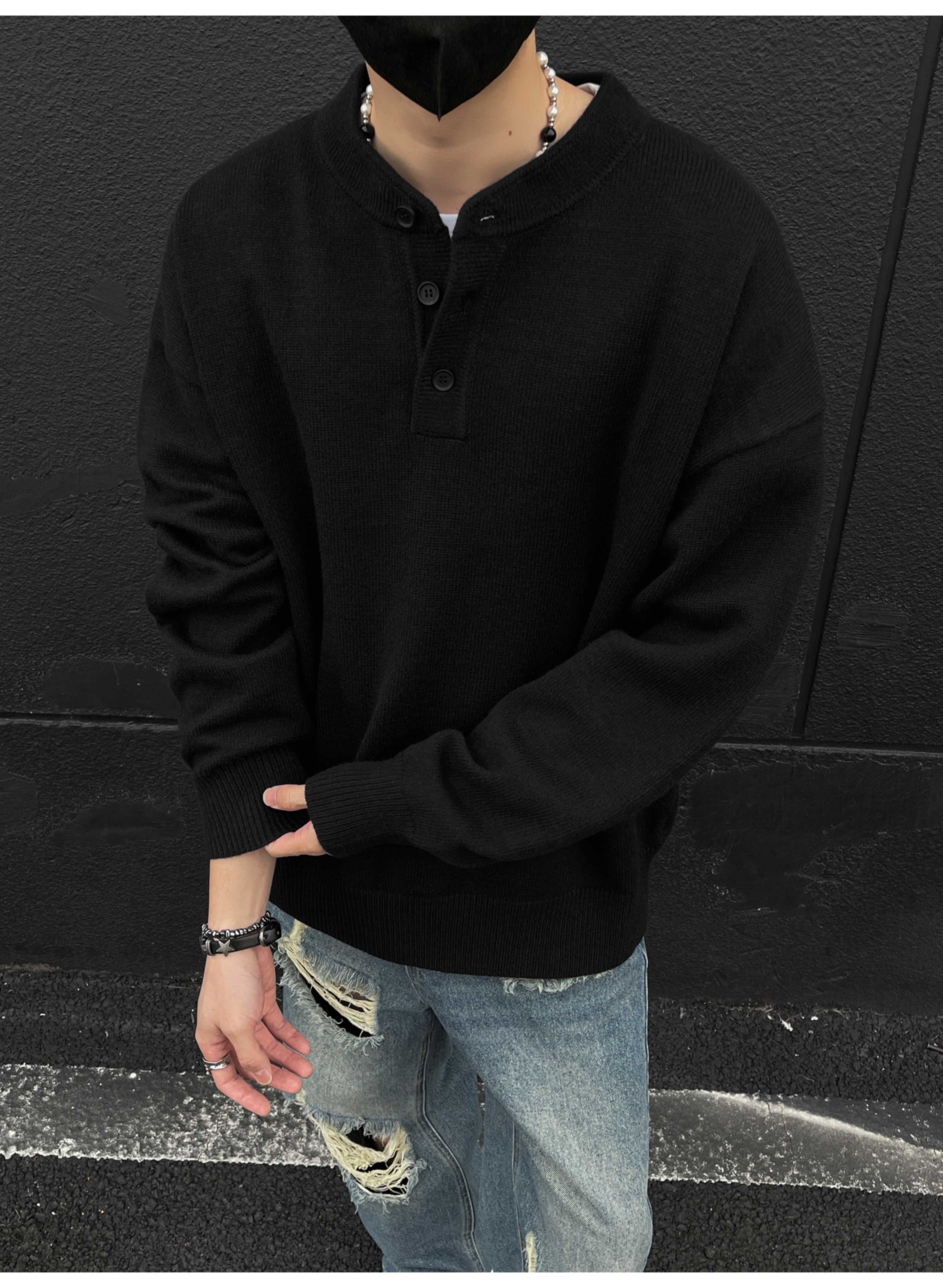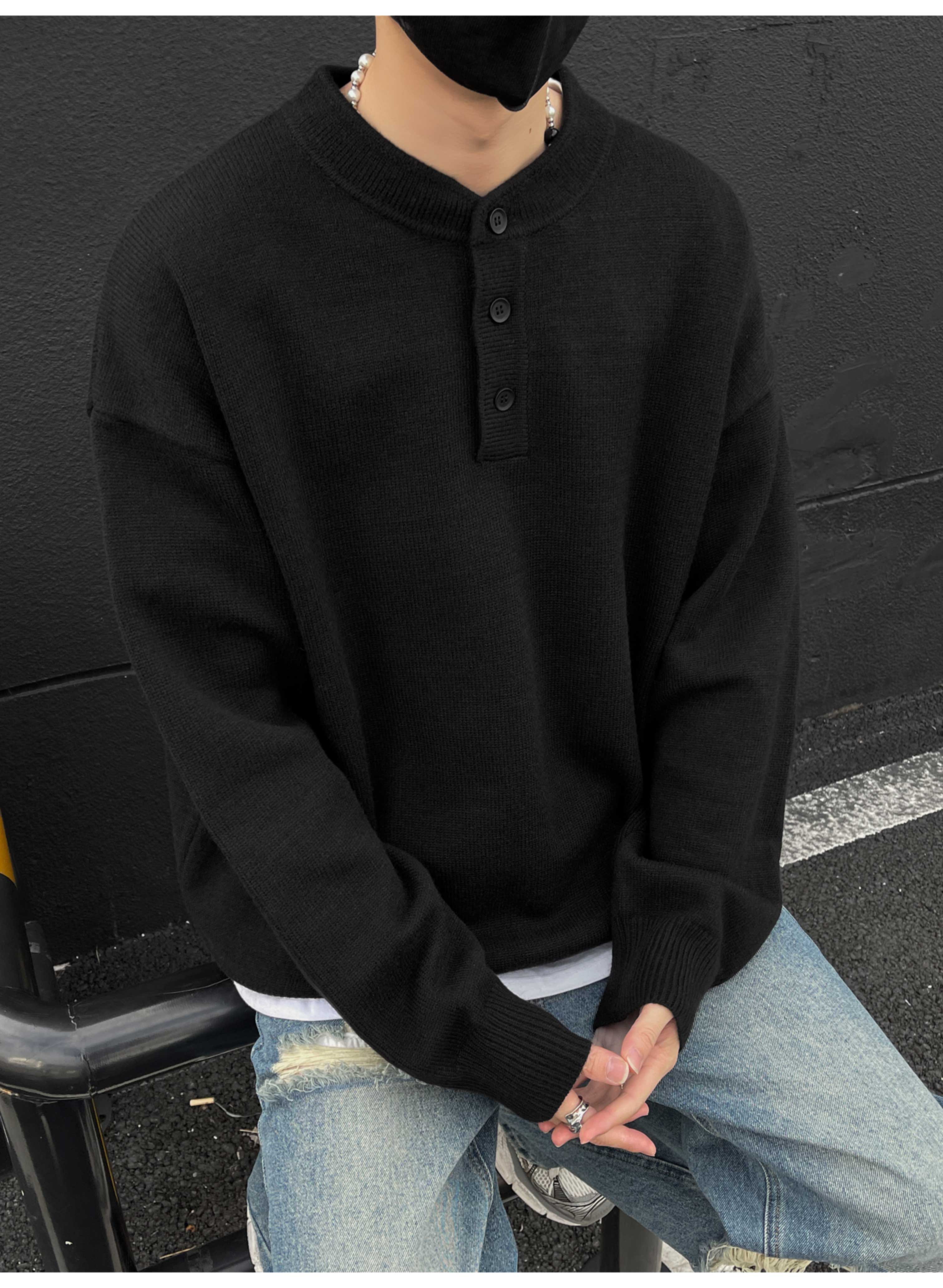 美式復古亨利領毛衣男冬季cleanfit打底針織衫慵懶風情侶內搭線衣