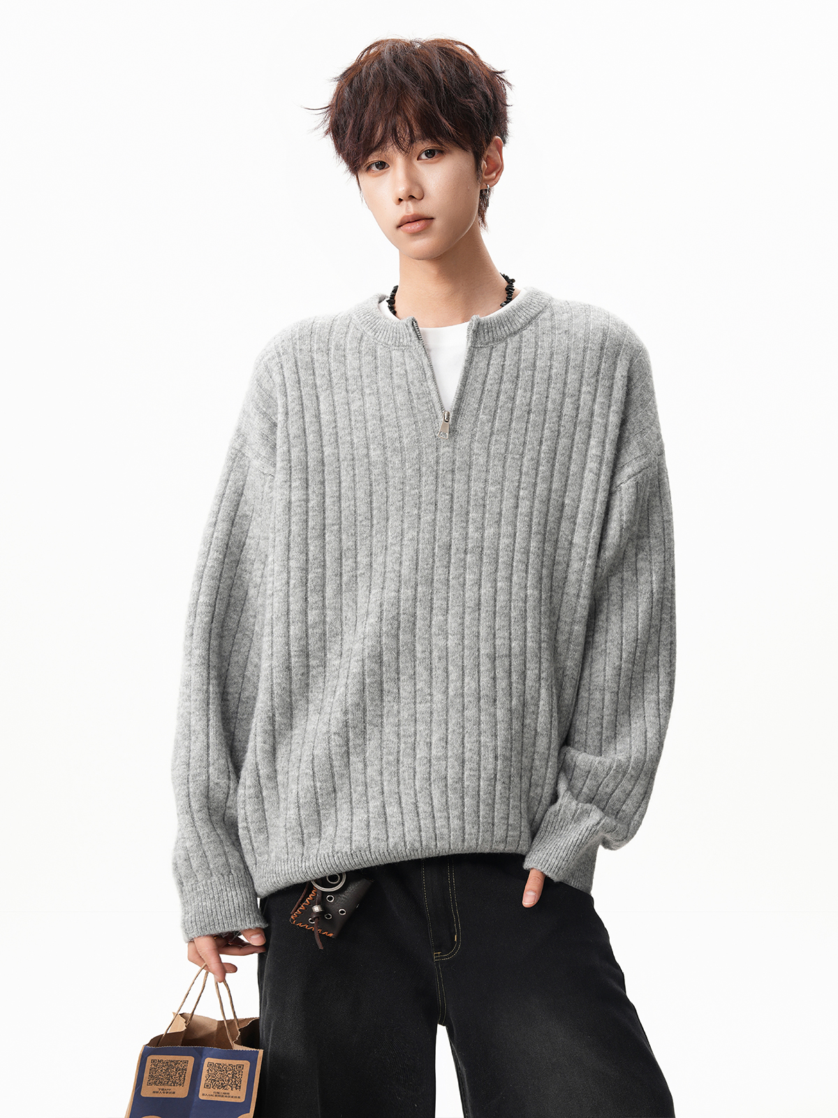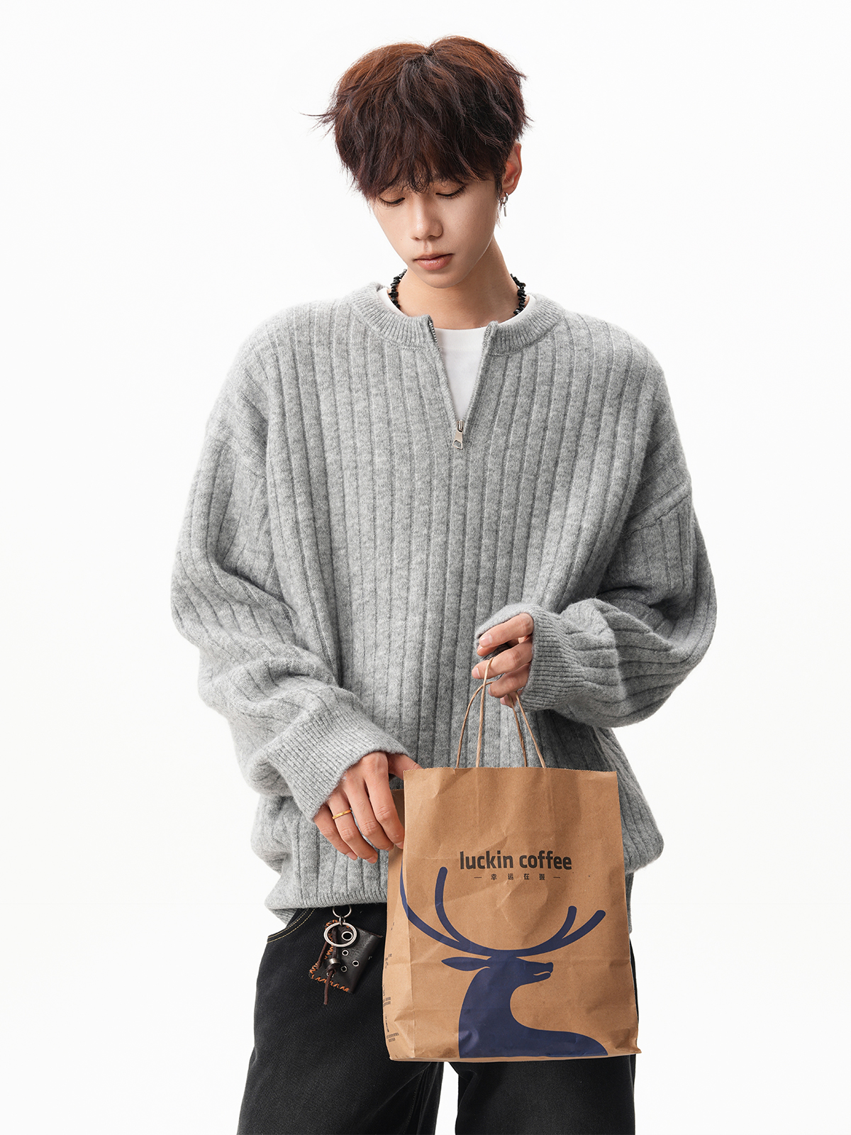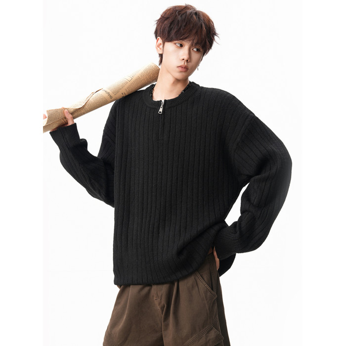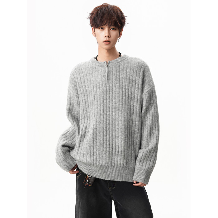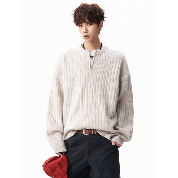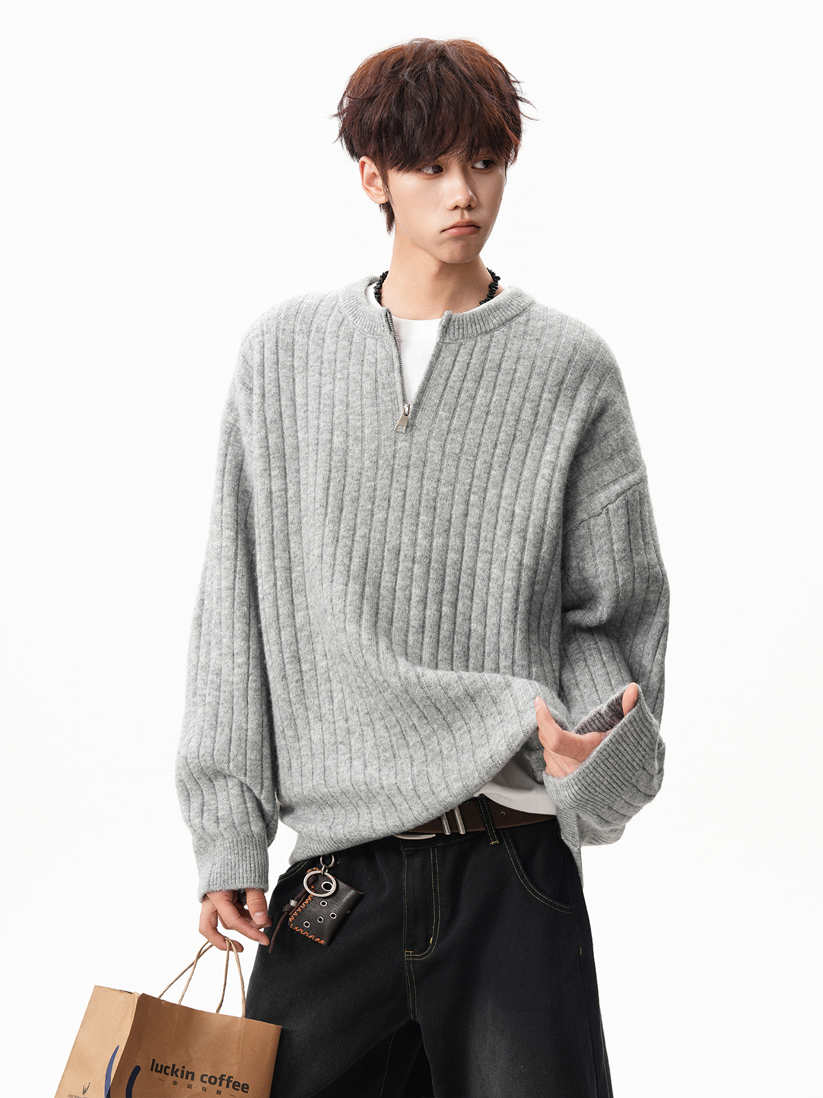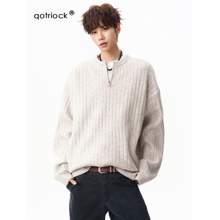 美式半拉鍊套頭毛衣男秋冬潮cleanfit寬松松弛保暖針織衫外套上衣