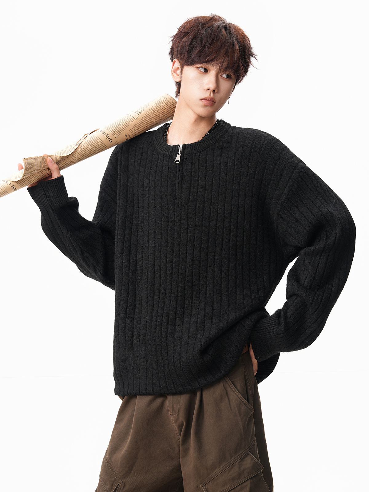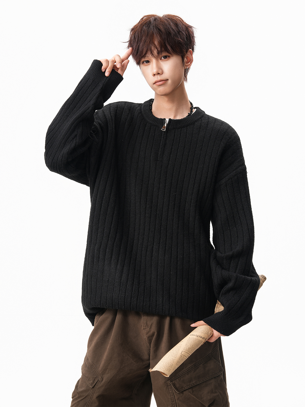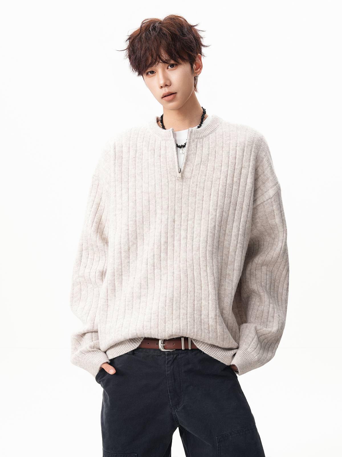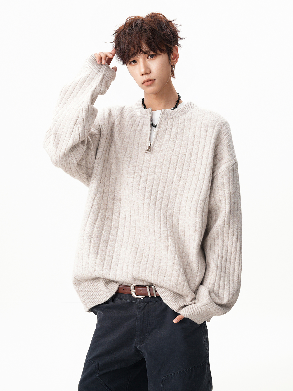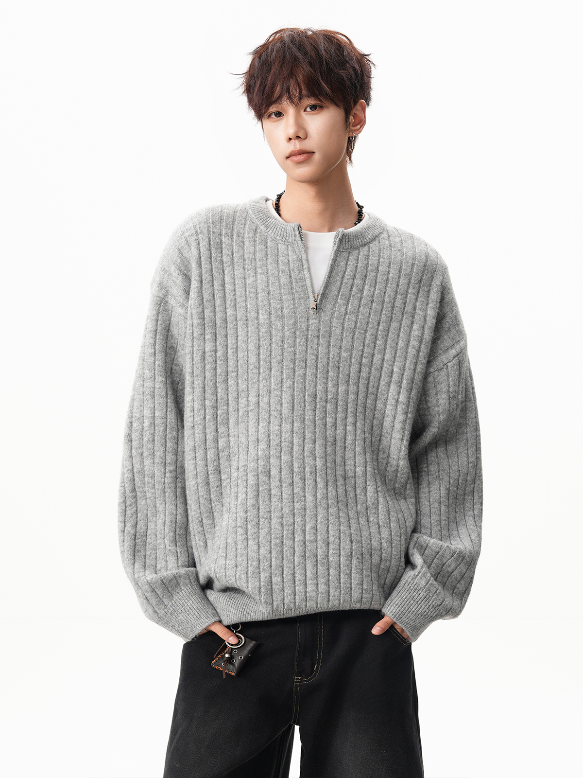美式半拉鍊套頭毛衣男秋冬潮cleanfit寬松松弛保暖針織衫外套上衣
