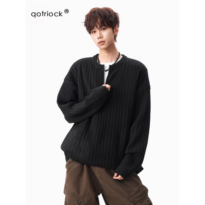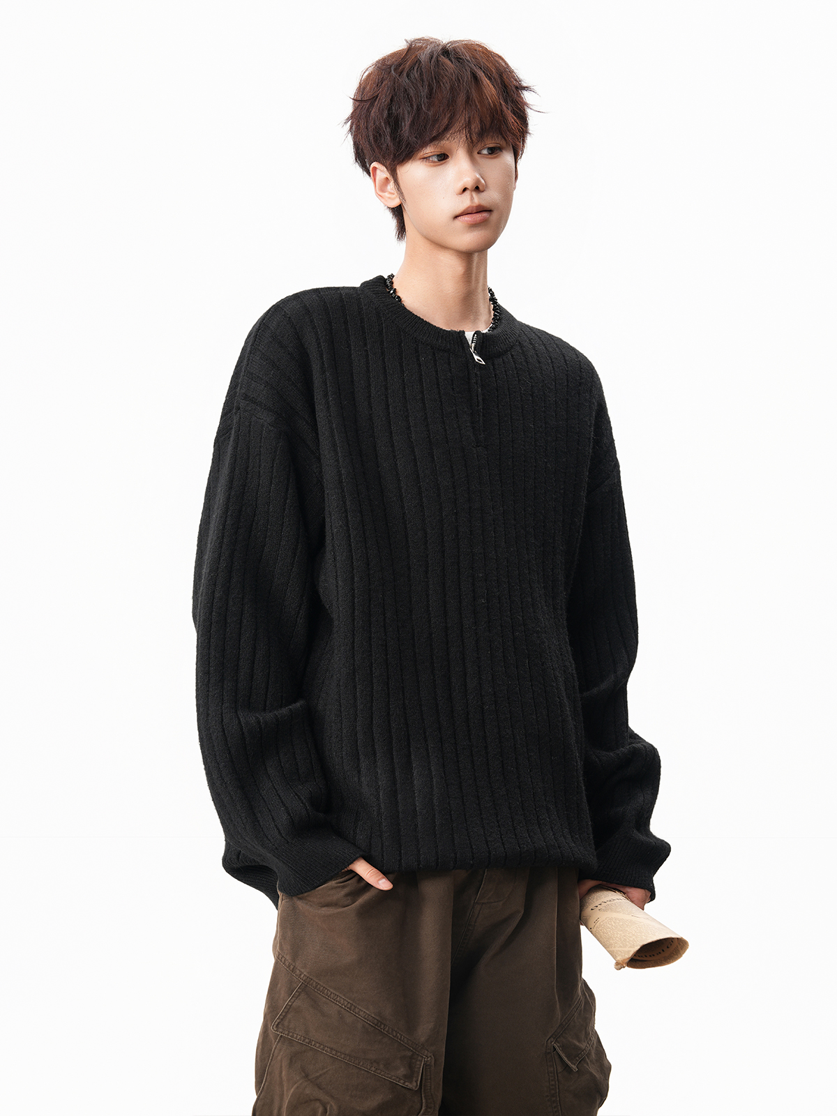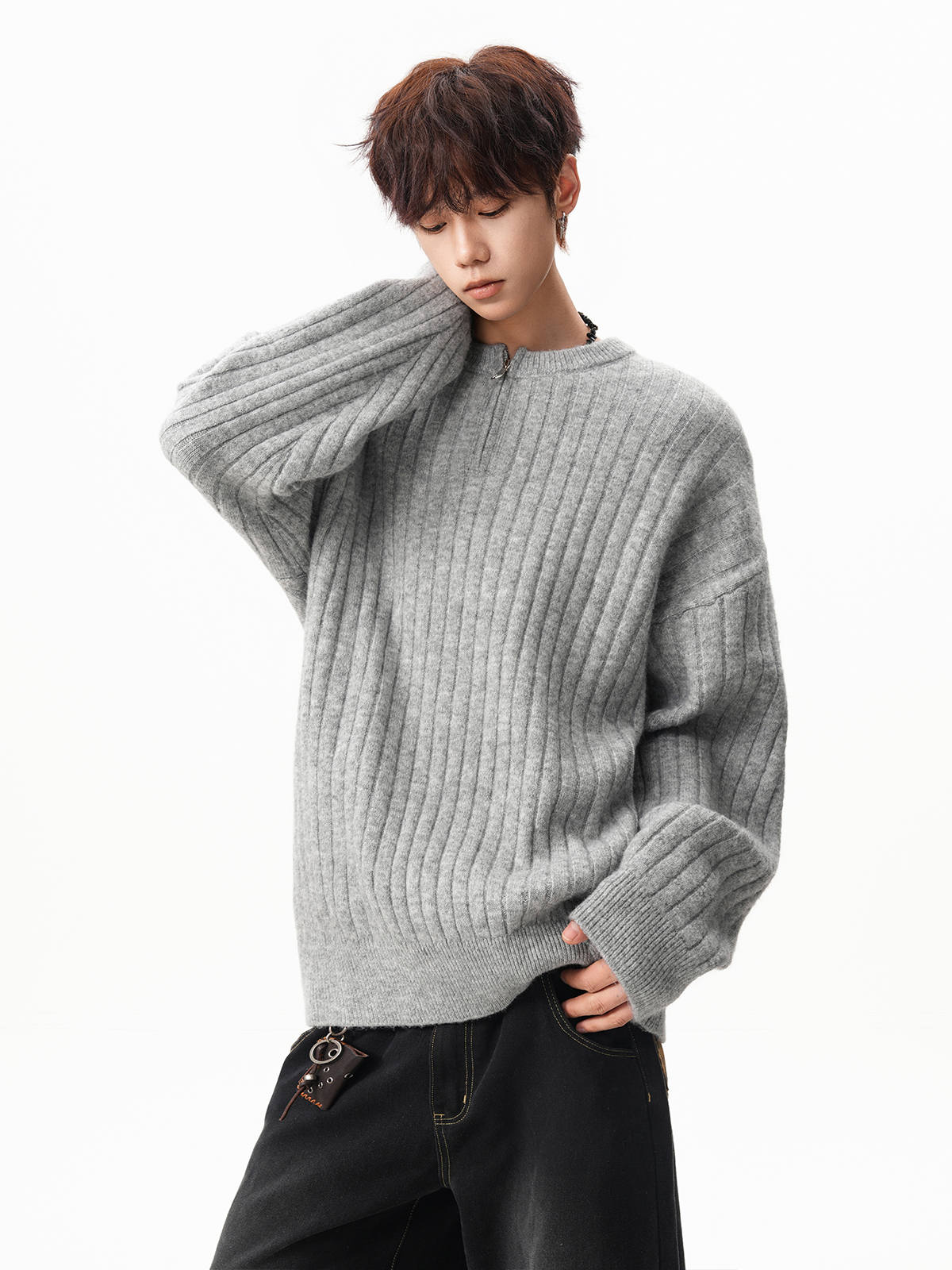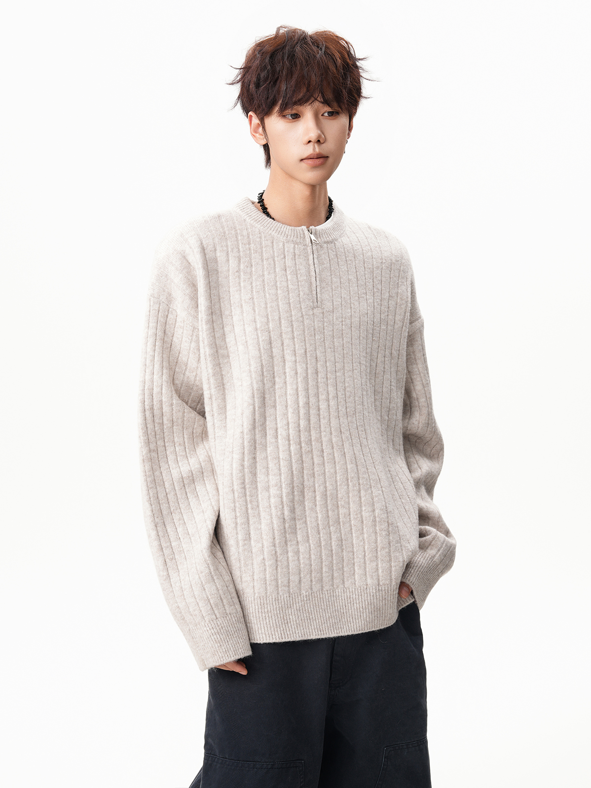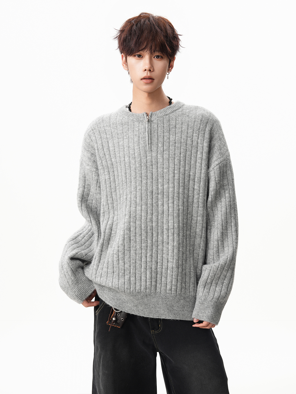 美式半拉鍊套頭毛衣男秋冬潮cleanfit寬松松弛保暖針織衫外套上衣