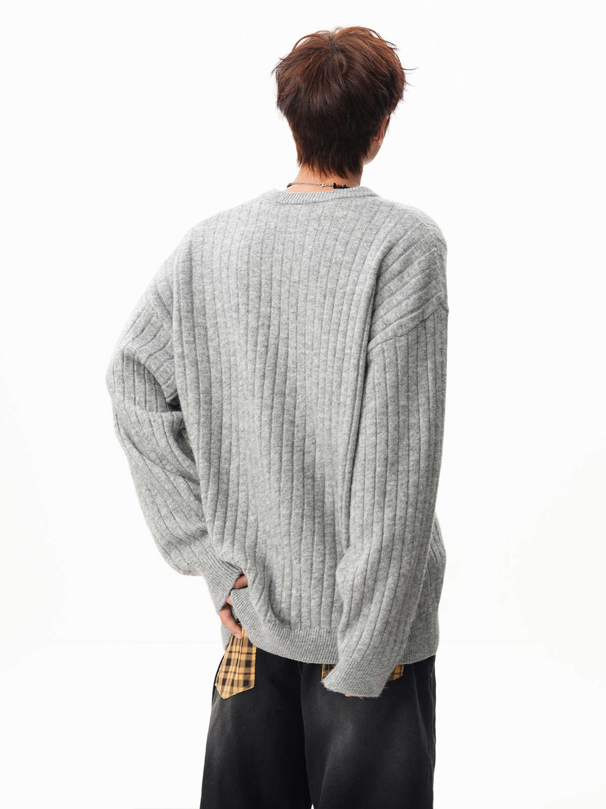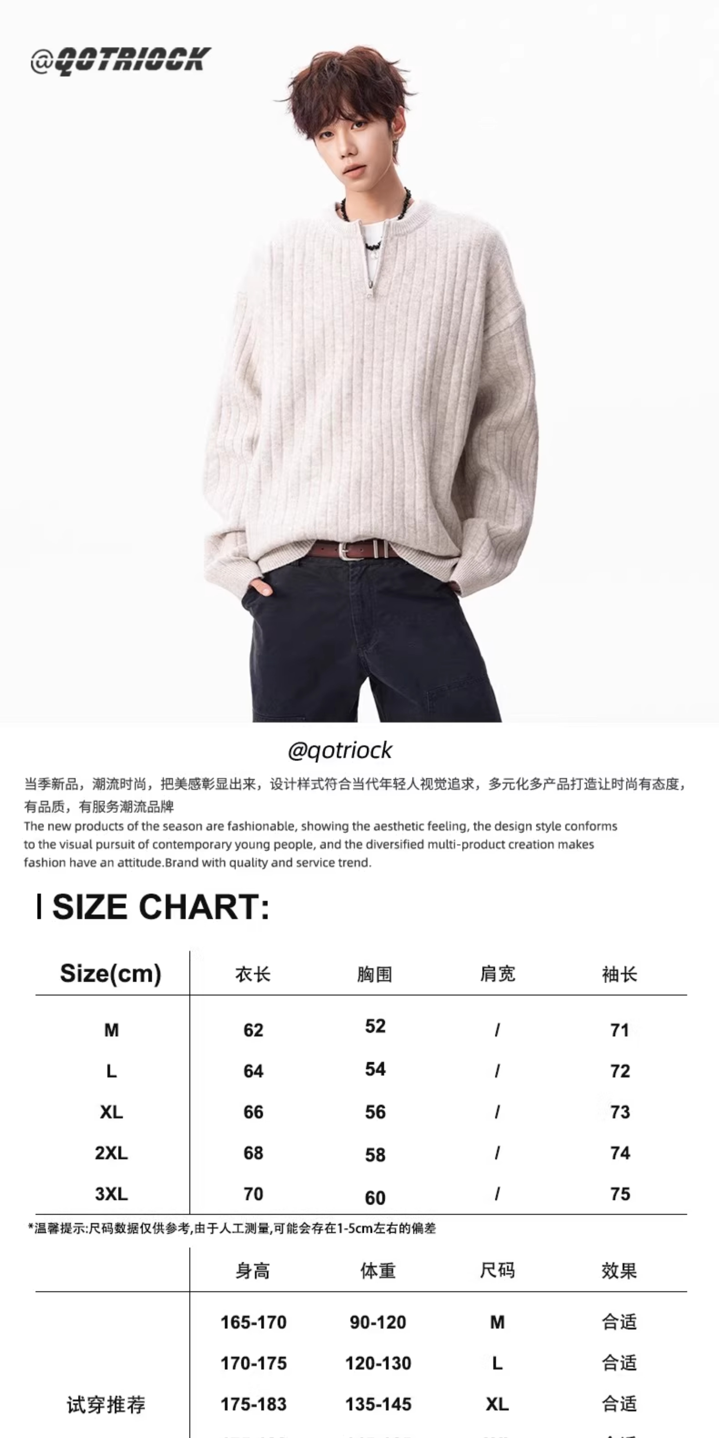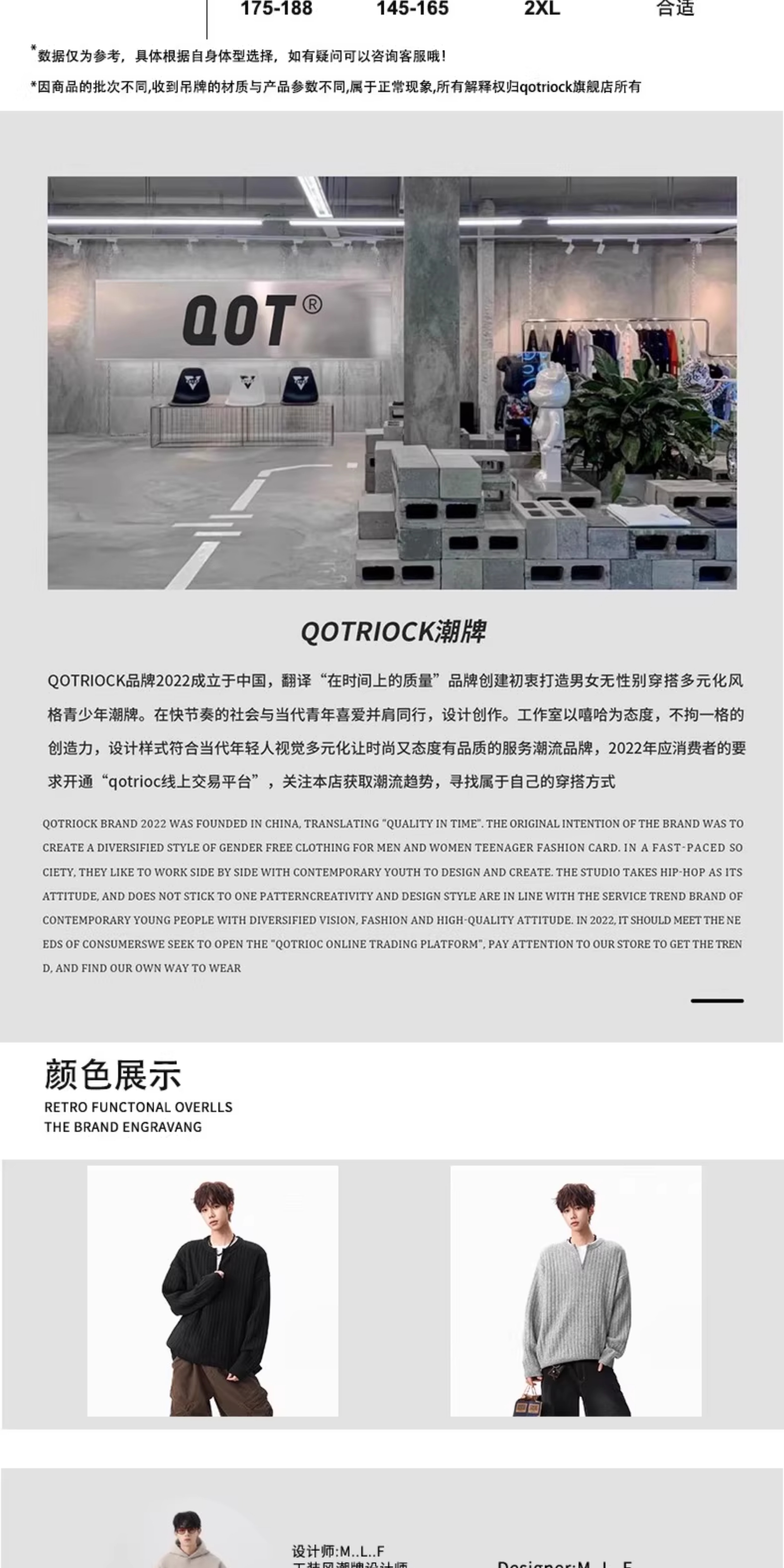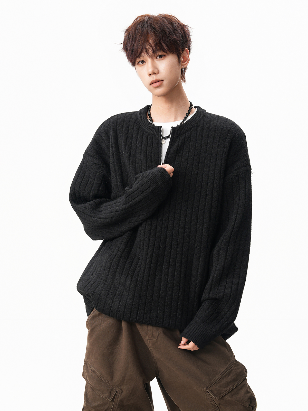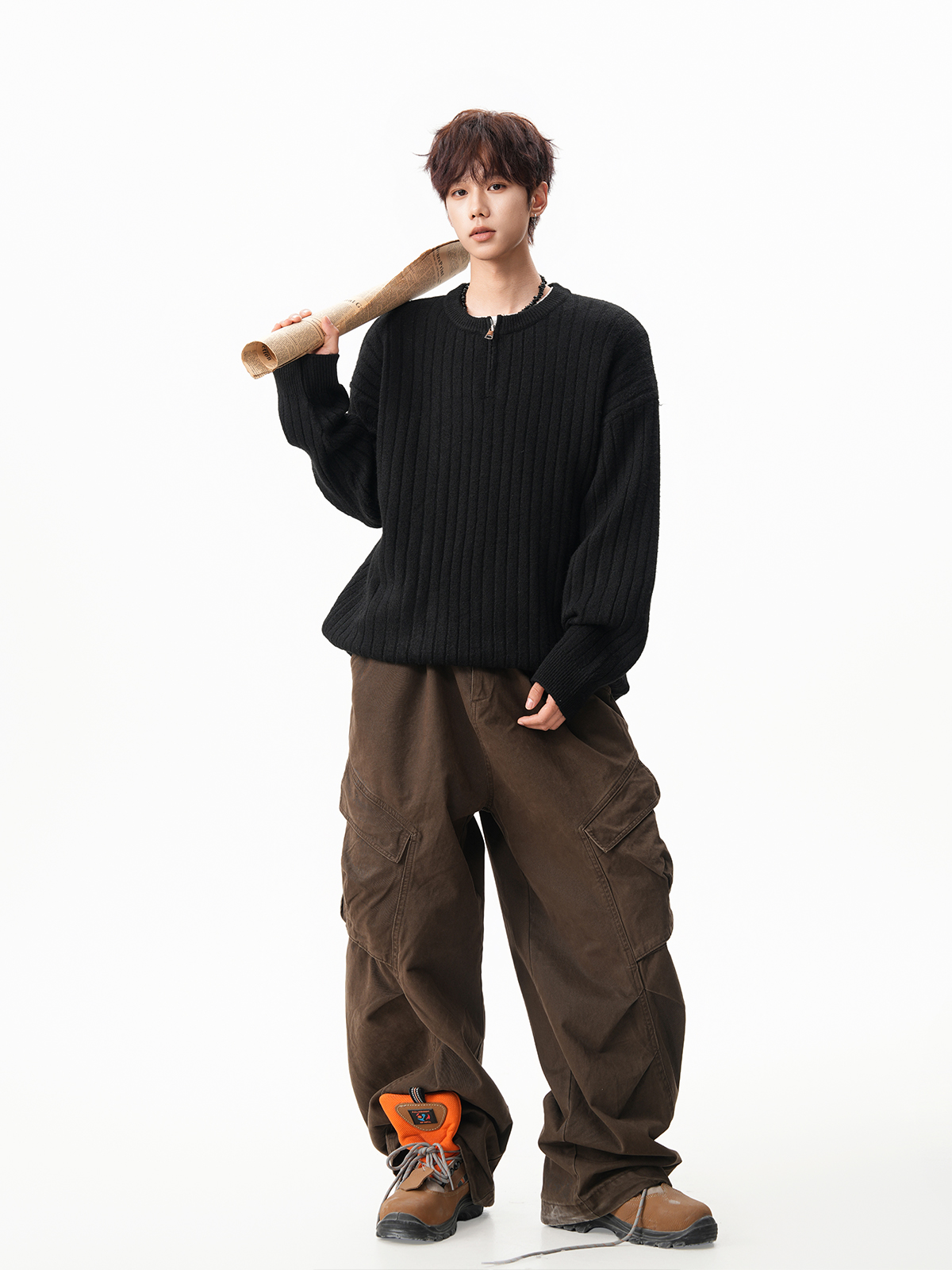 美式半拉鍊套頭毛衣男秋冬潮cleanfit寬松松弛保暖針織衫外套上衣