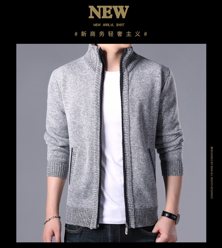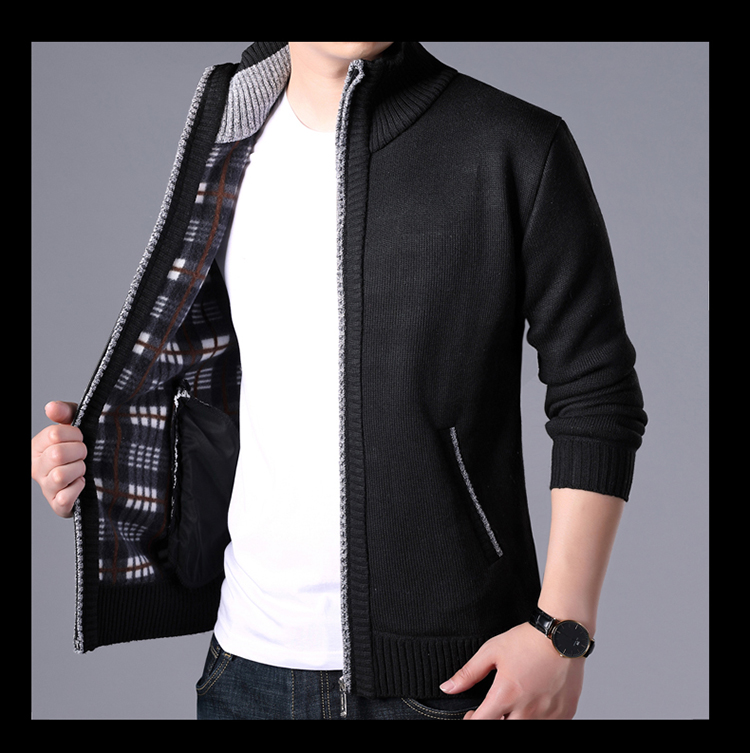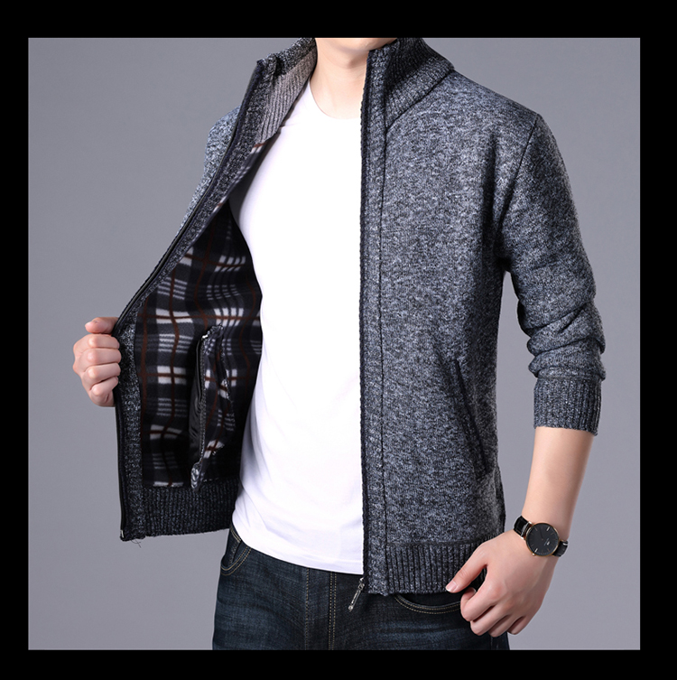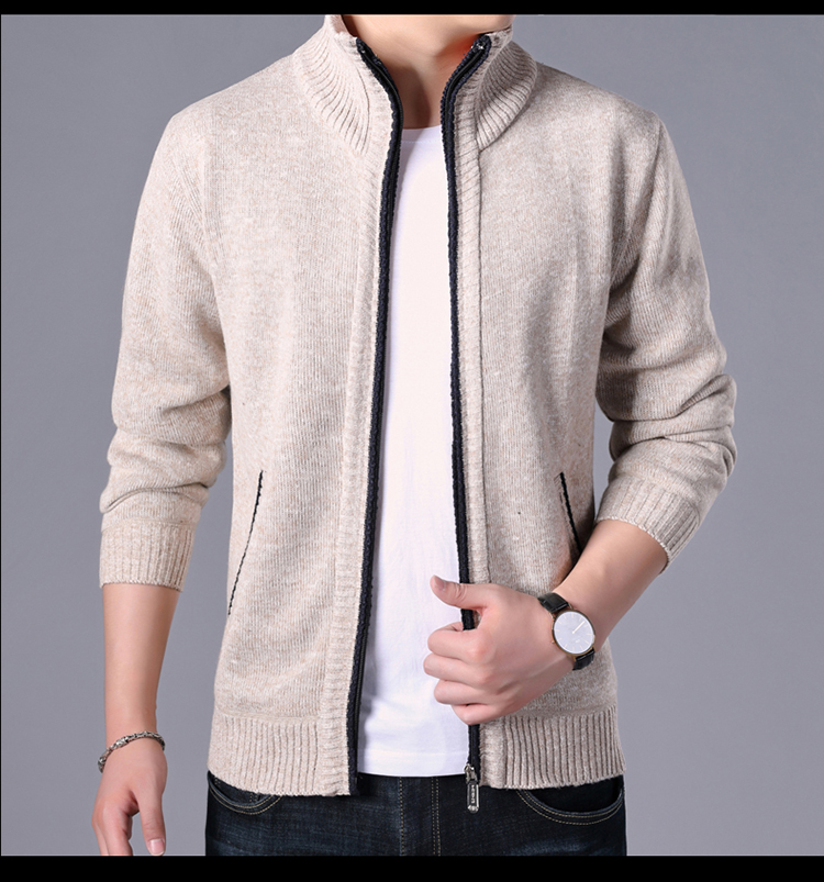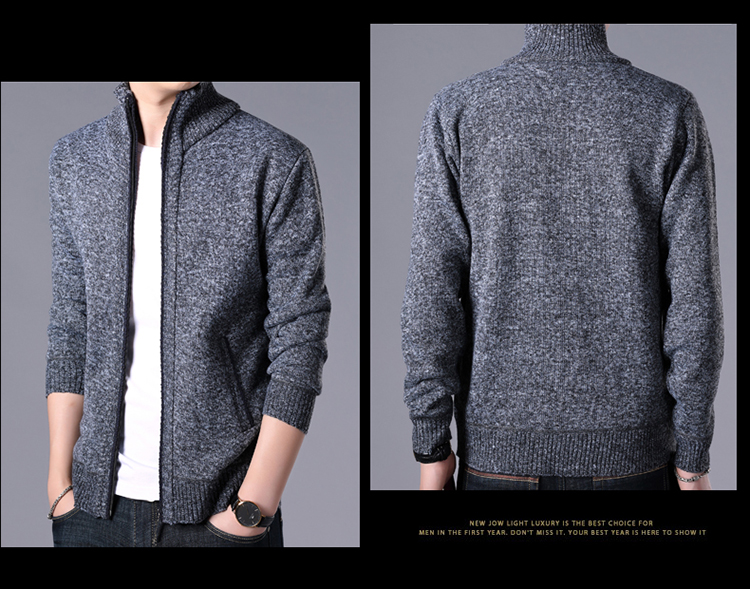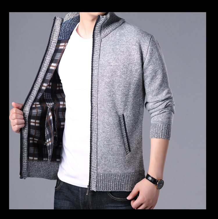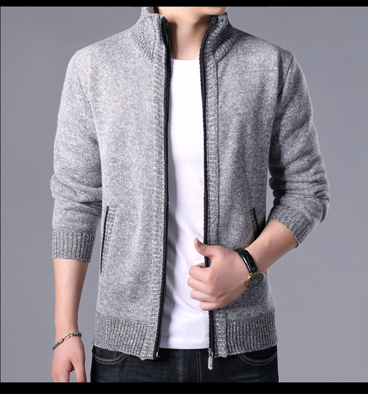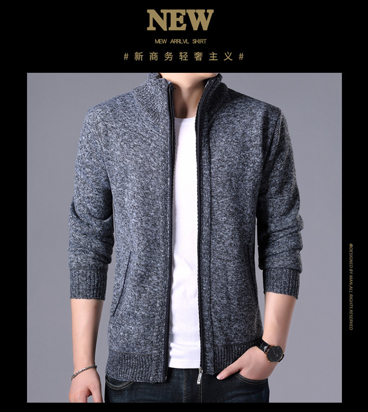 秋冬新款男士開衫拉鍊毛衣加絨加厚夾克純色百搭男針織衫上衣外套