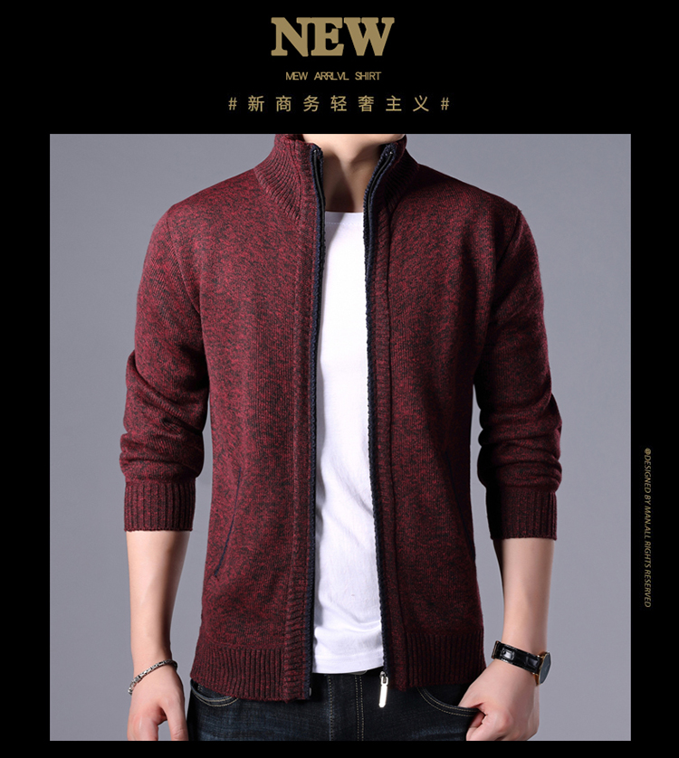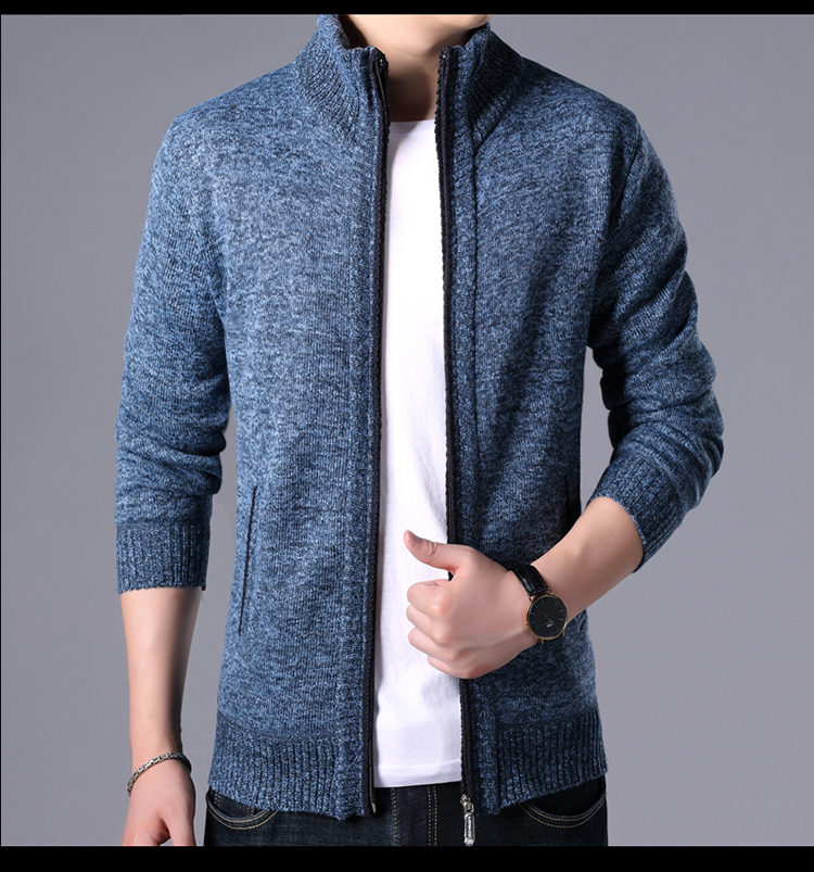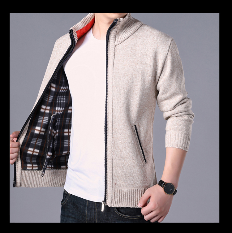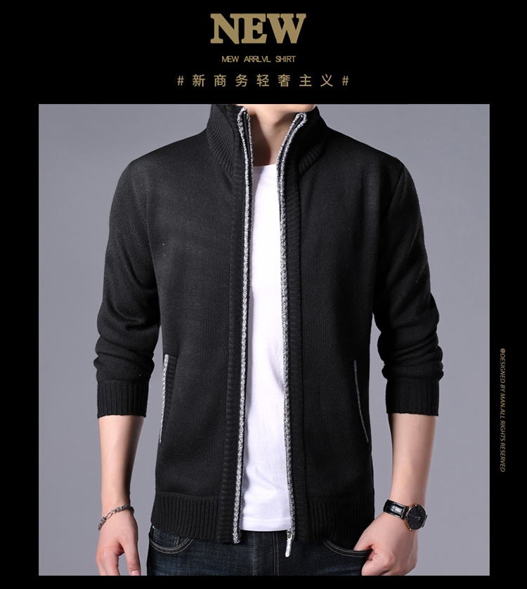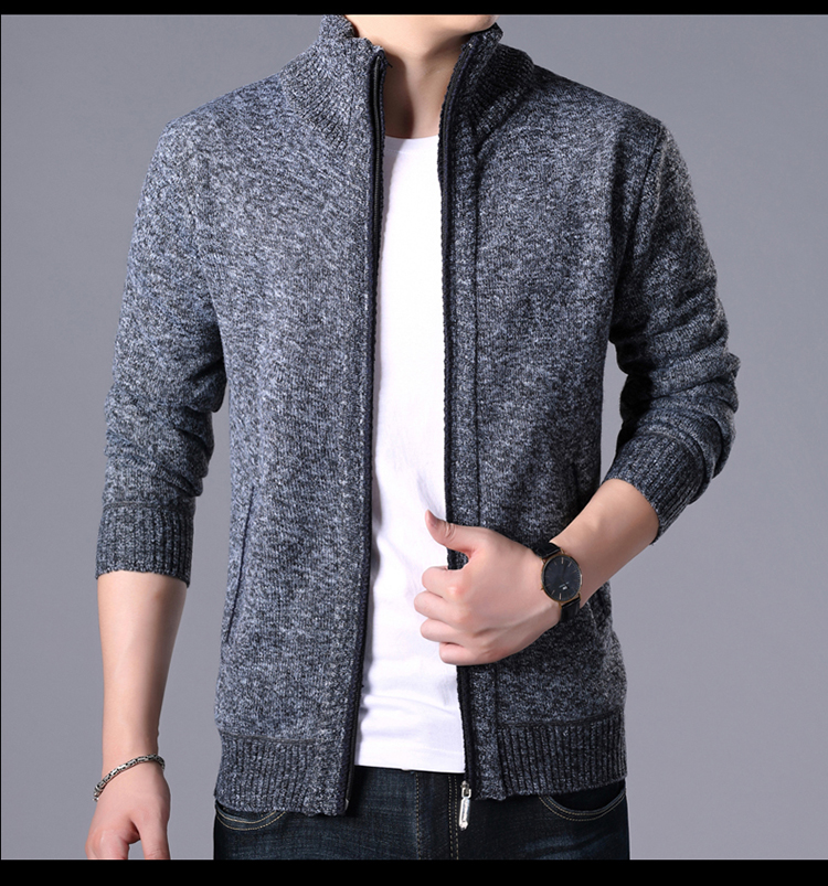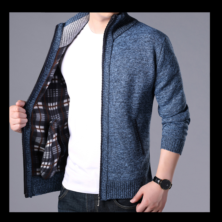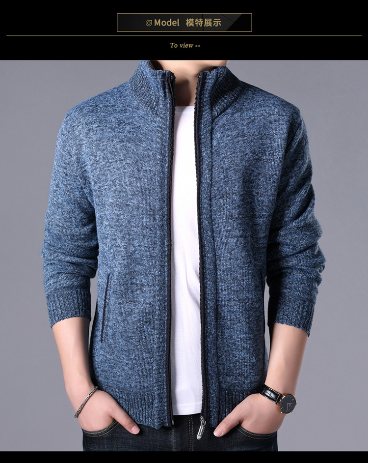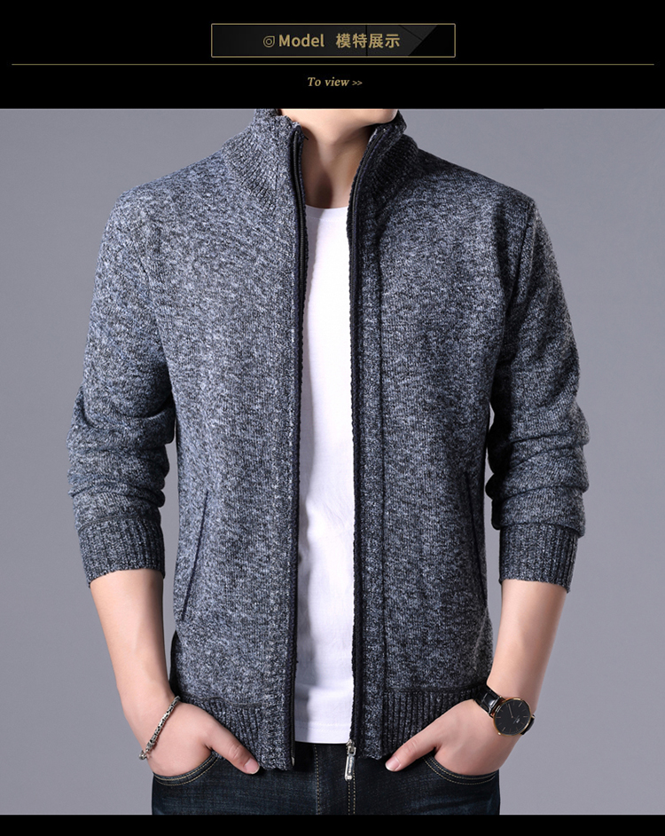 秋冬新款男士開衫拉鍊毛衣加絨加厚夾克純色百搭男針織衫上衣外套